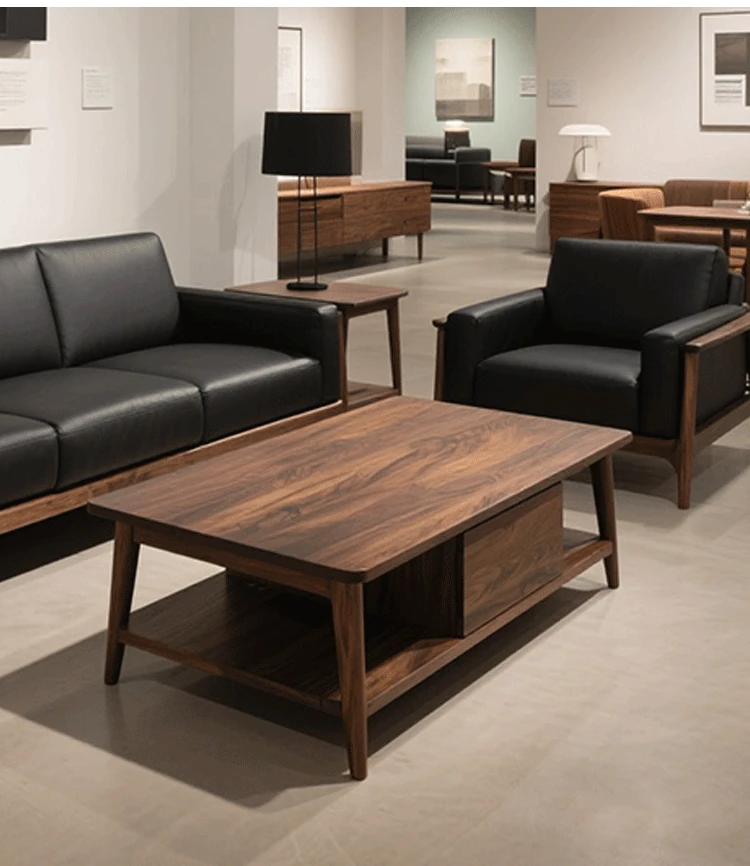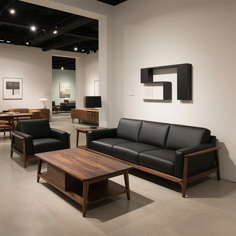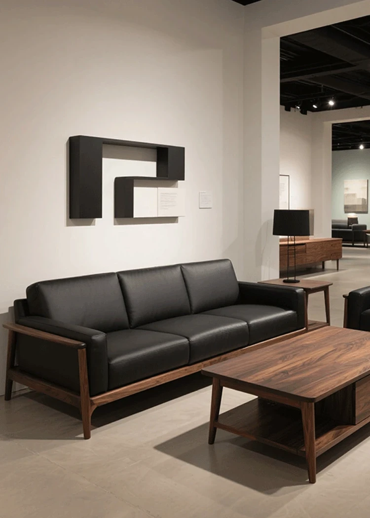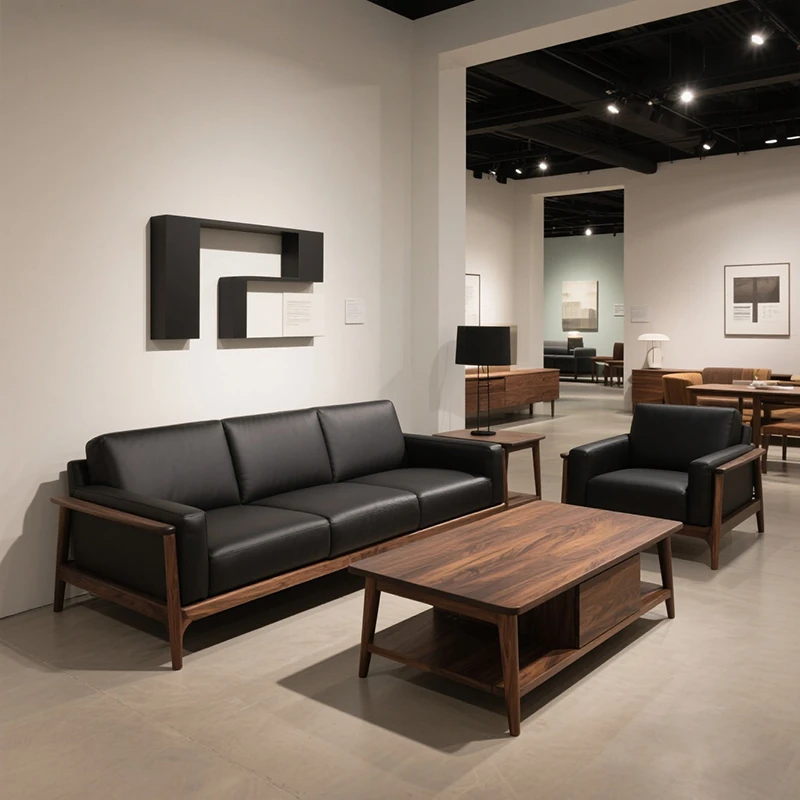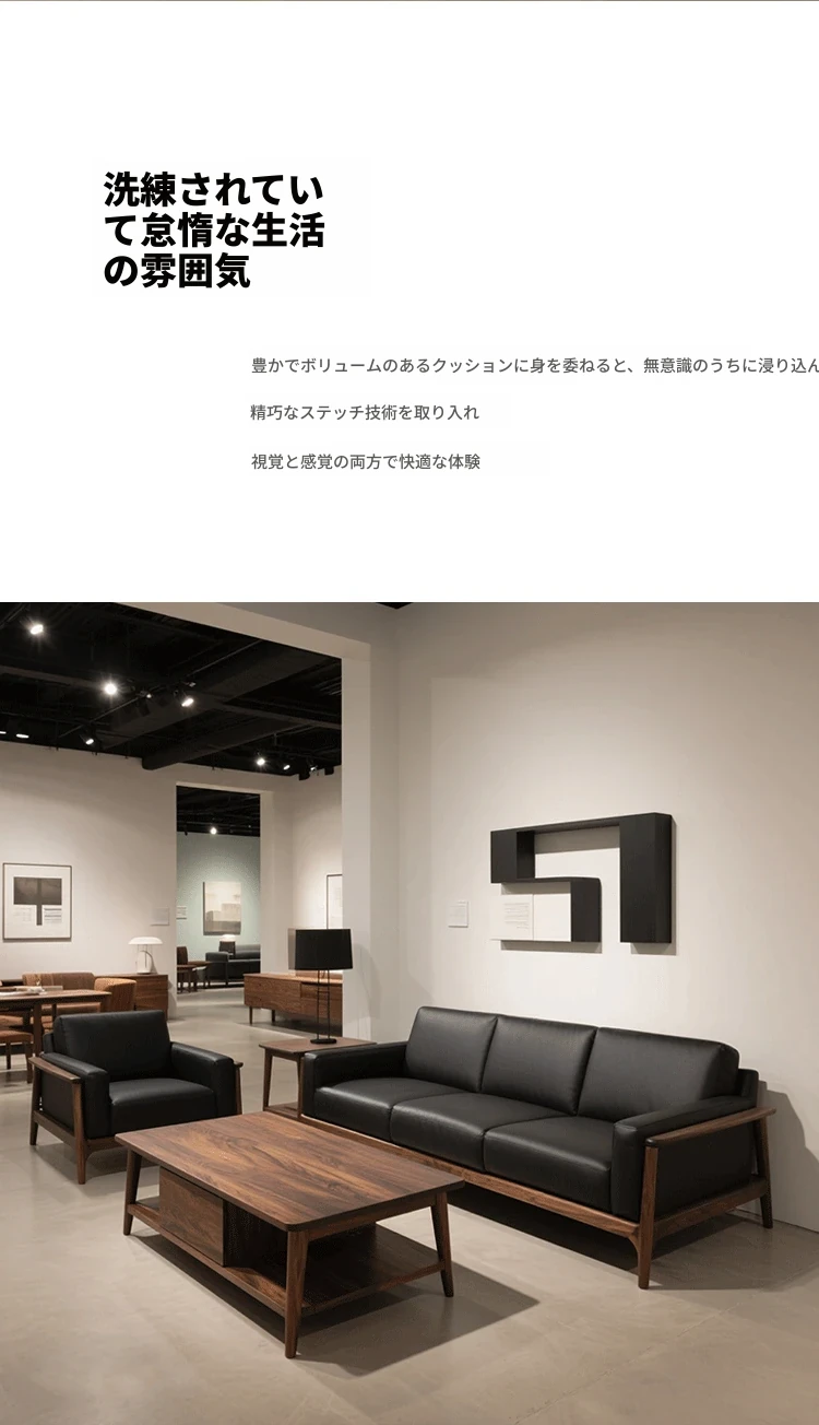 2025年新作!高級感あふれるミッドセンチュリースタイルのブラックウォールナット無垢材ソファ - 1人用&3人用、現代的なリビングにぴったりの直排デザイン!