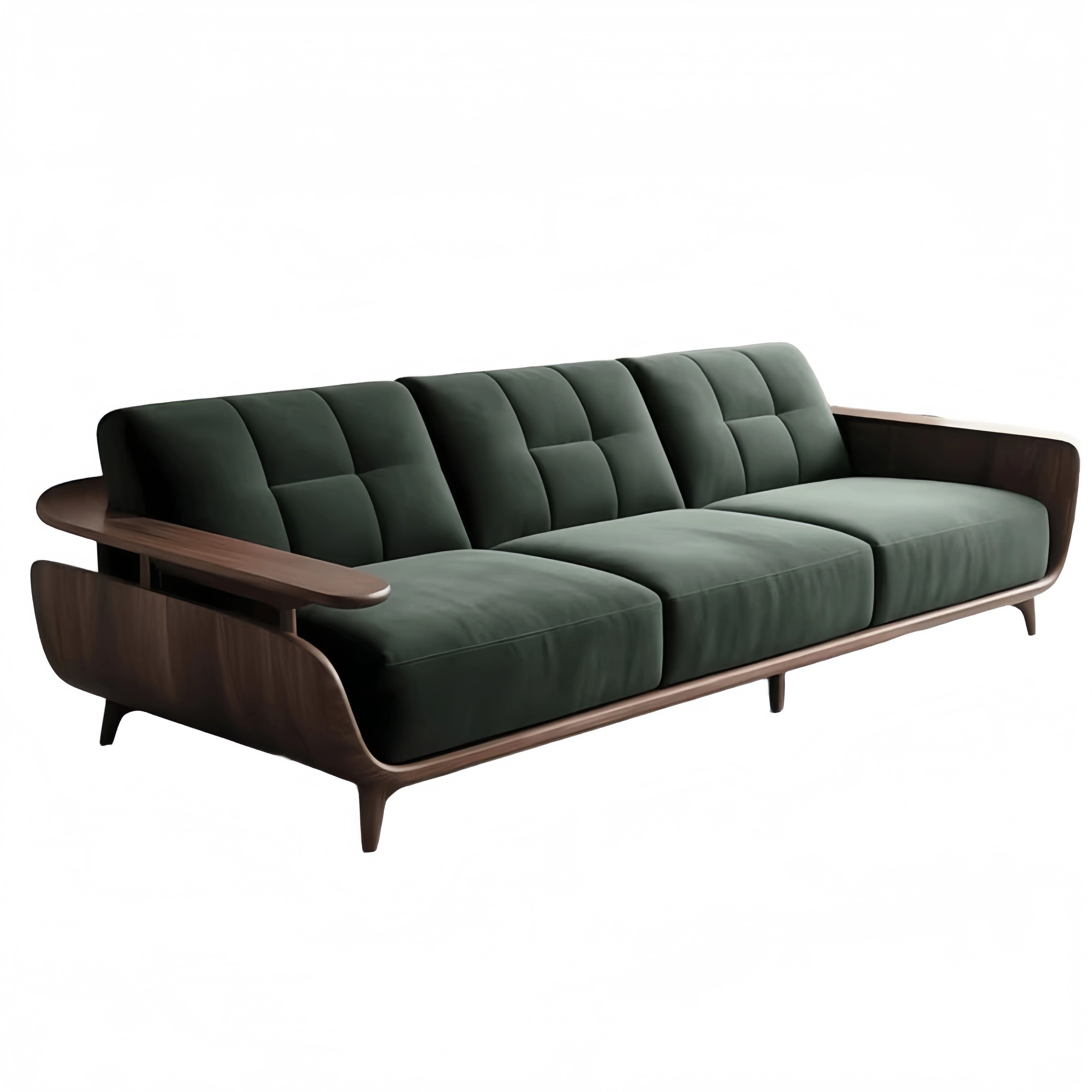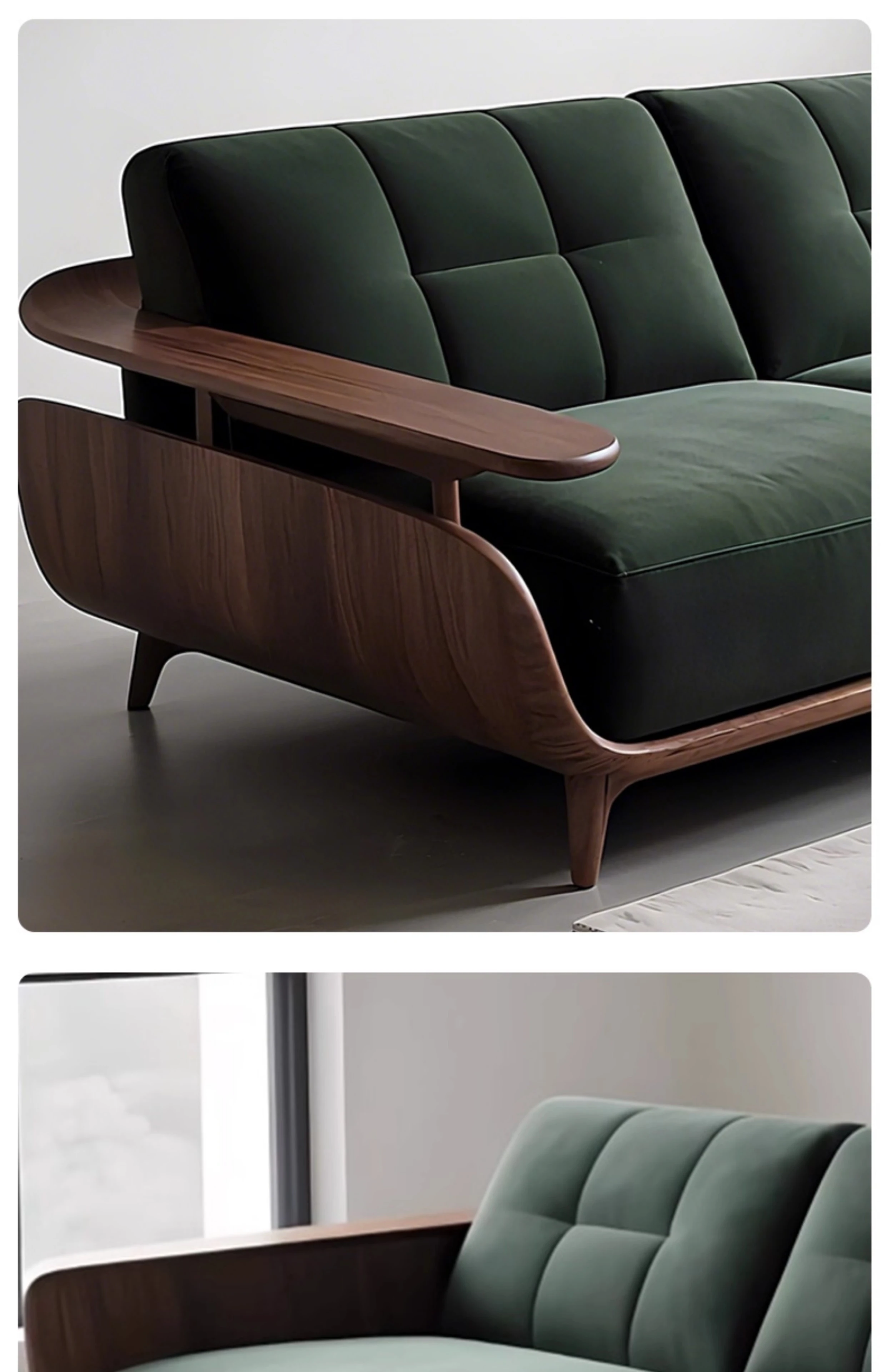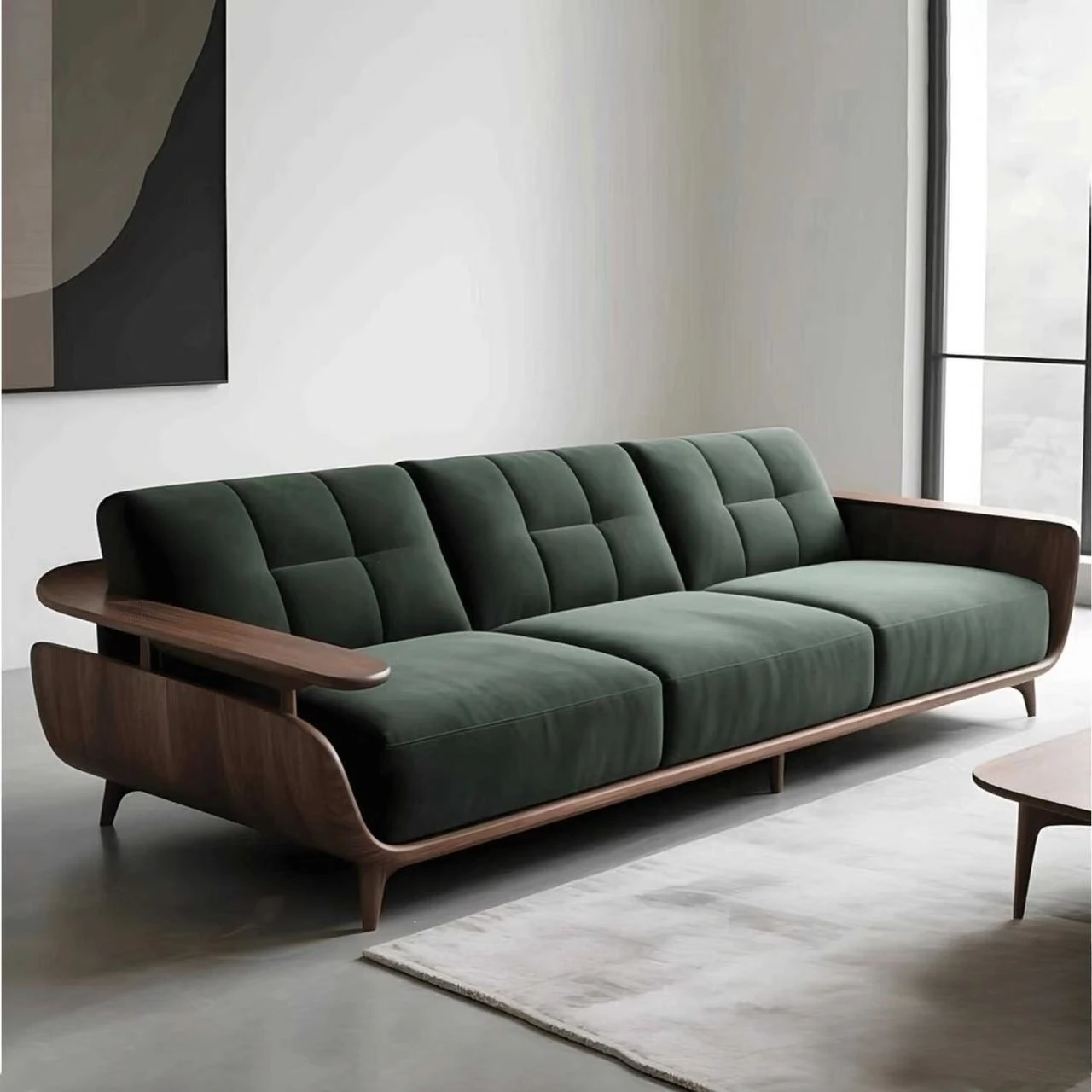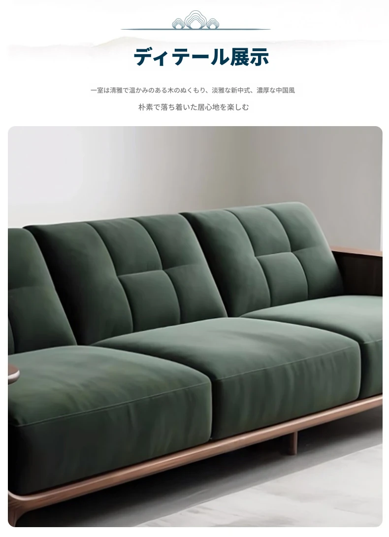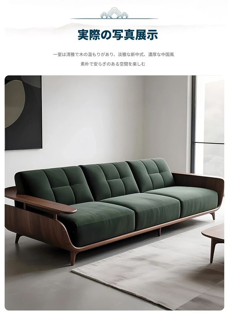 2025年新作!軽奢感あふれる新中式ブラックウォールナットソファ。シンプルでモダンなデザイン、実木のストレートラインソファ。カスタマイズ可能で、お部屋にぴったりフィット!