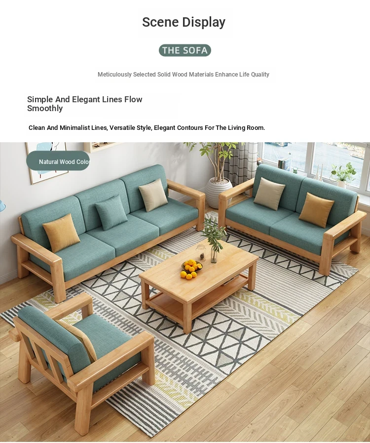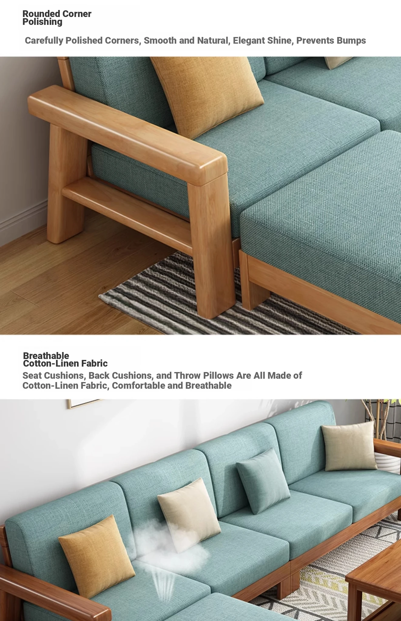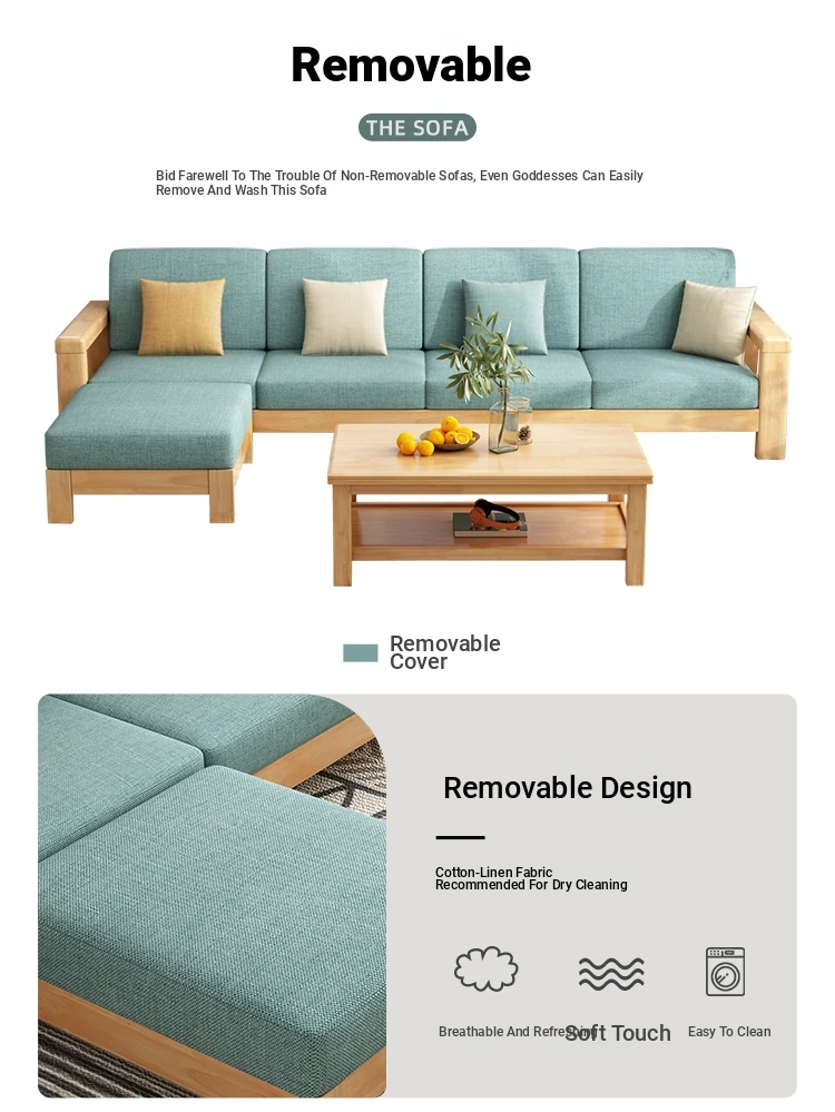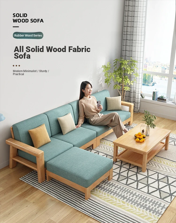 2025 New Modern Minimalist Full Solid Wood Sofa for Living Room - Affordable Corner Upholstered Combination for Small Spaces
