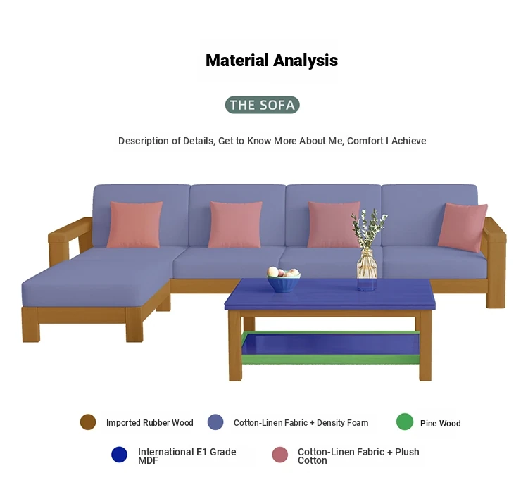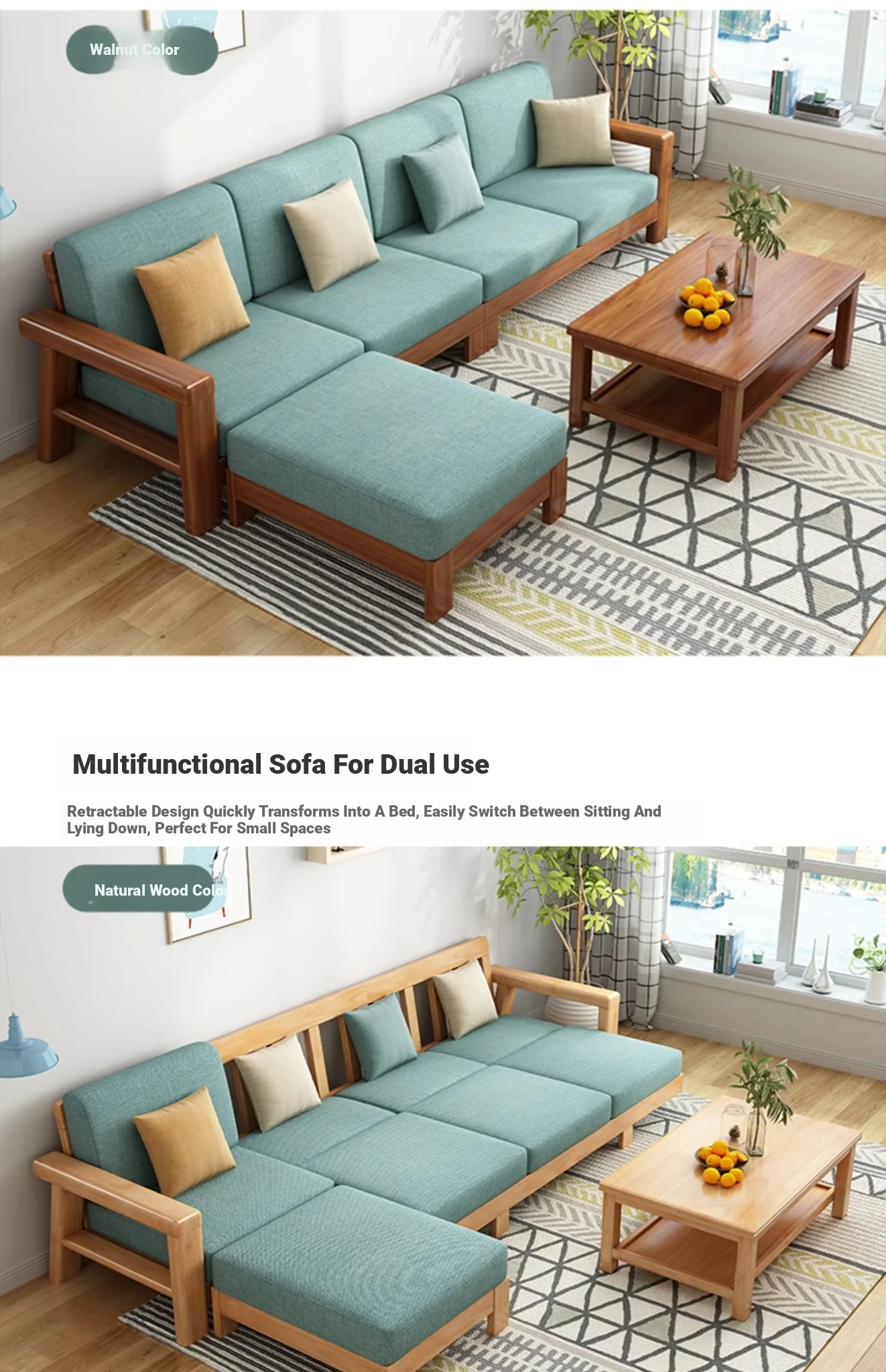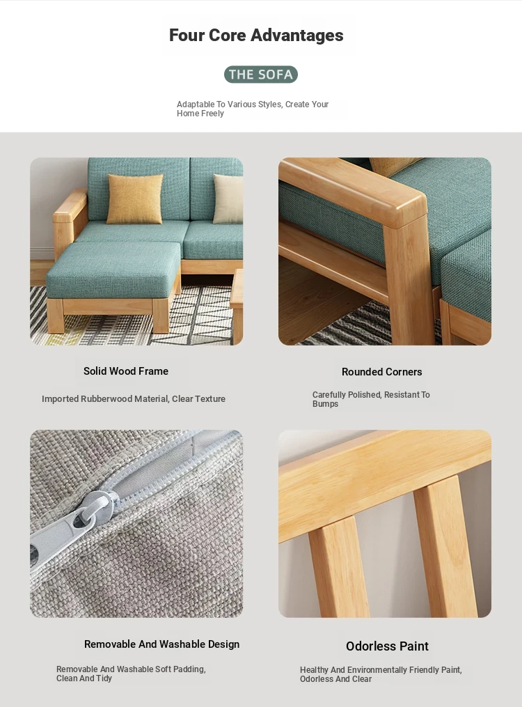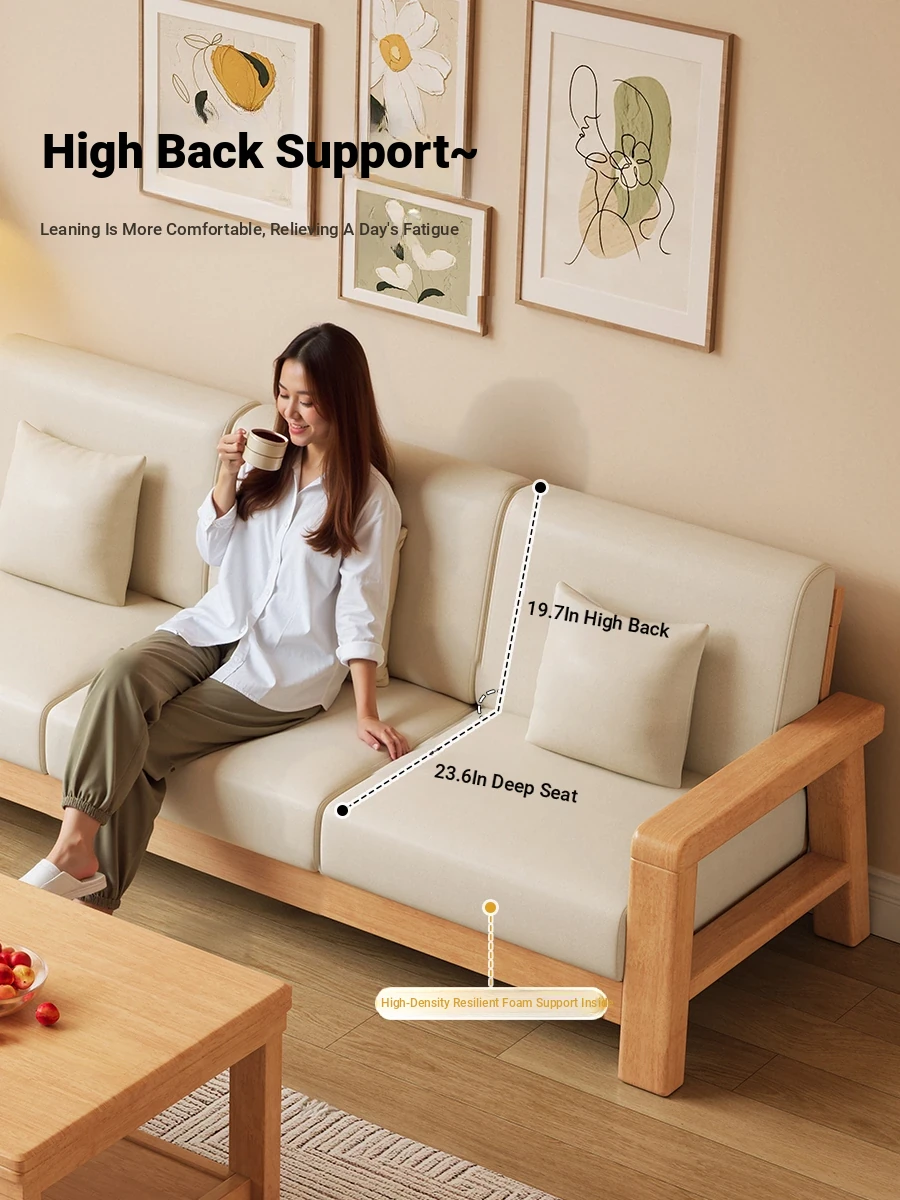 2025 New Modern Minimalist Full Solid Wood Sofa for Living Room - Affordable Corner Upholstered Combination for Small Spaces