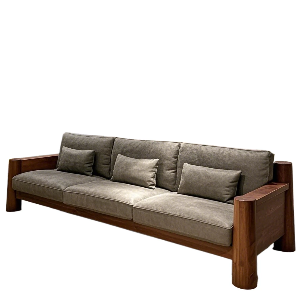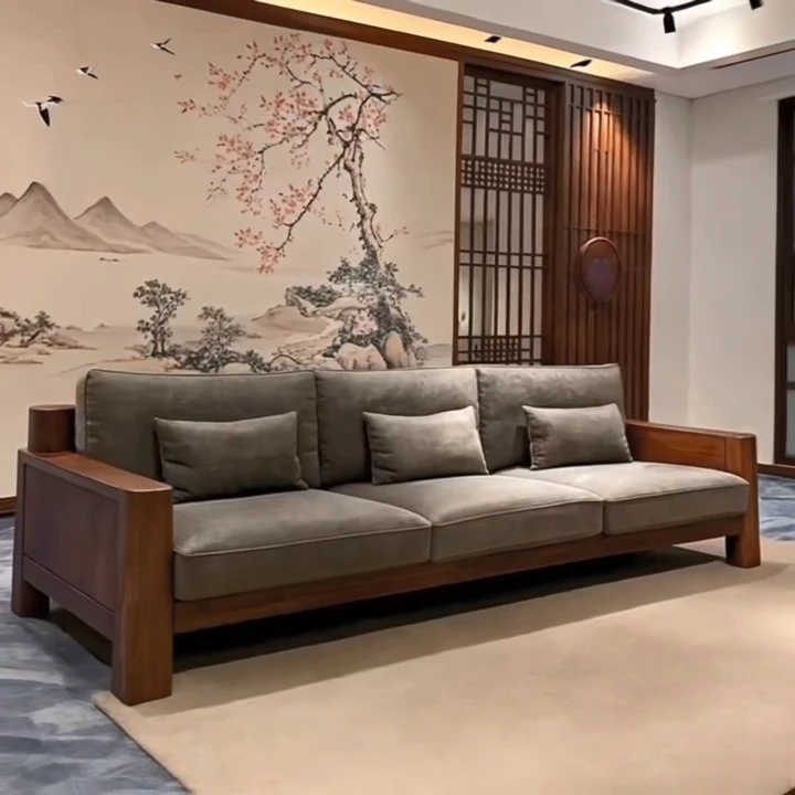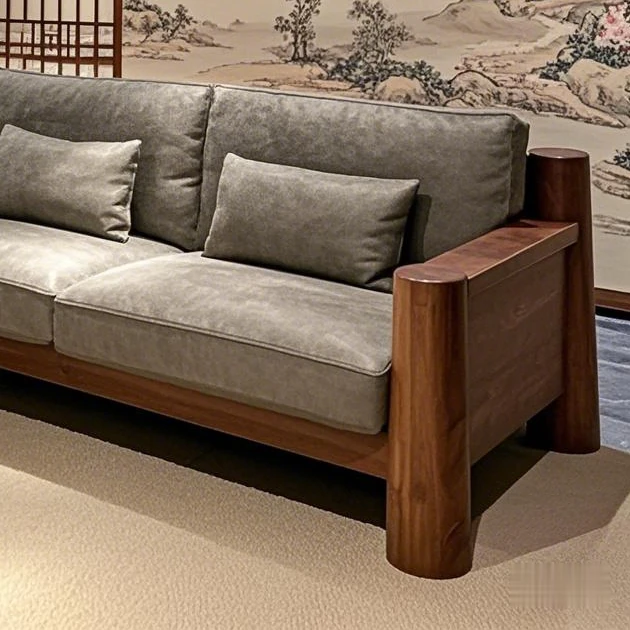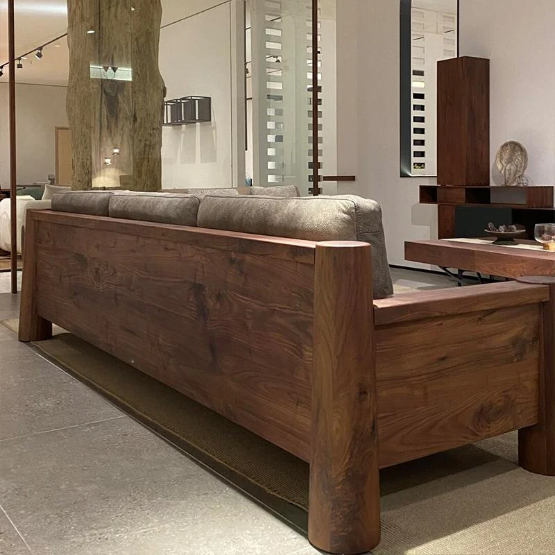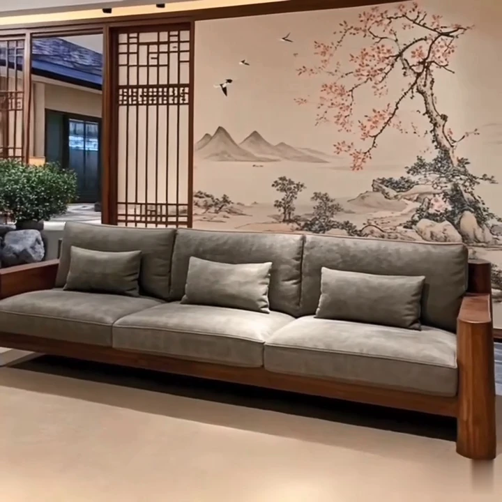 新中式ブラックウォールナット無垢材ソファ|2025年新作!モダンでシンプルなデザイン、小さなリビングにもぴったりなストレートソファ。快適さとスタイルを兼ね備えた一品をお見逃しなく!