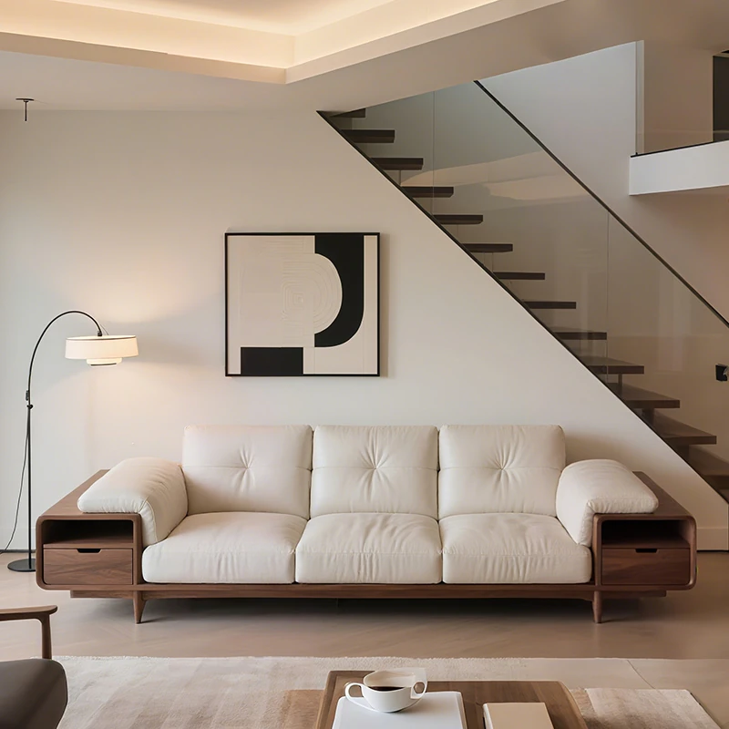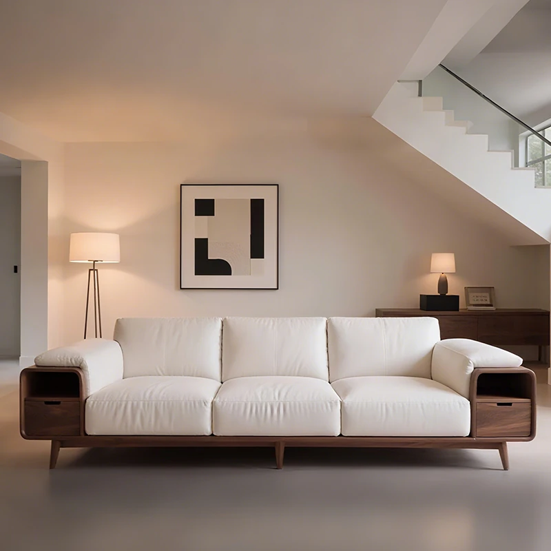 2025年新作!新中式実木ソファー - ブラックウォールナットの軽奢でシンプルなデザイン、客間を彩る宋氏美学の直線的な美しさを実現!あなたのリビングに洗練された雰囲気をプラスします。