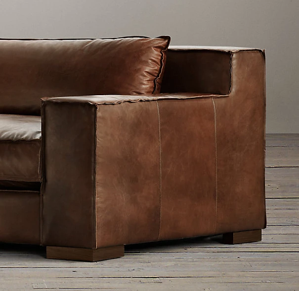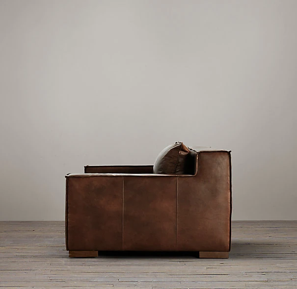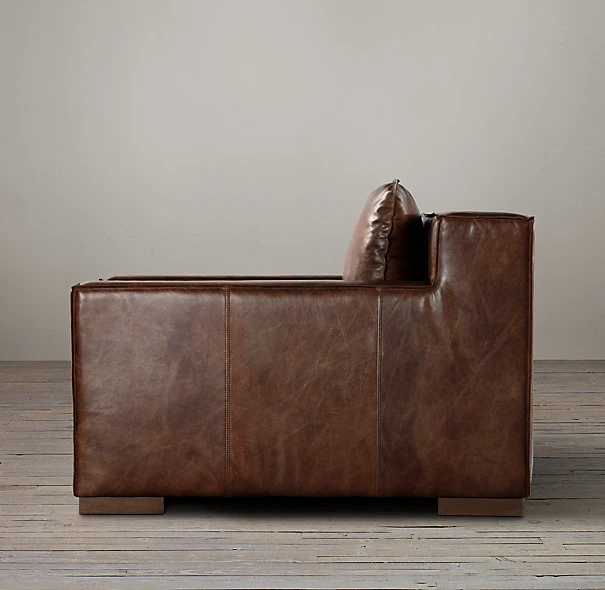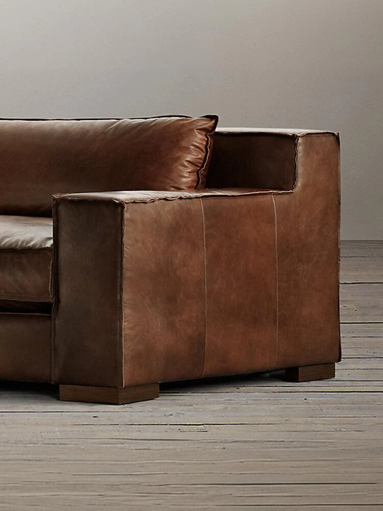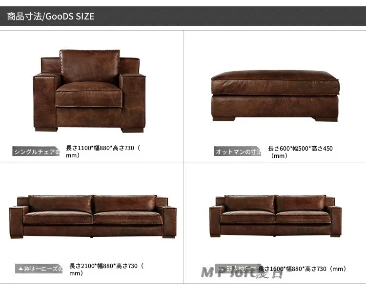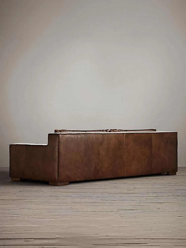 イタリアンミニマリズムの本革ソファ - 高級感溢れるレトロデザインで、大小様々なリビングに最適!モダンな空間を引き立てる上質な牛革使用。あなたの客間をスタイリッシュに演出します!
