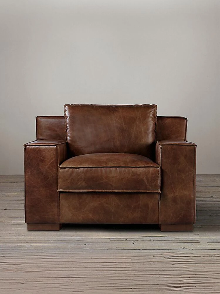 ヴィンテージ風アメリカンレトロオイルワックスレザーの一人掛けソファチェア。デザイナーのこだわりが詰まった、リビングやバルコニー、シガーバーにぴったりのラグジュアリーなリラックスチェア!