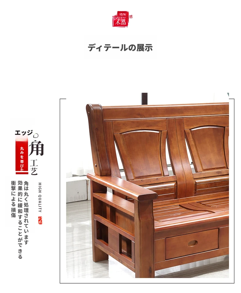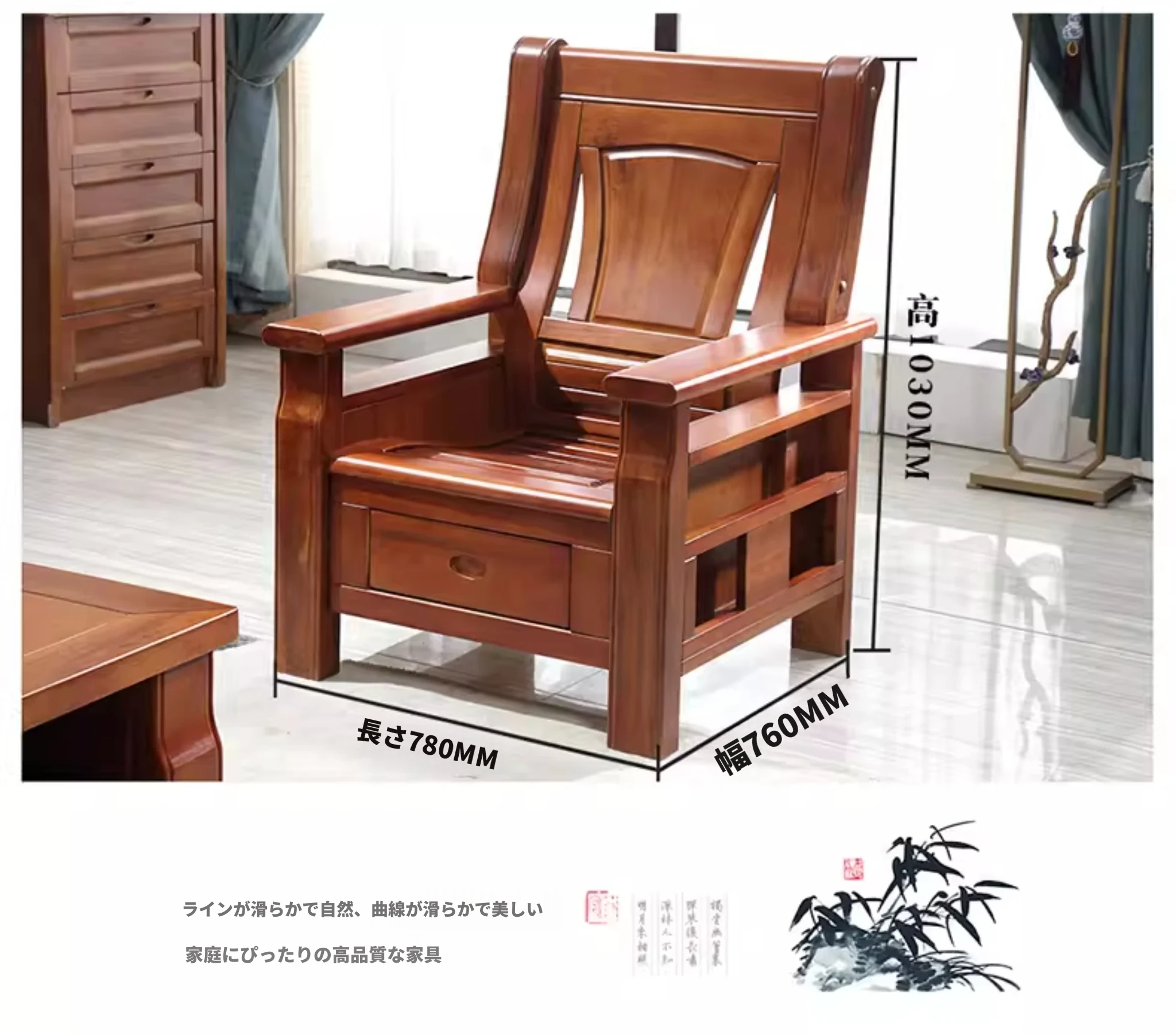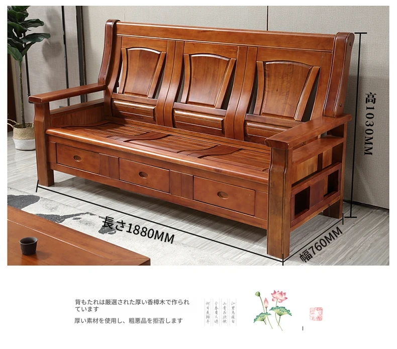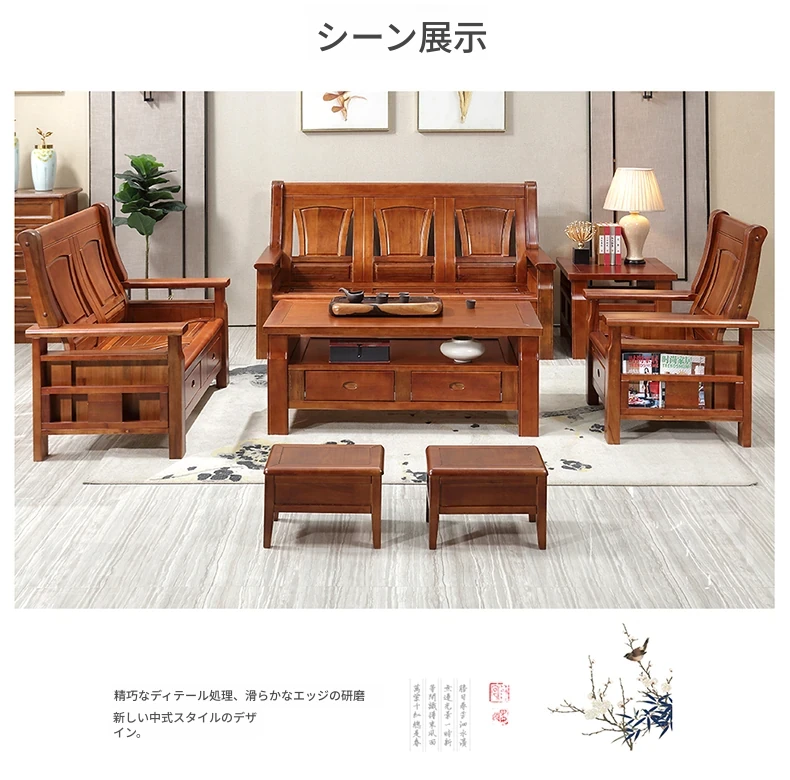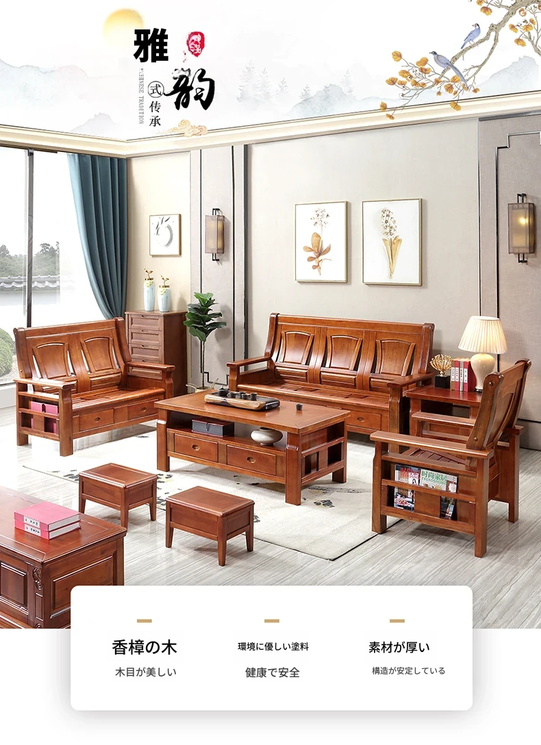 桦展多邦全実木ソファ 中式木製リビング家具 香樟木製 1+2+3人掛け大ソファ セット - 自然な温もりと高級感を兼ね備えた、心地よい居心地の空間を演出します!