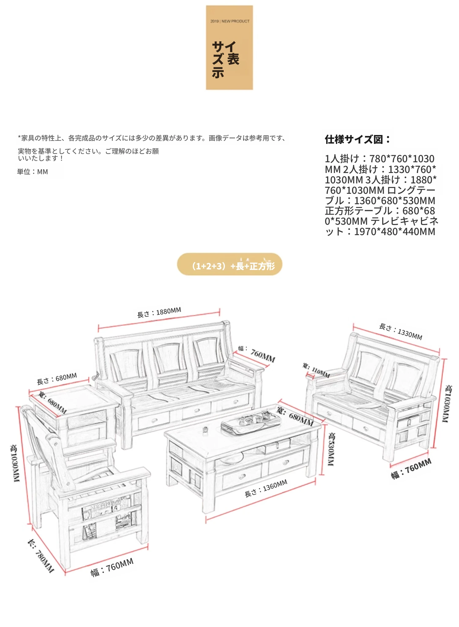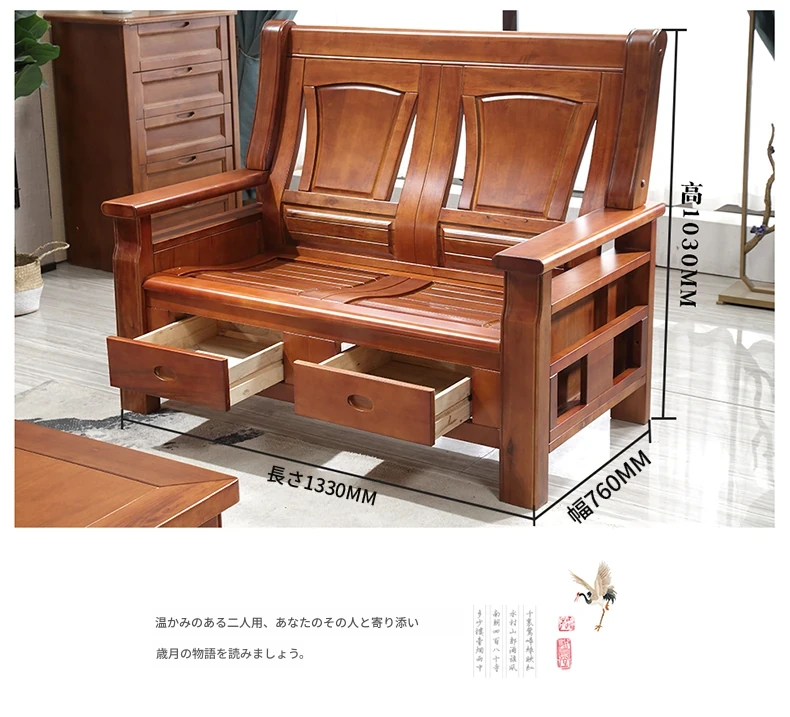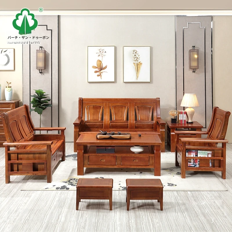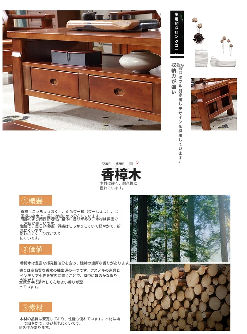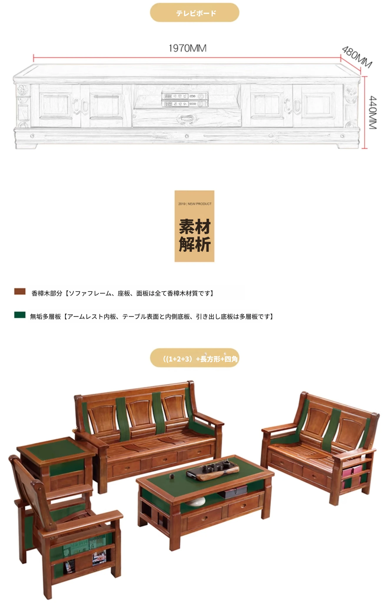 桦展多邦全実木ソファ 中式木製リビング家具 香樟木製 1+2+3人掛け大ソファ セット - 自然な温もりと高級感を兼ね備えた、心地よい居心地の空間を演出します!