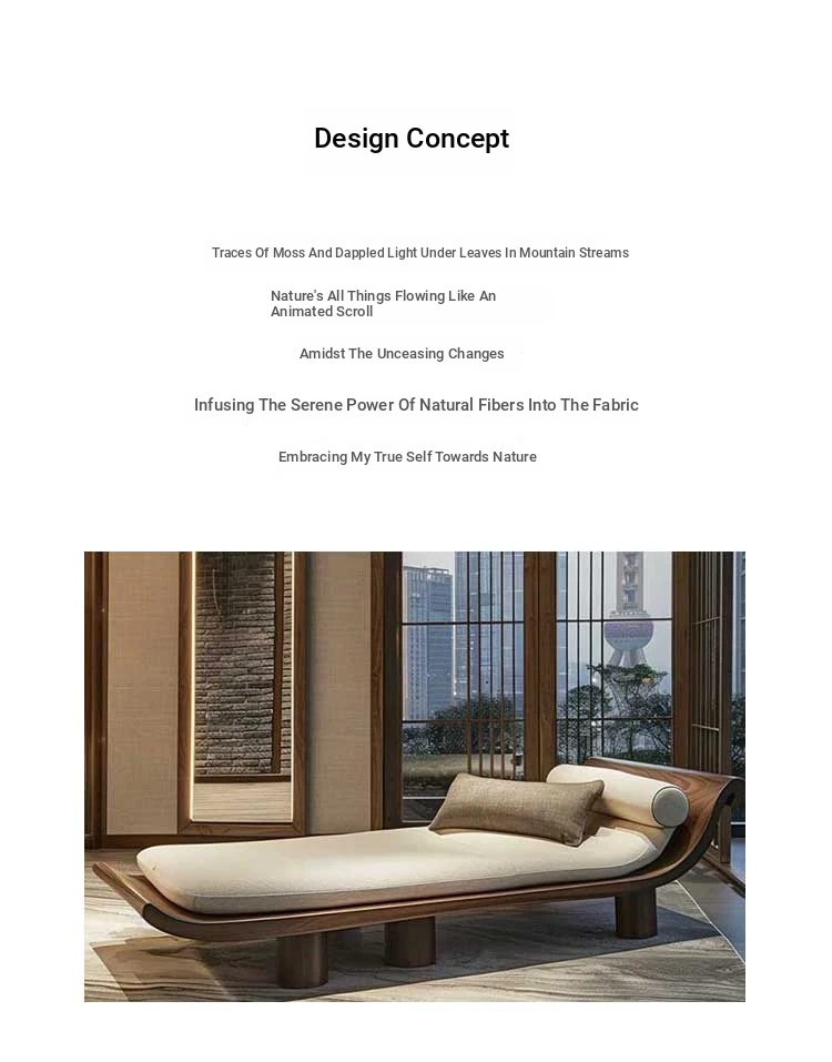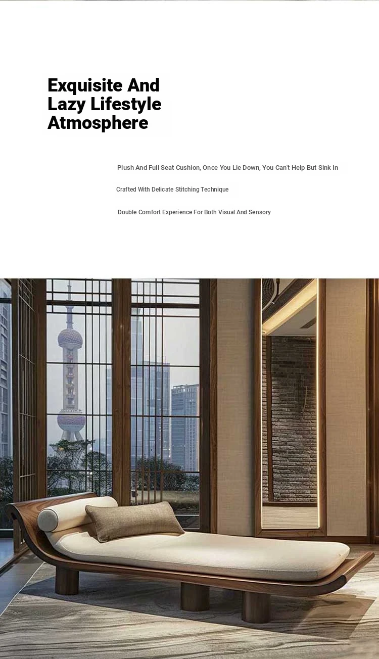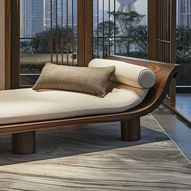 Black Walnut & Ash Wood Chaise Lounge - New Chinese Style Solid Wood Zen-Inspired Recliner for Office, Hotel, and Airbnb Sofa Chair