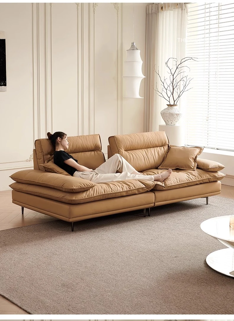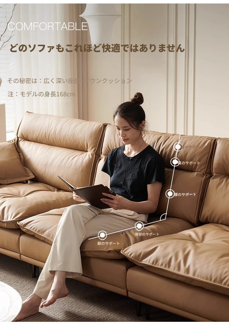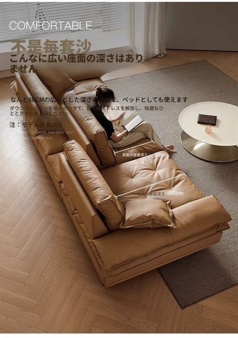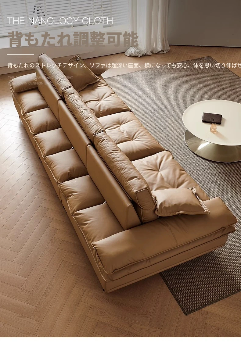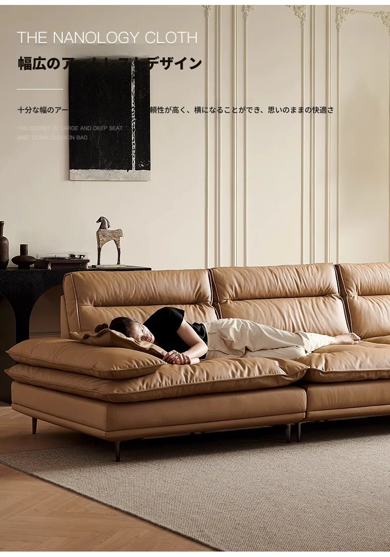 百年の皇朝帆船ソファ エジプト神のキャラメル色 可動式背もたれ 上質な本革 超深座り 幅広の真皮ソファ