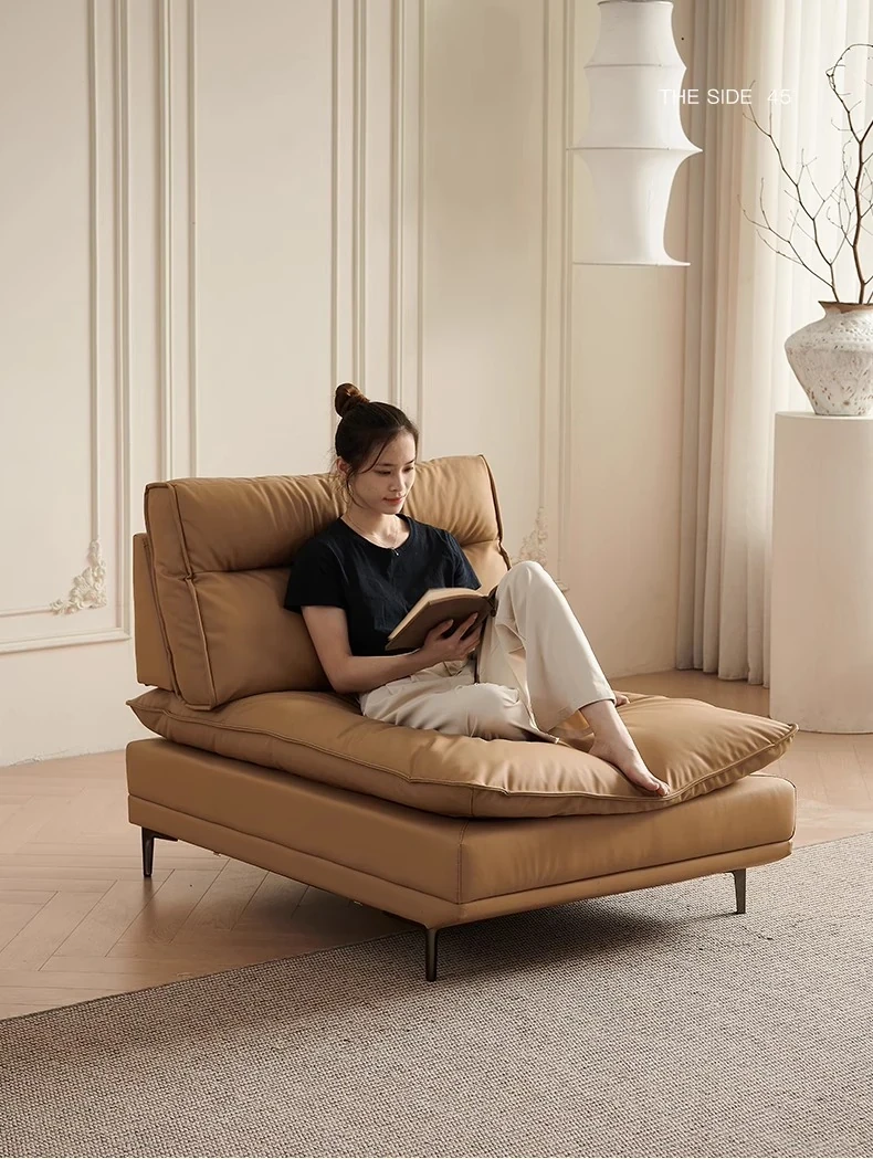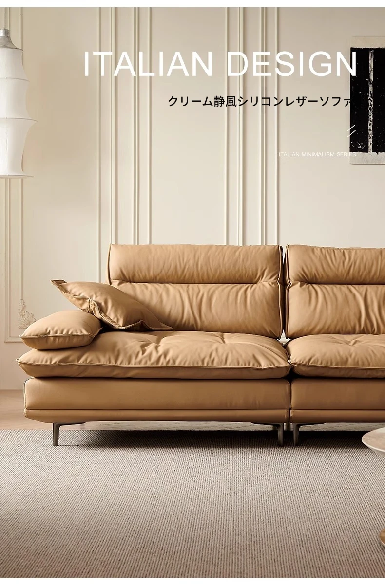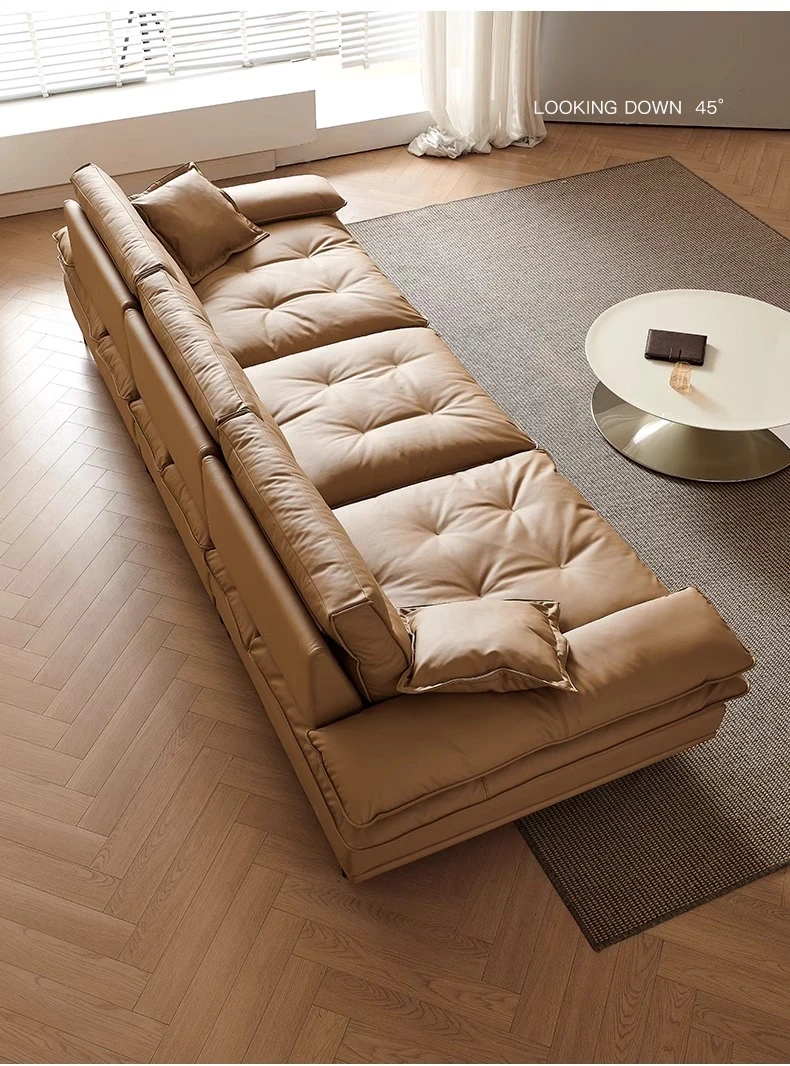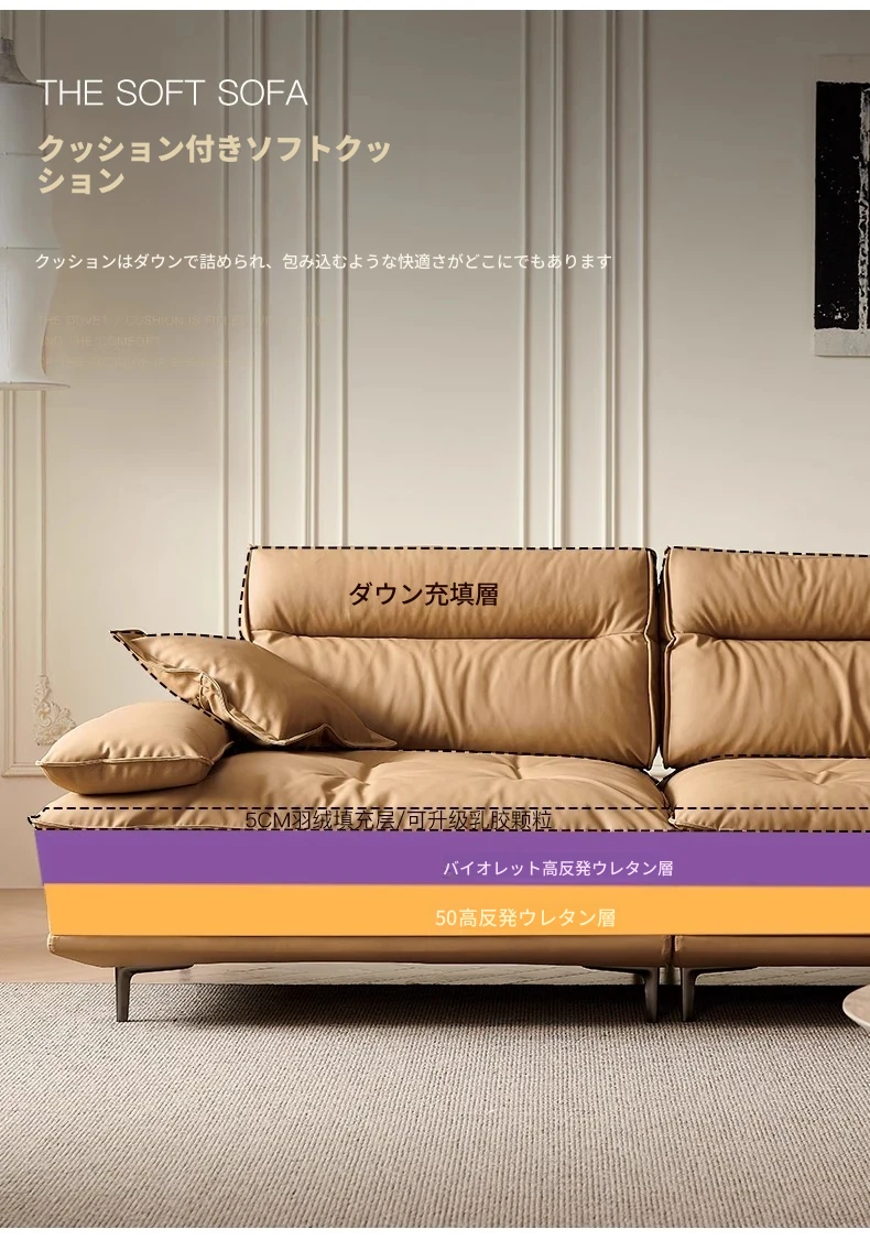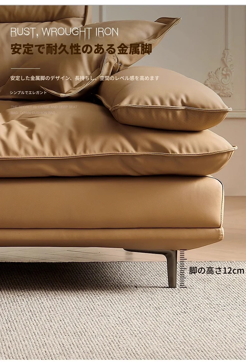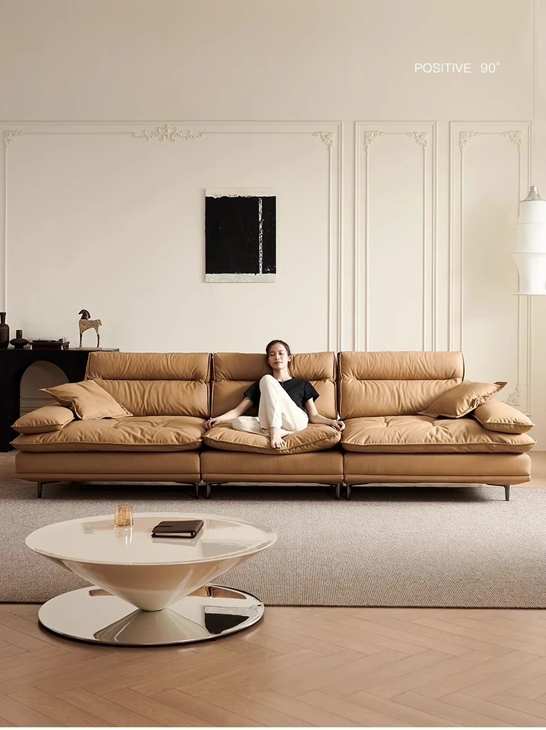 百年の皇朝帆船ソファ エジプト神のキャラメル色 可動式背もたれ 上質な本革 超深座り 幅広の真皮ソファ
