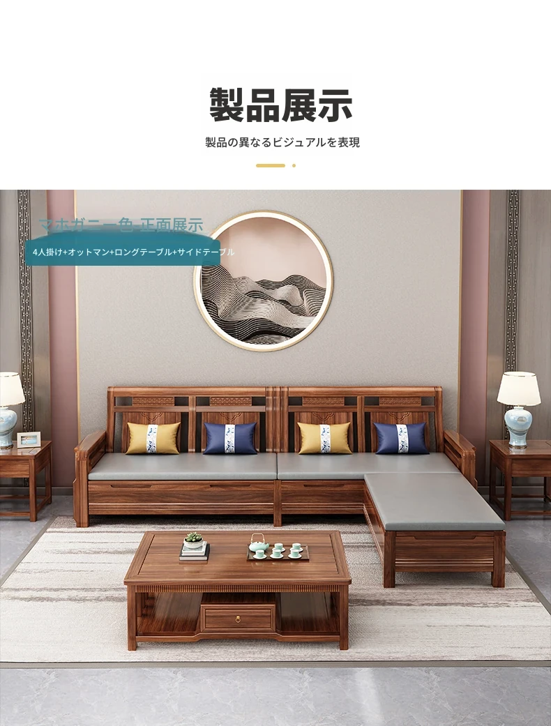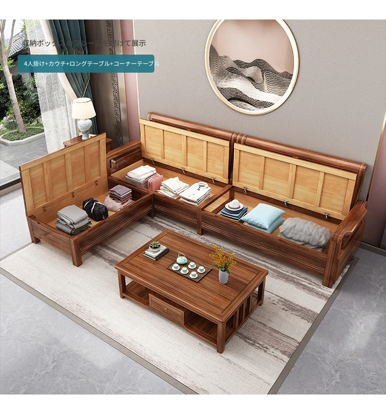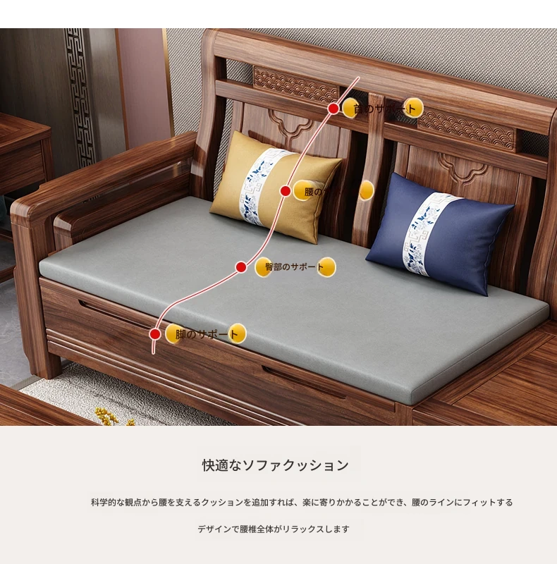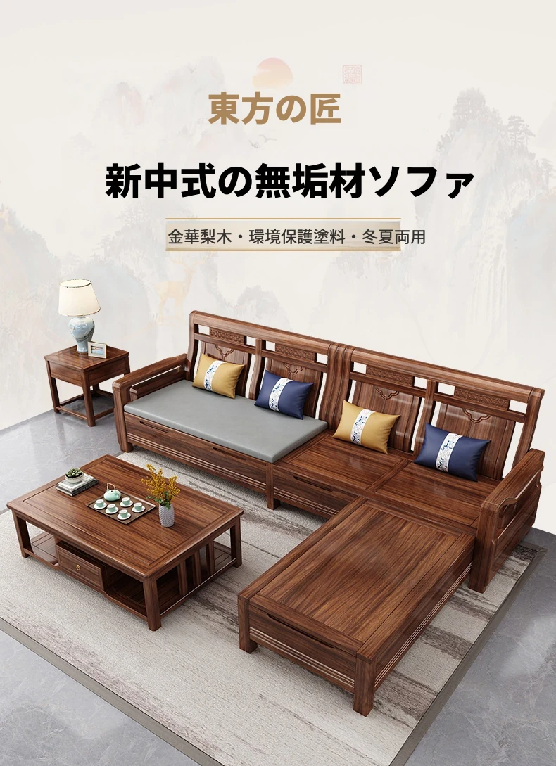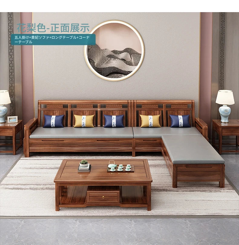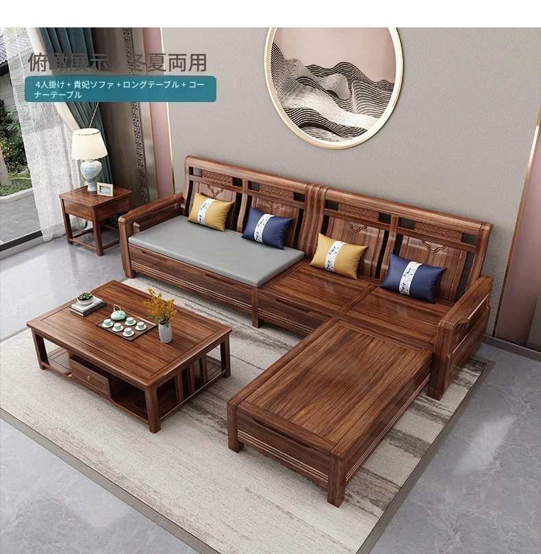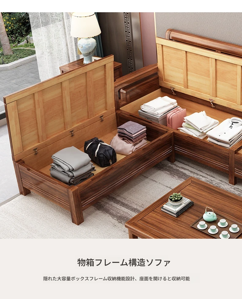 金花梨木製 中式実木ソファ 三人掛け 小型リビングに最適 冬夏兼用 四人用貴妃椅子付き 収納機能付き家具でお部屋をスッキリ!