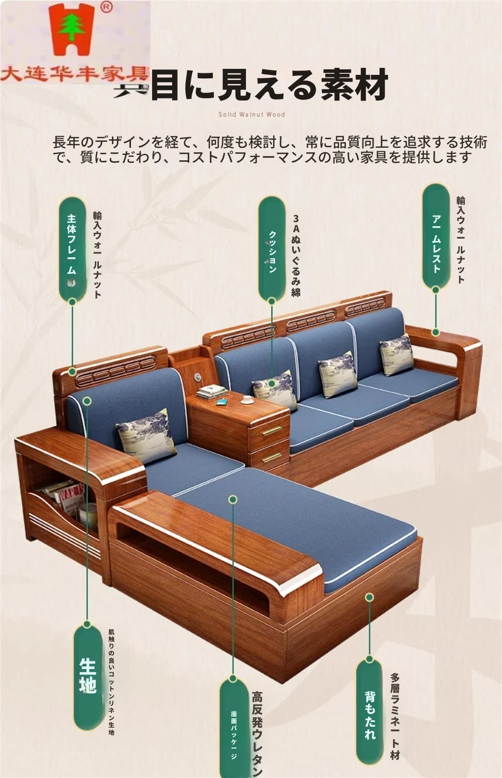 四人掛け+貴妃ソファ+コーヒーテーブル(アップグレードラテックス+テクノロジー布)