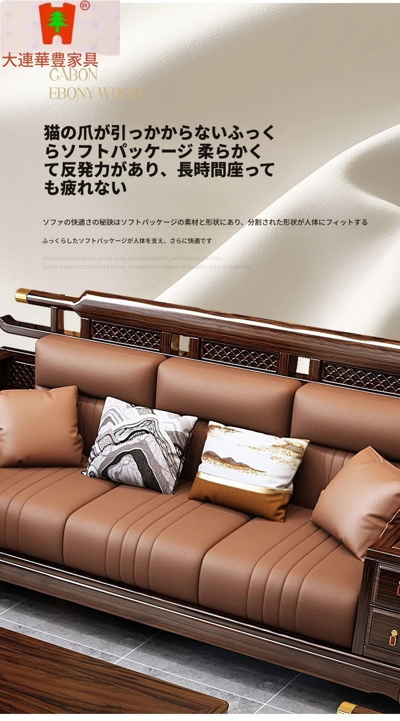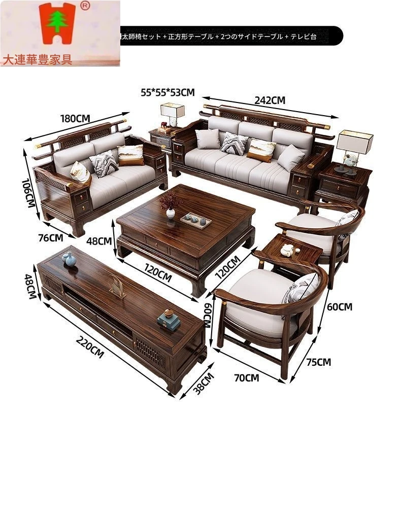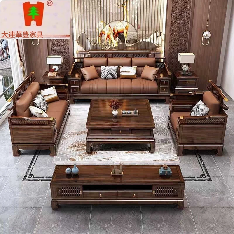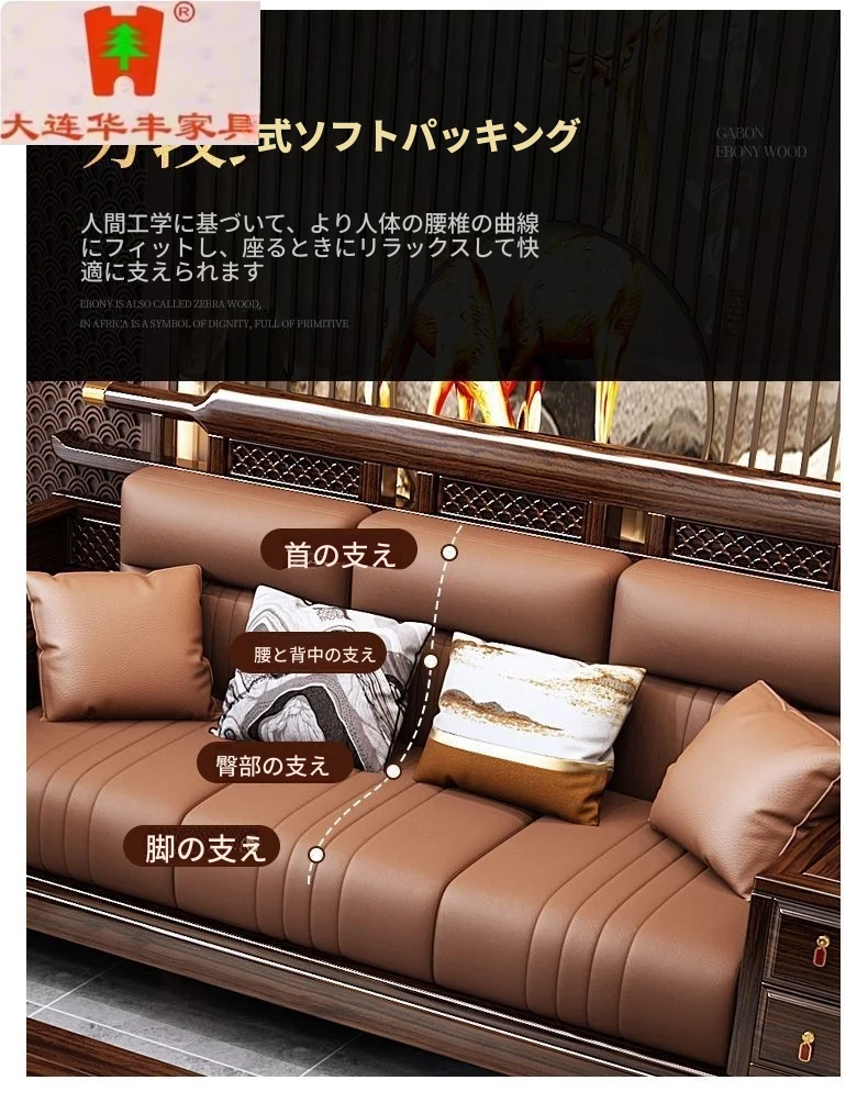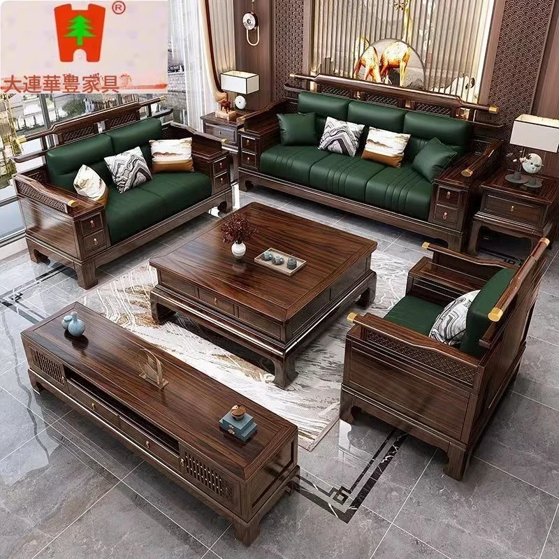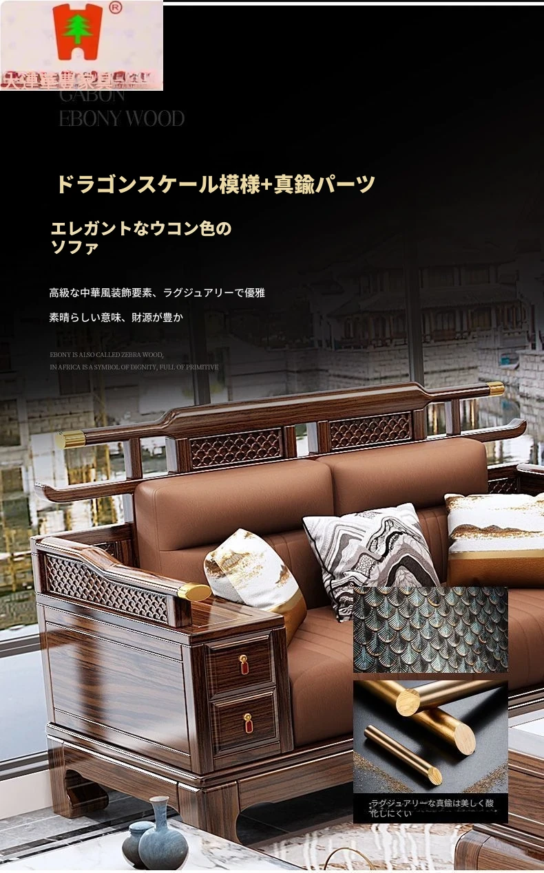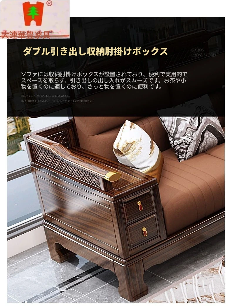 大連華豊公式フラッグシップストア新中式ウッドブラックソファセット|冬夏両用の贅沢リビングルーム家具で、ヴィラにもぴったり!