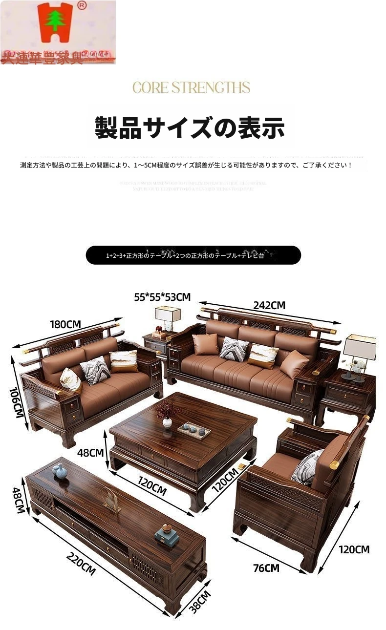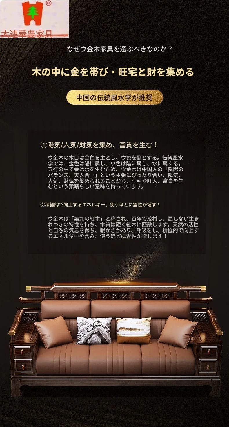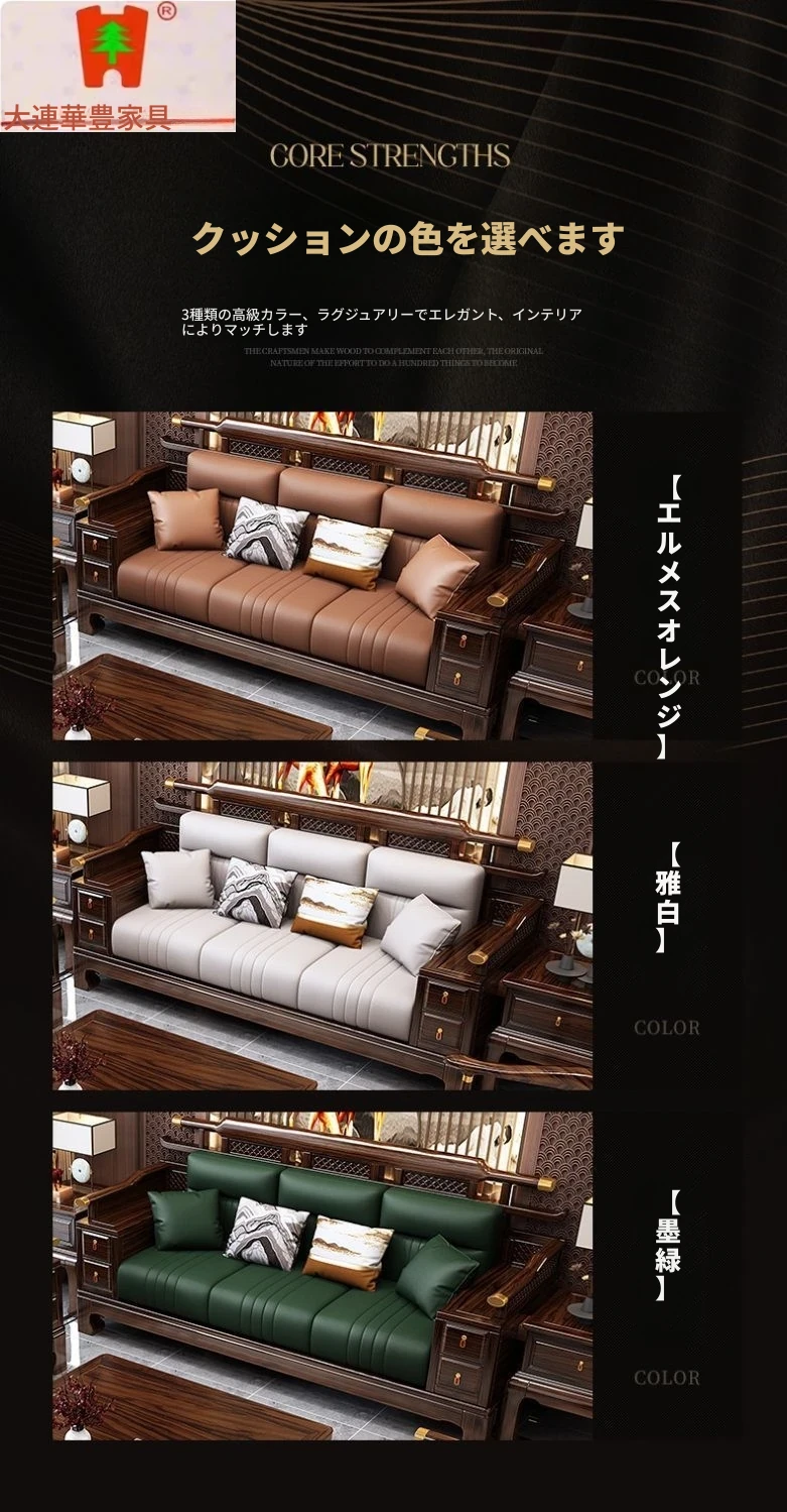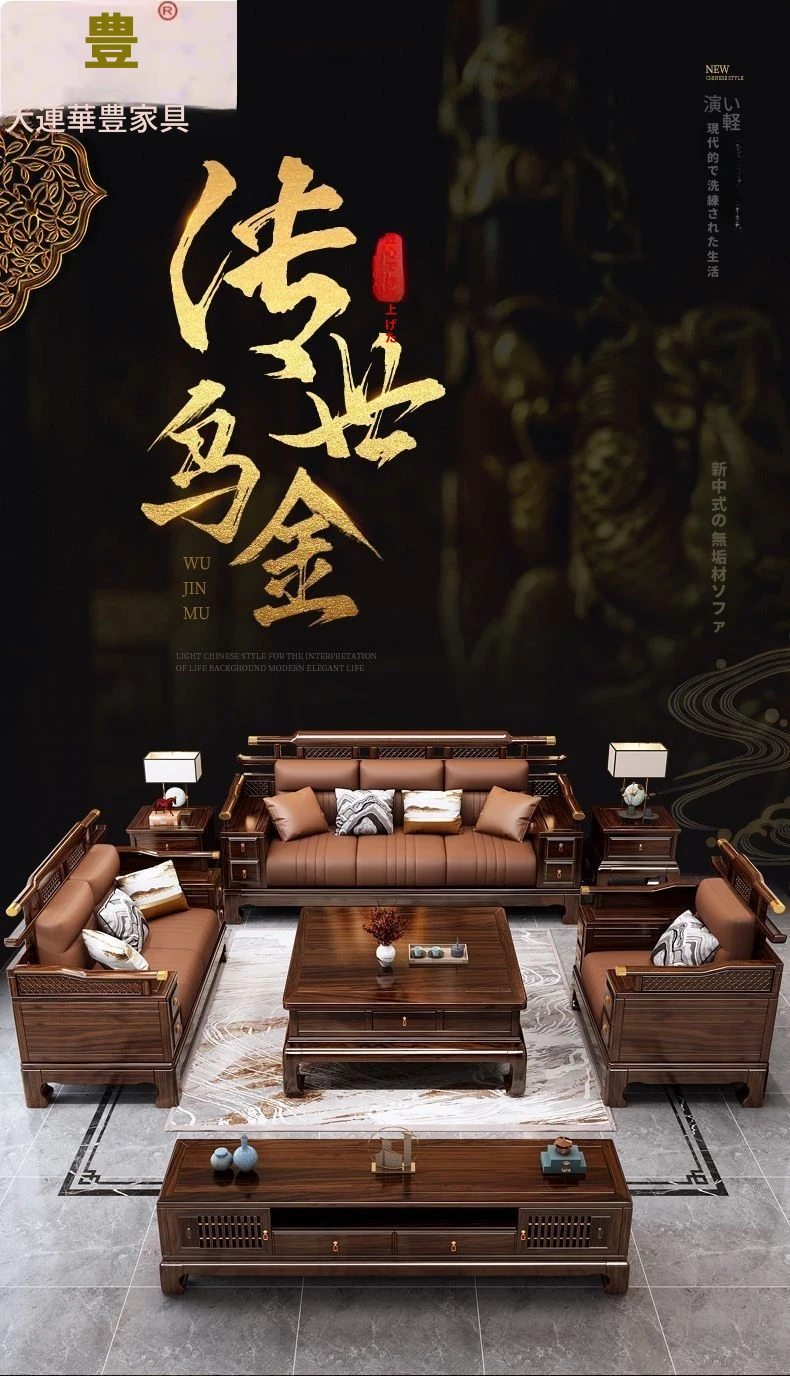 大連華豊公式フラッグシップストア新中式ウッドブラックソファセット|冬夏両用の贅沢リビングルーム家具で、ヴィラにもぴったり!
