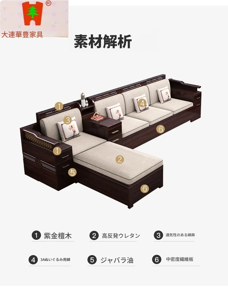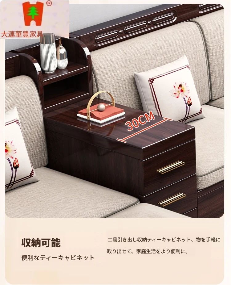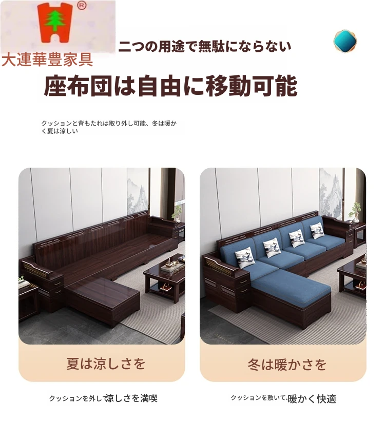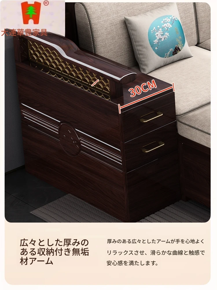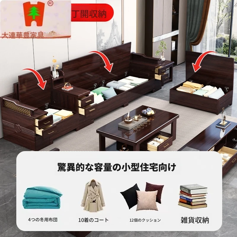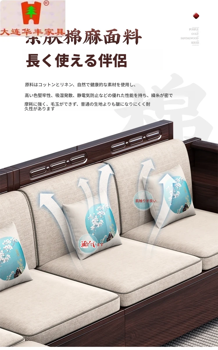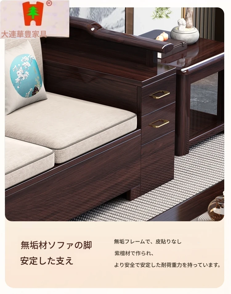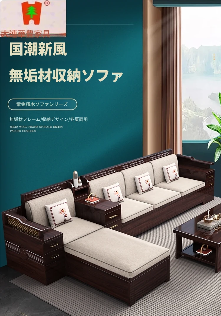 大連華豊公式フラッグシップストア 新中式デザインの紫金檀木製高級ソファ 冬夏兼用&収納機能付き 新作軽奢スタイルでお部屋を華やかに!