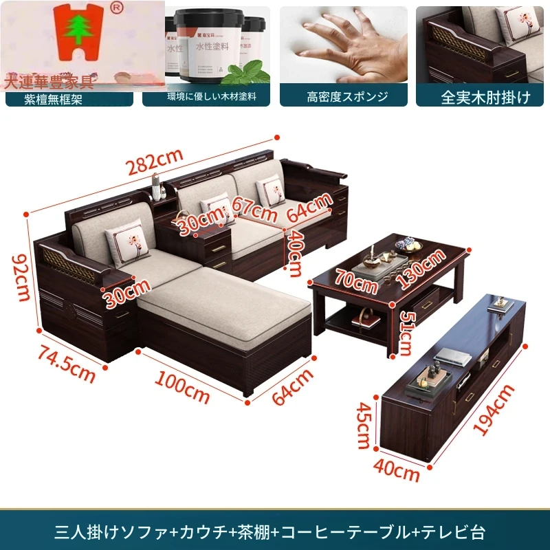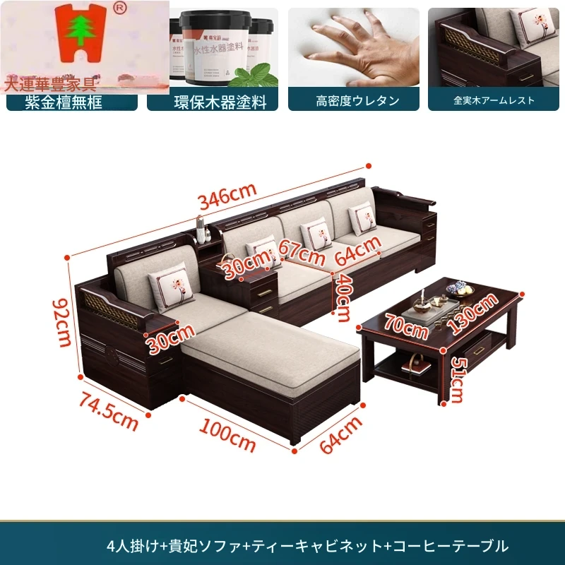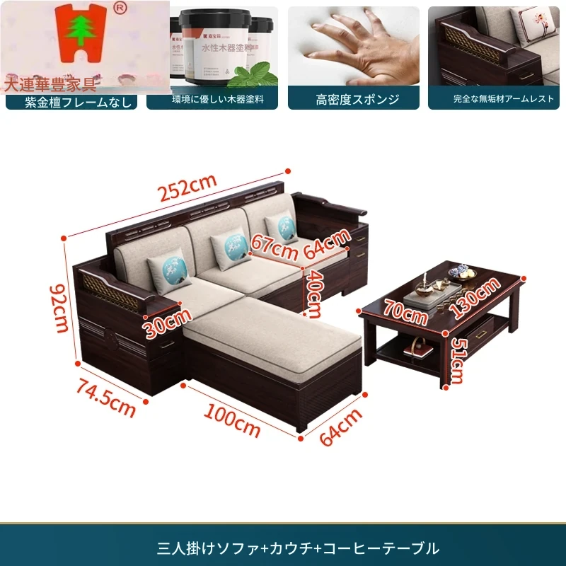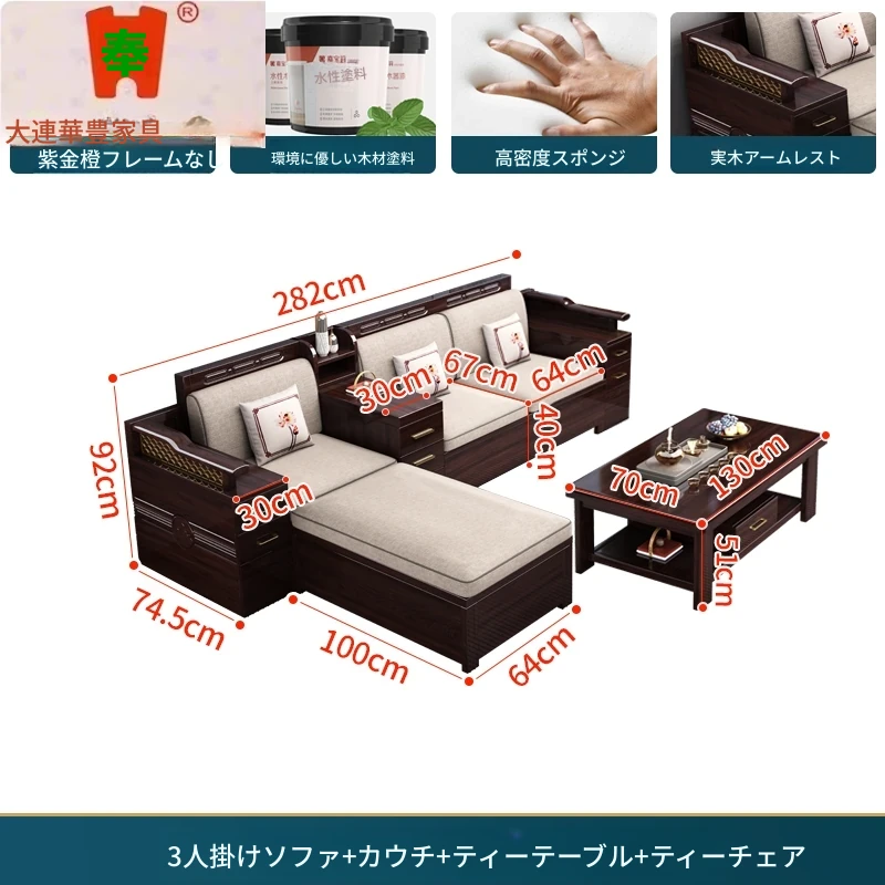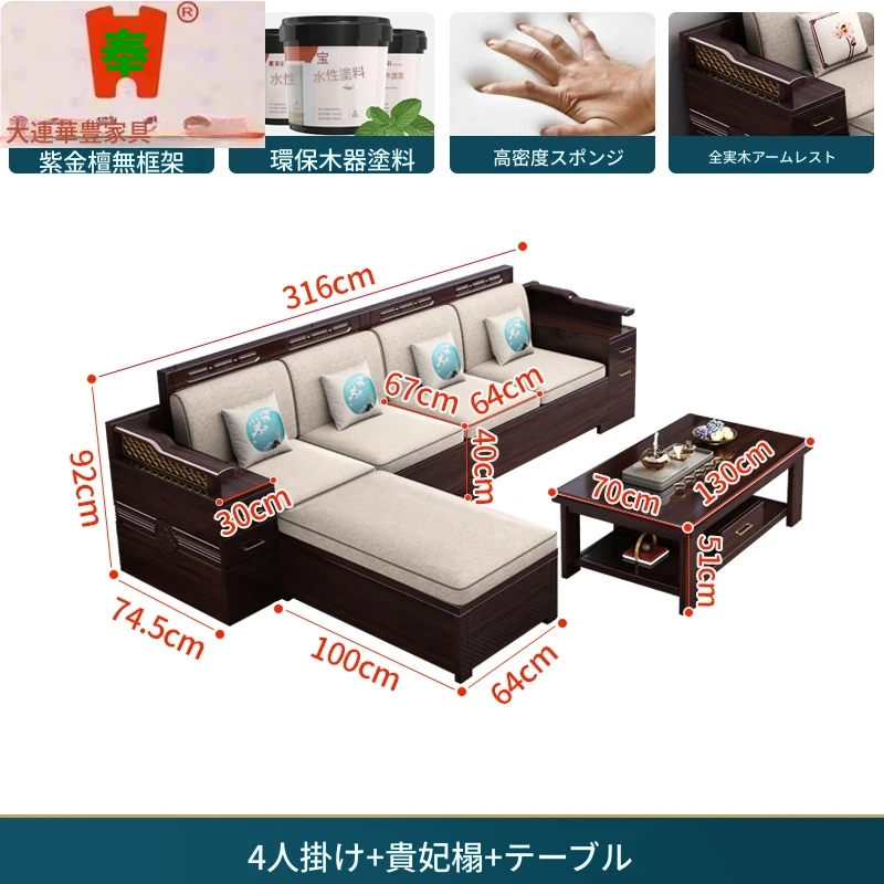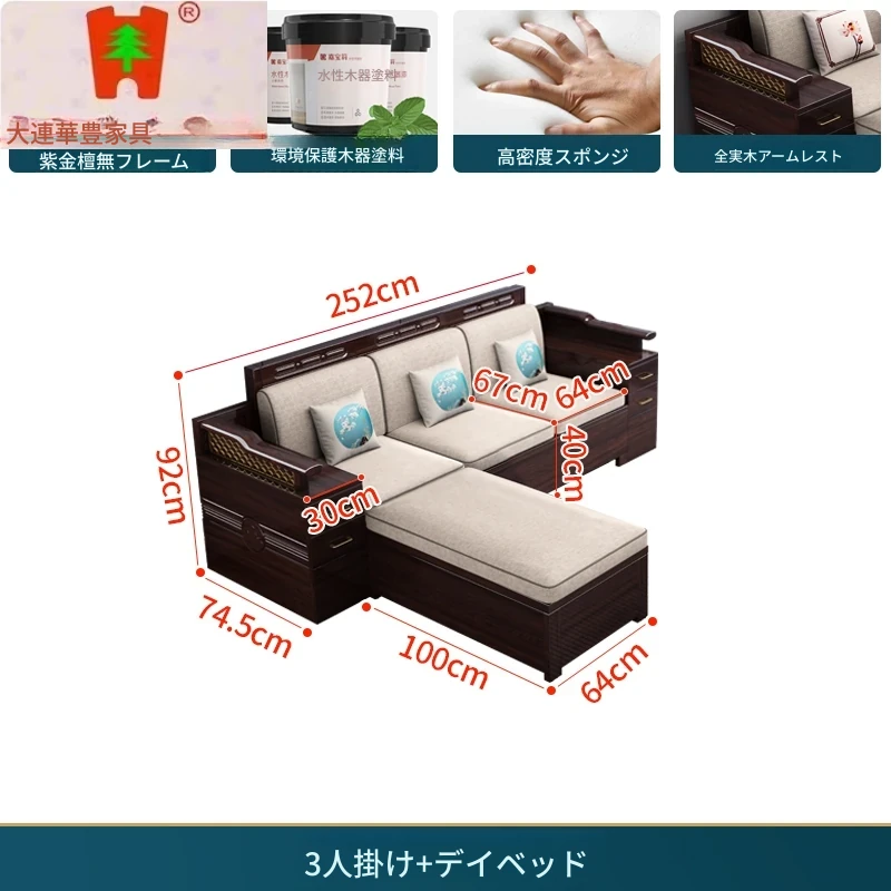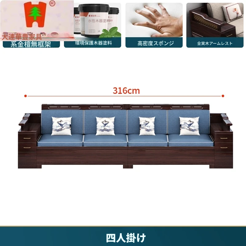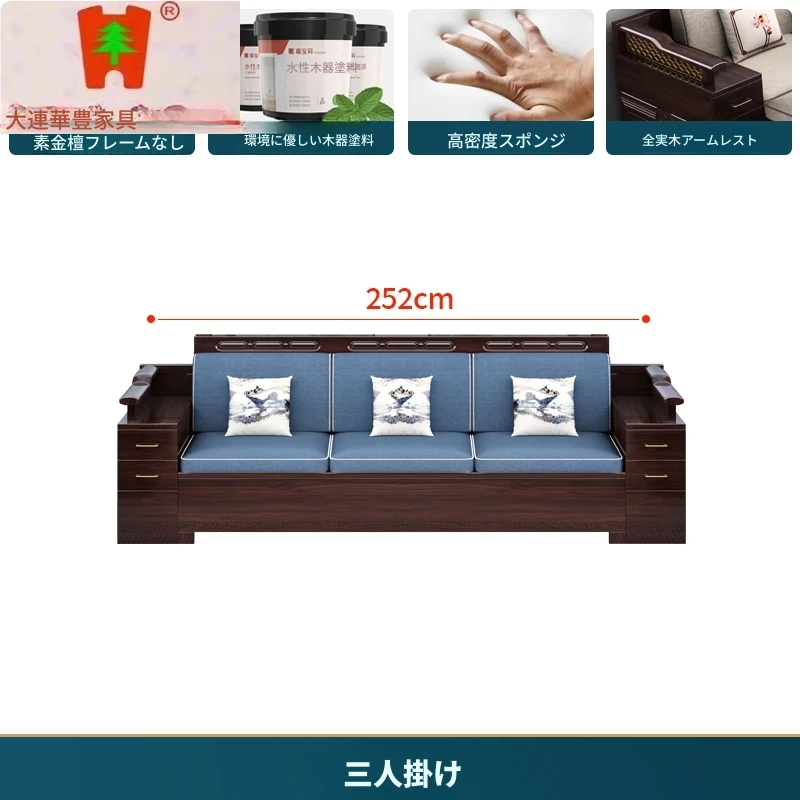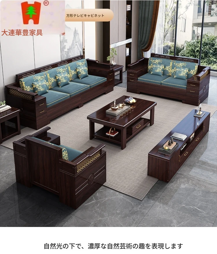 大連華豊公式フラッグシップストア 新中式デザインの紫金檀木製高級ソファ 冬夏兼用&収納機能付き 新作軽奢スタイルでお部屋を華やかに!