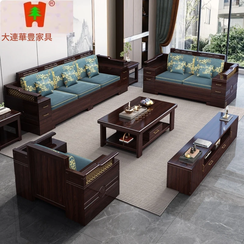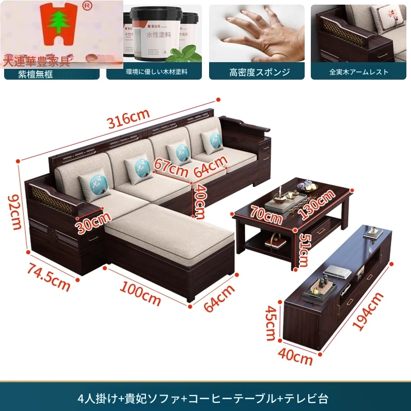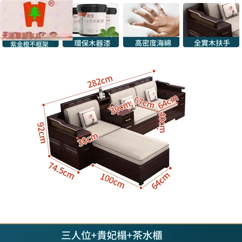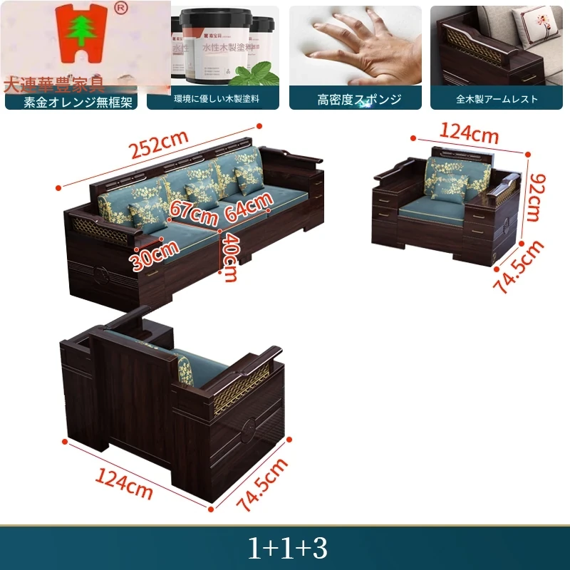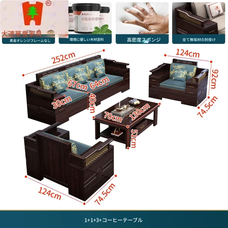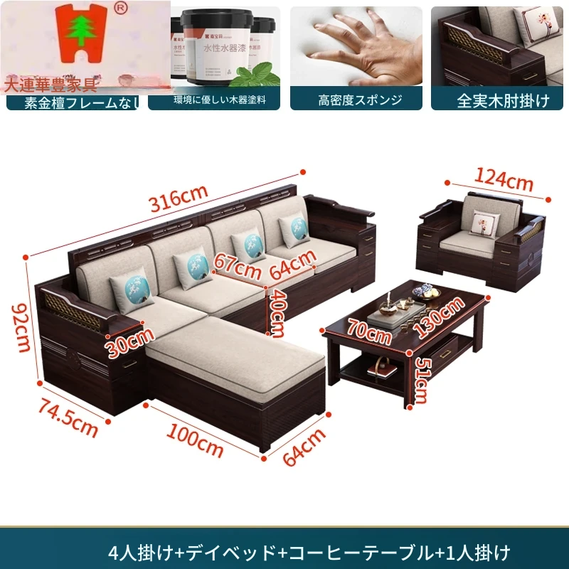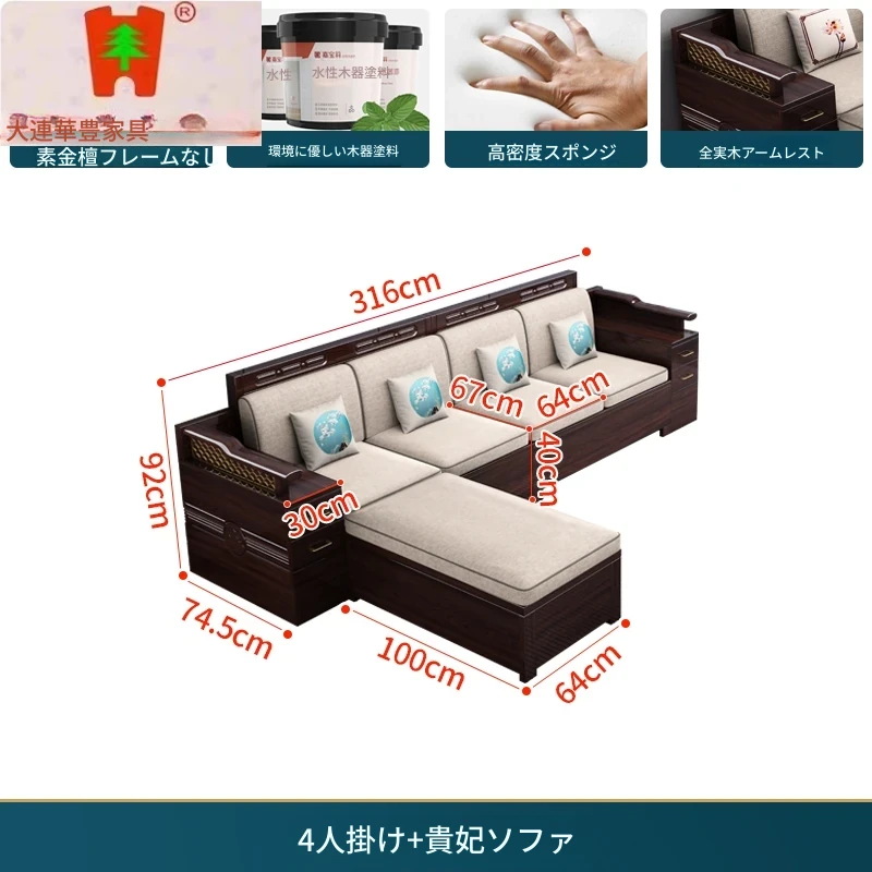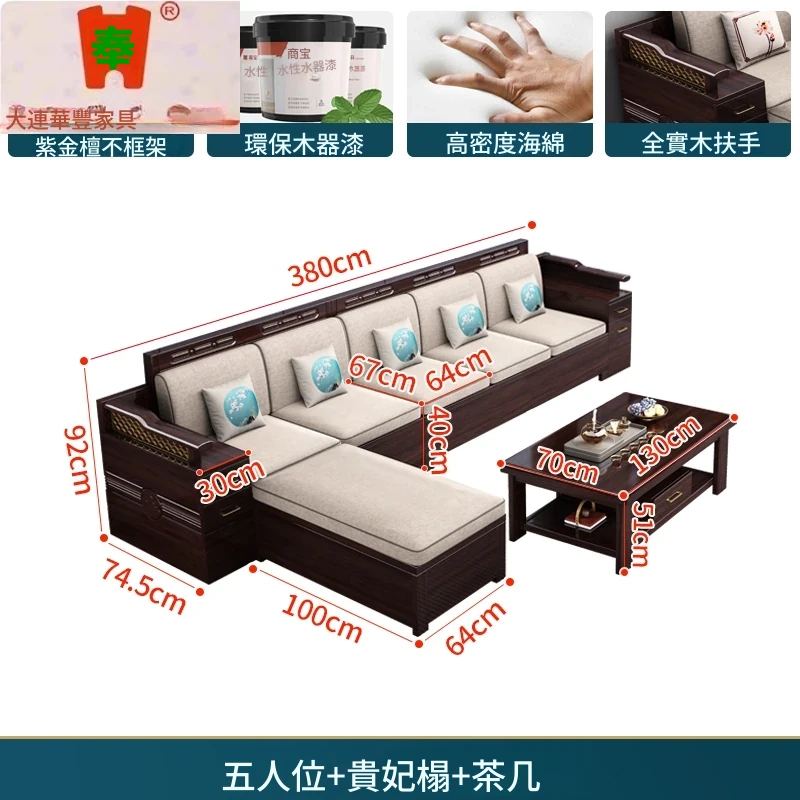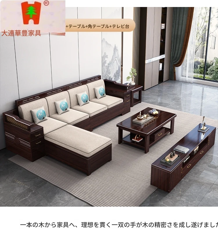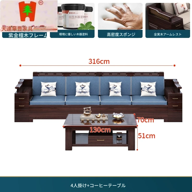 大連華豊公式フラッグシップストア 新中式デザインの紫金檀木製高級ソファ 冬夏兼用&収納機能付き 新作軽奢スタイルでお部屋を華やかに!