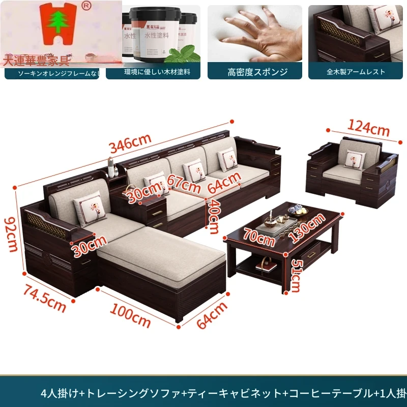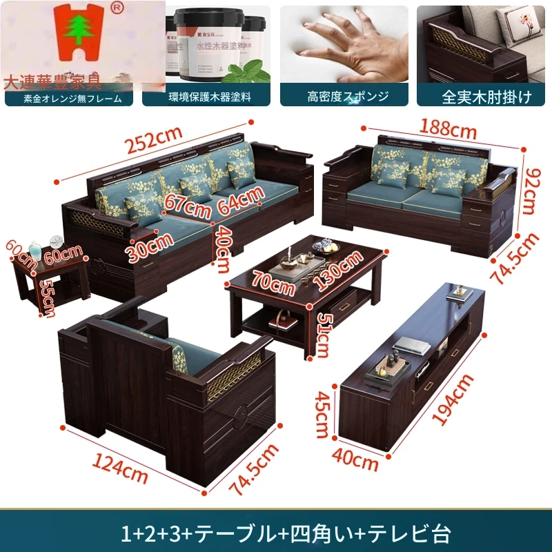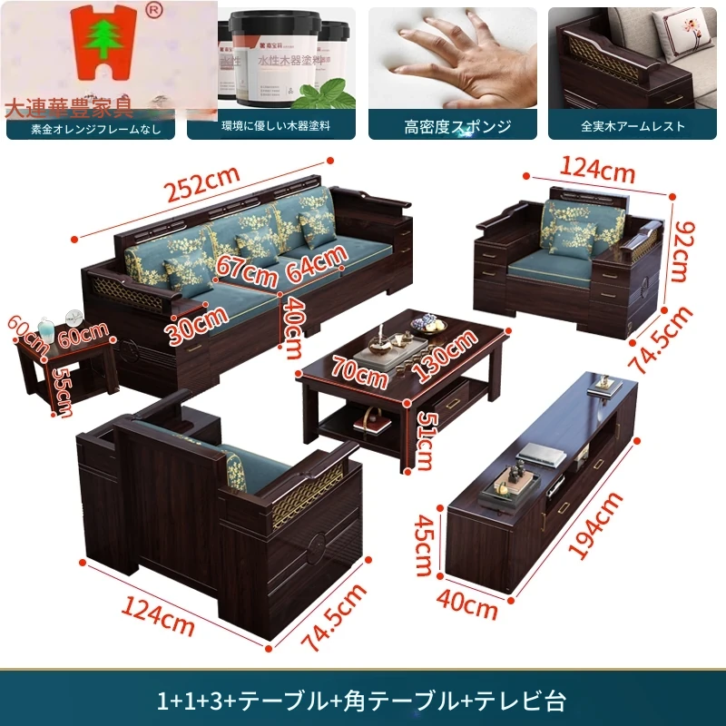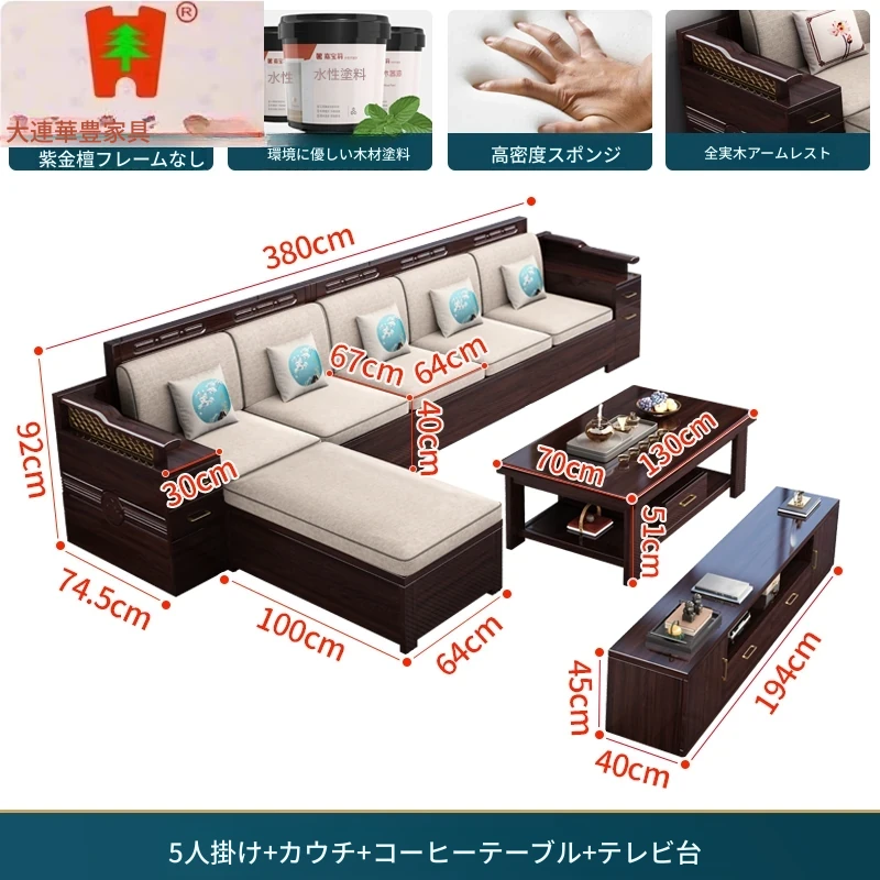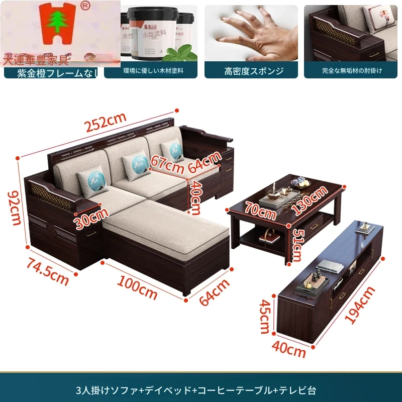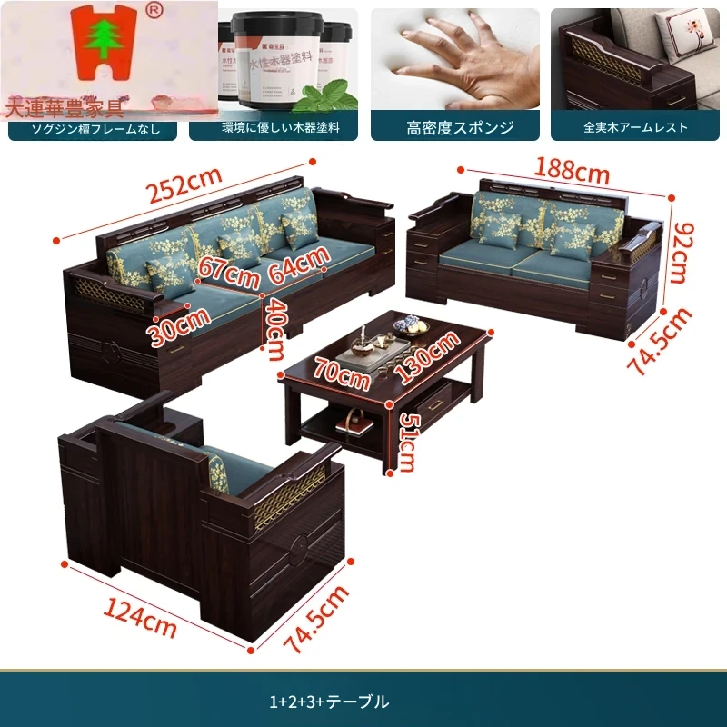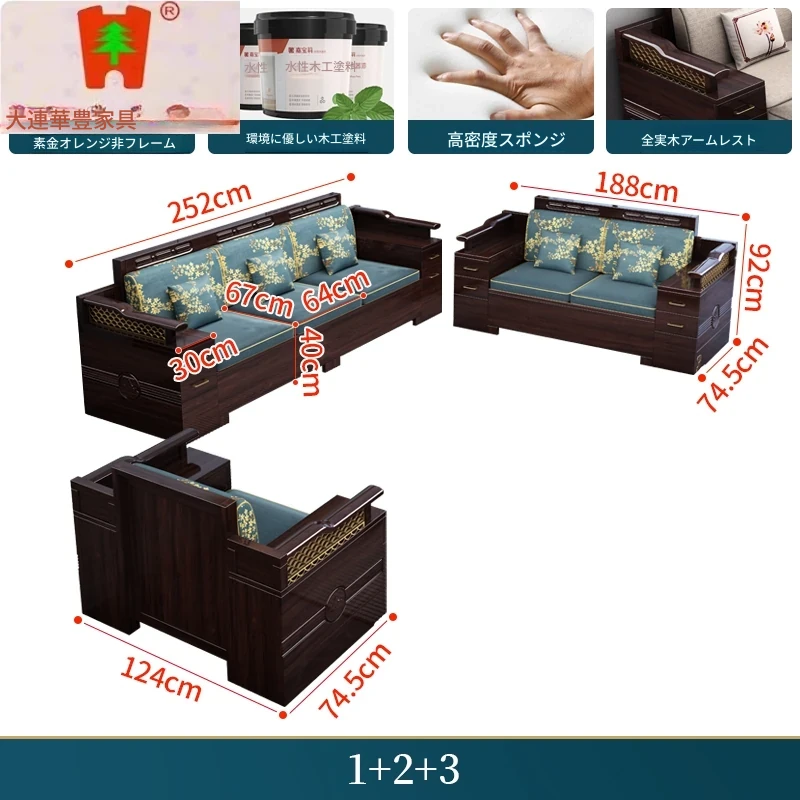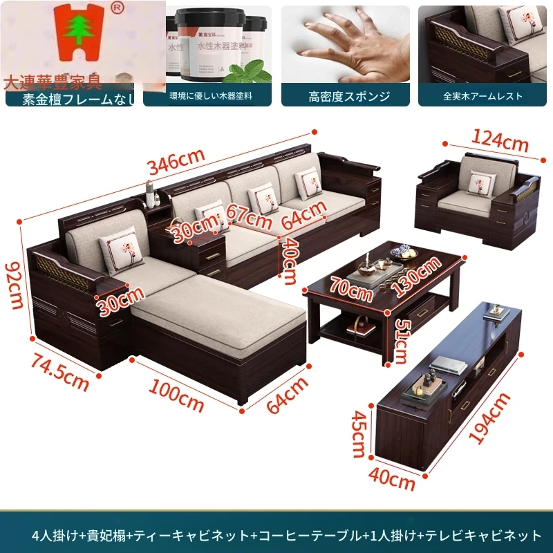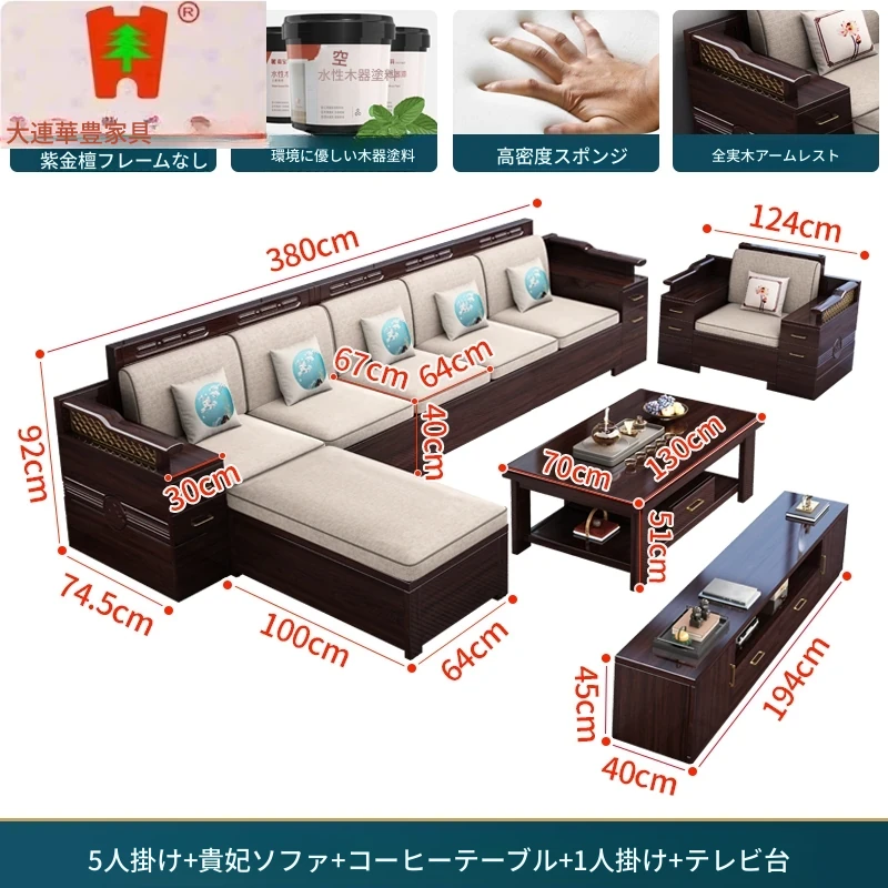 大連華豊公式フラッグシップストア 新中式デザインの紫金檀木製高級ソファ 冬夏兼用&収納機能付き 新作軽奢スタイルでお部屋を華やかに!