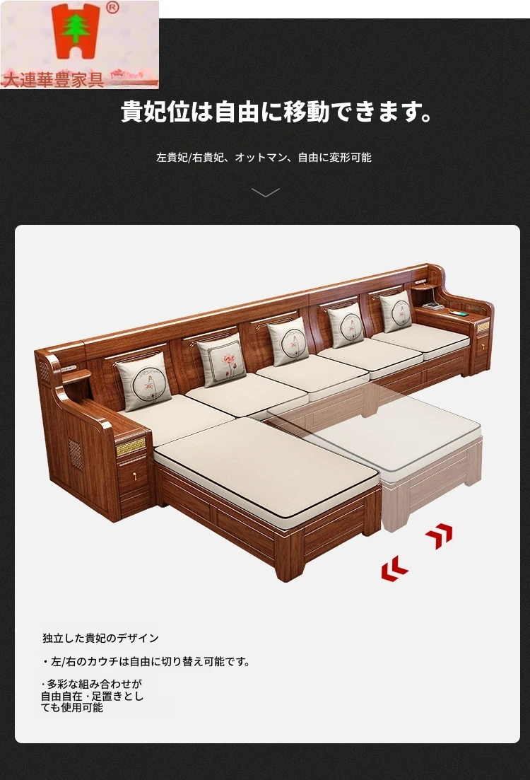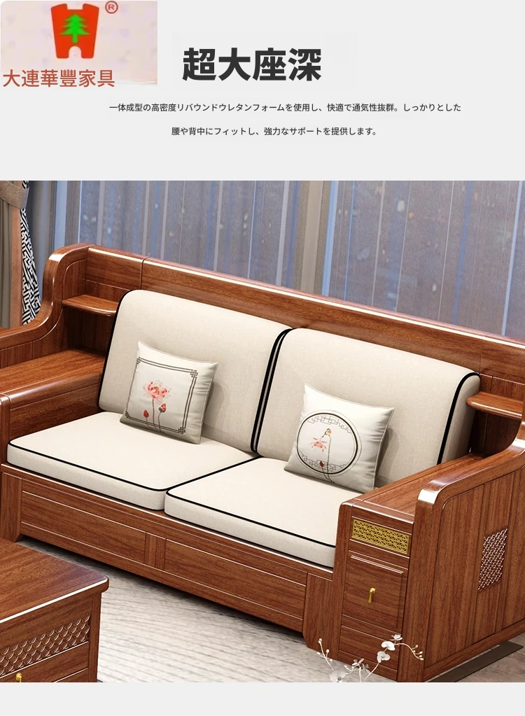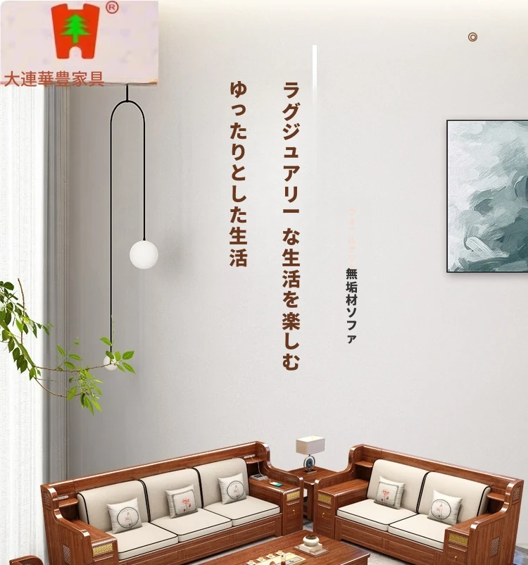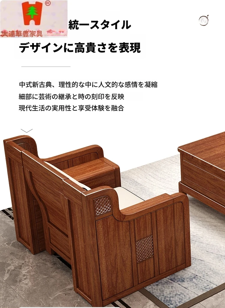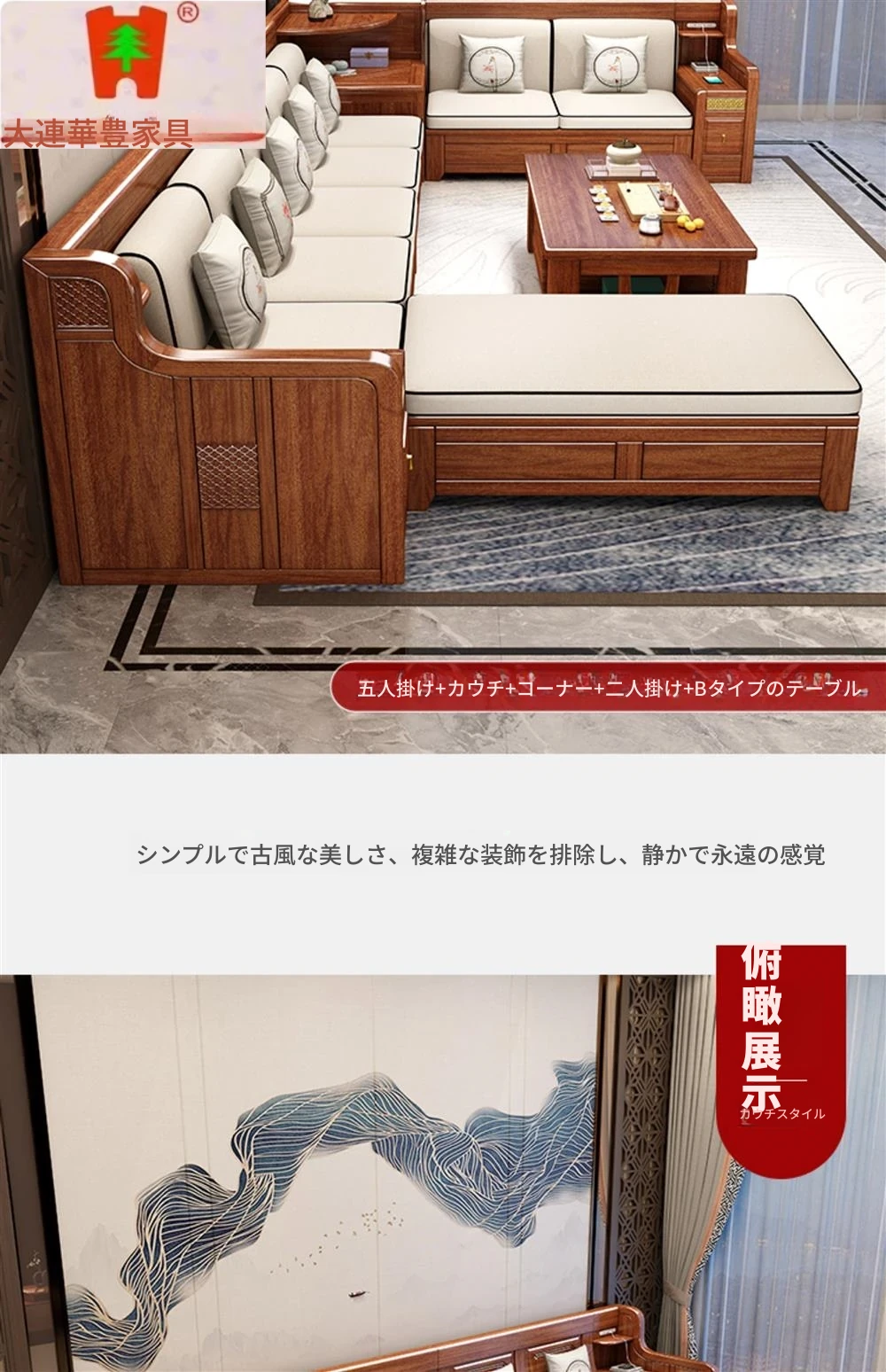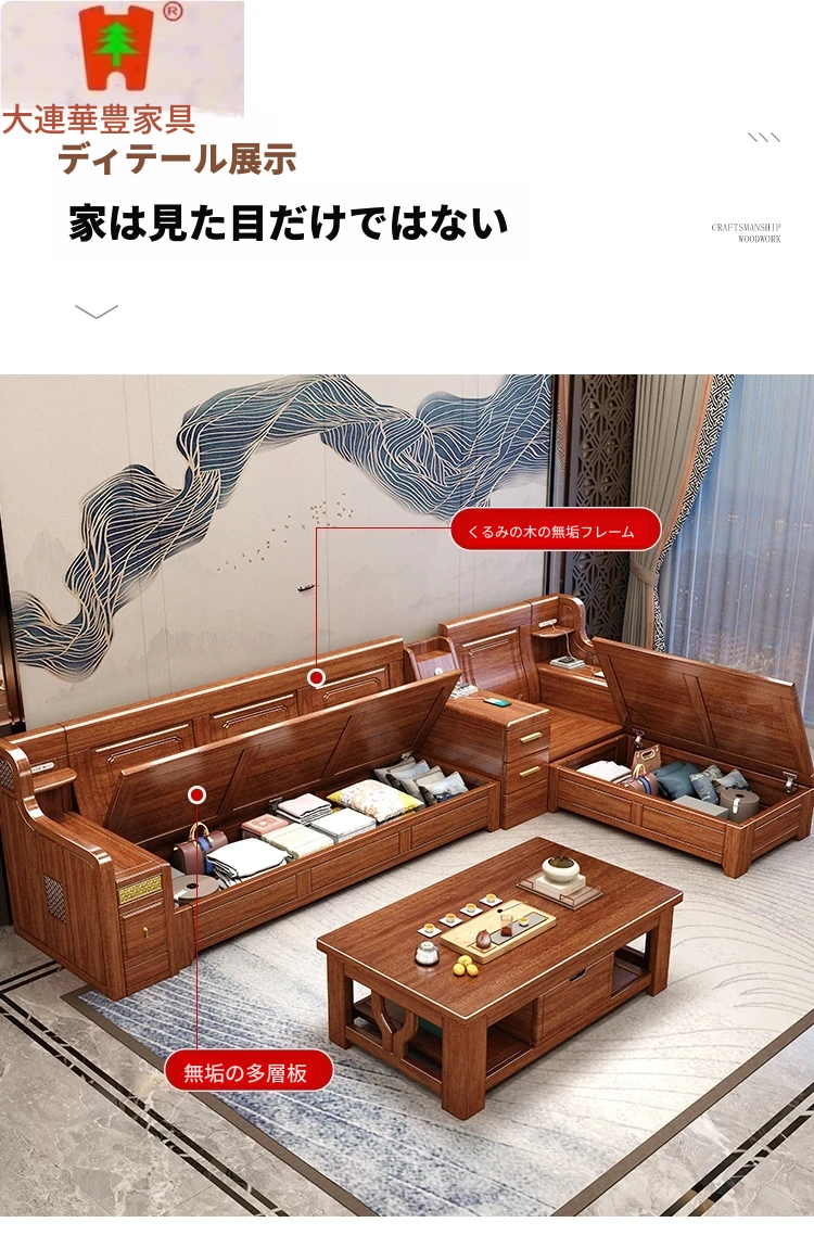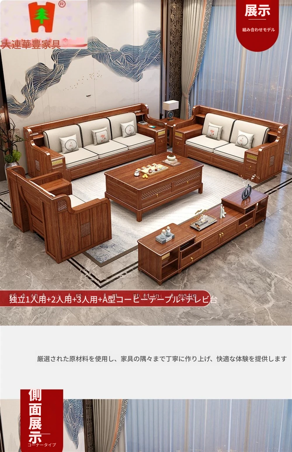 大連華豊公式フラッグシップストア 高級厚手ウォールナットソファ 2024年新作 全実木コンビネーション リビングルームに最適なスタイリッシュな選択!