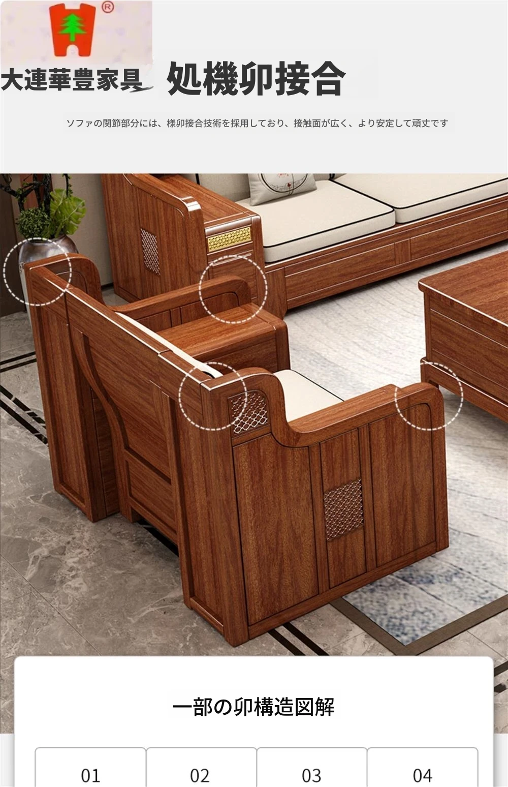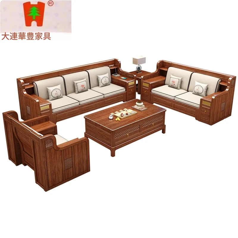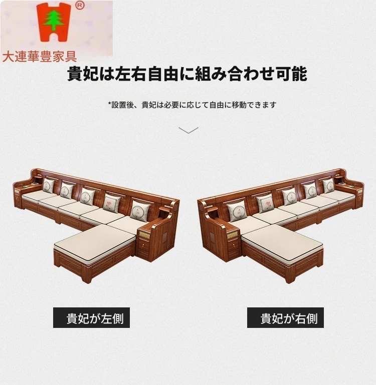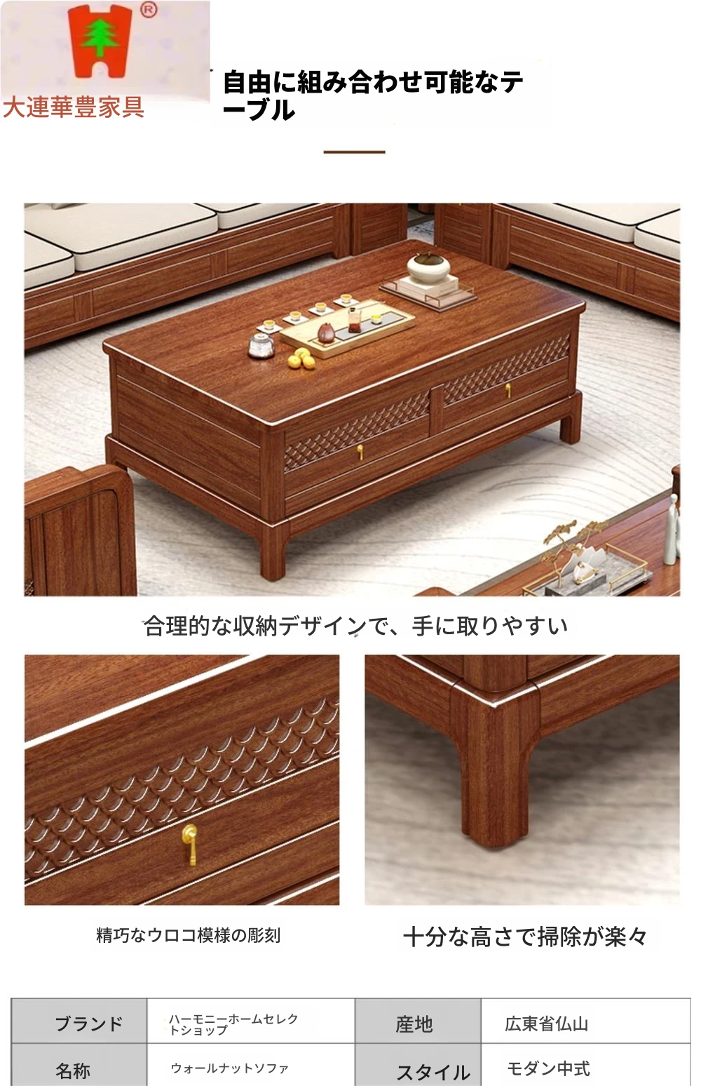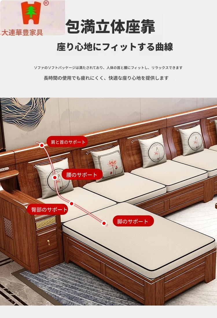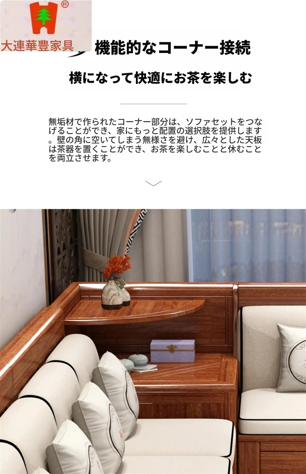 大連華豊公式フラッグシップストア 高級厚手ウォールナットソファ 2024年新作 全実木コンビネーション リビングルームに最適なスタイリッシュな選択!