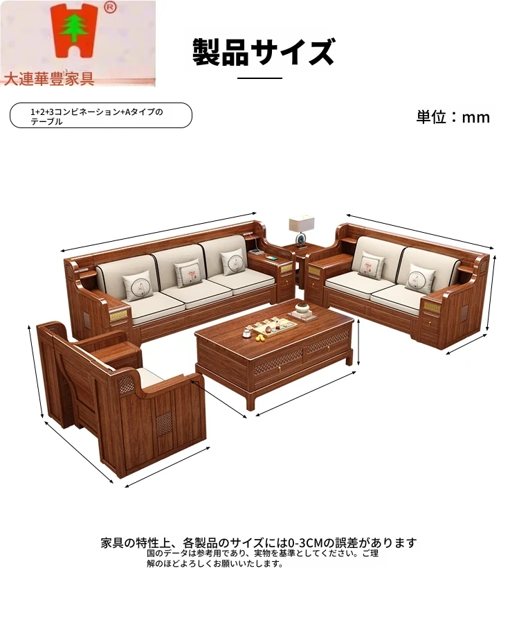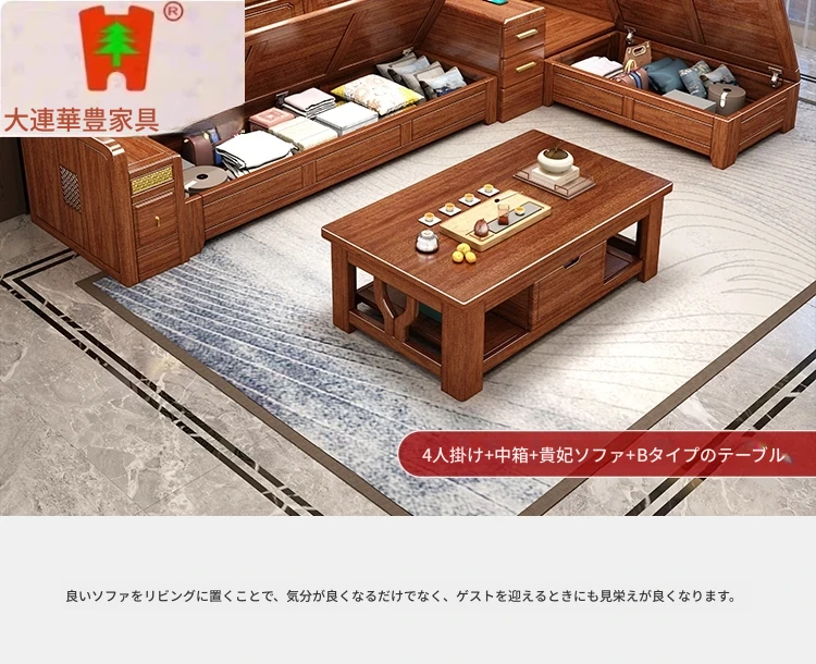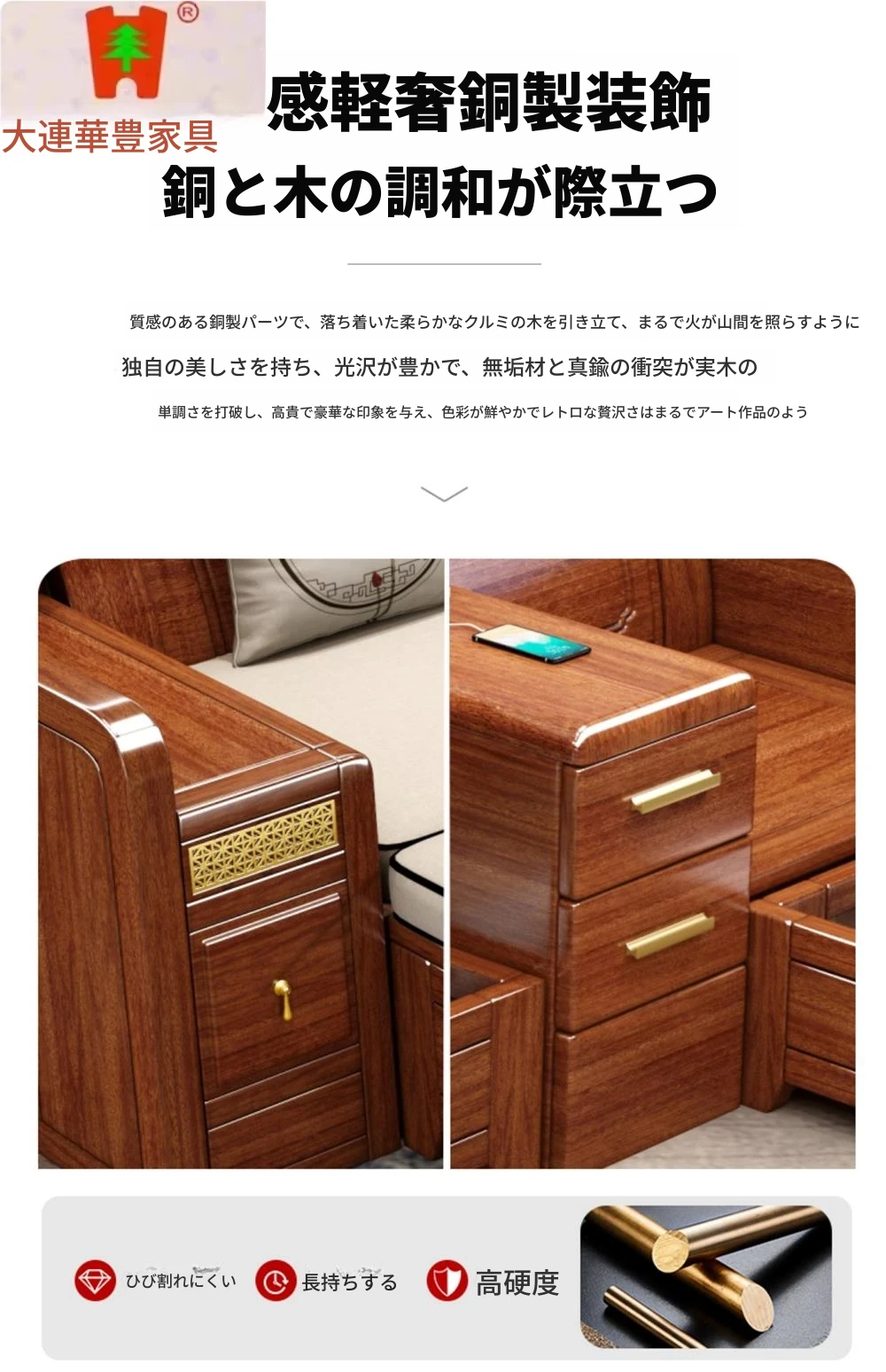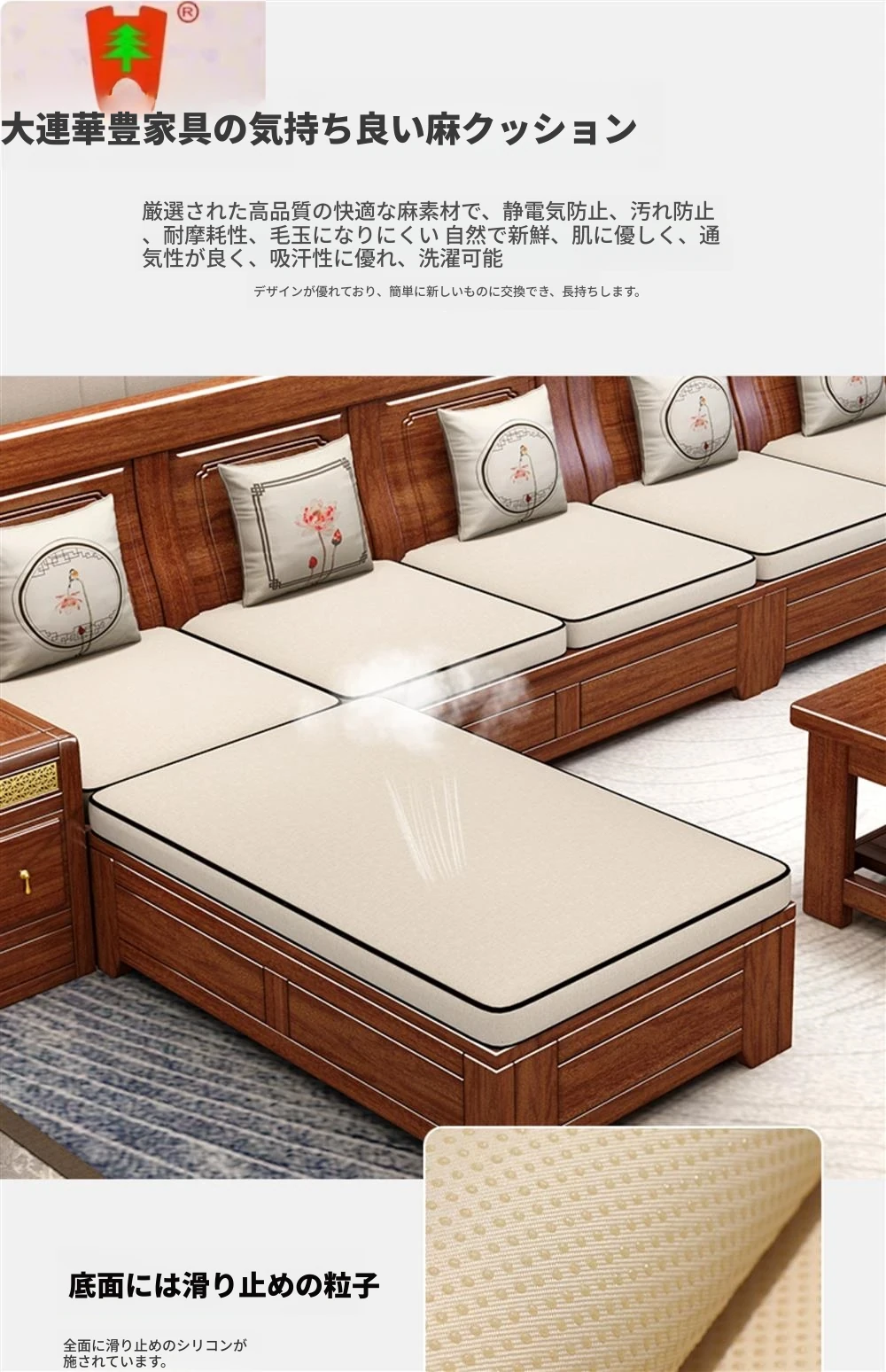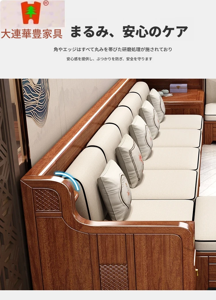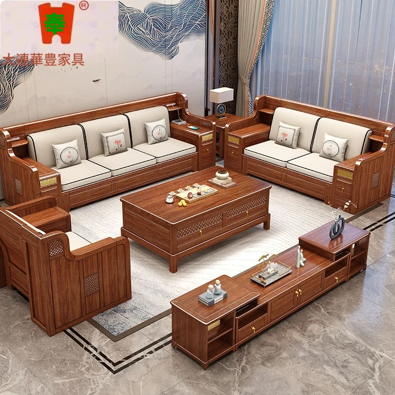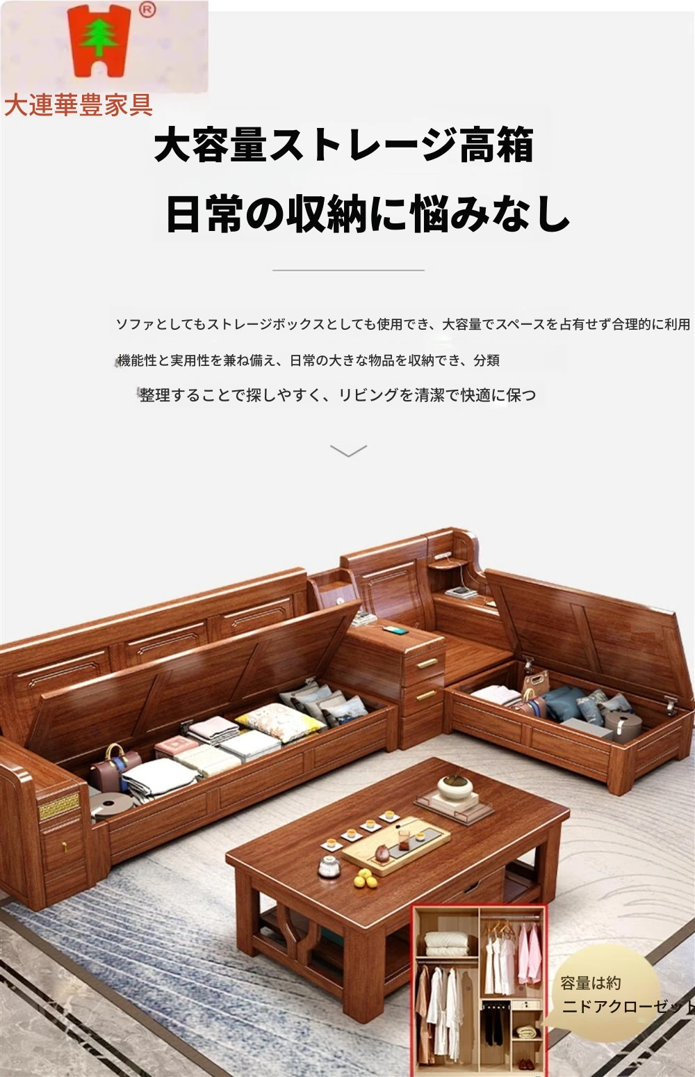 大連華豊公式フラッグシップストア 高級厚手ウォールナットソファ 2024年新作 全実木コンビネーション リビングルームに最適なスタイリッシュな選択!