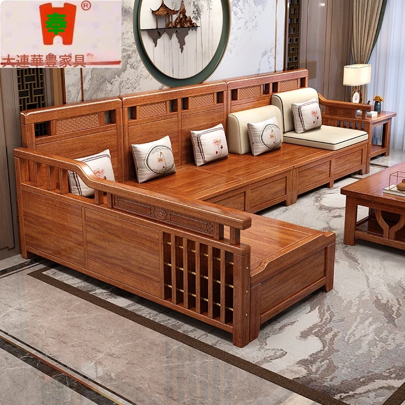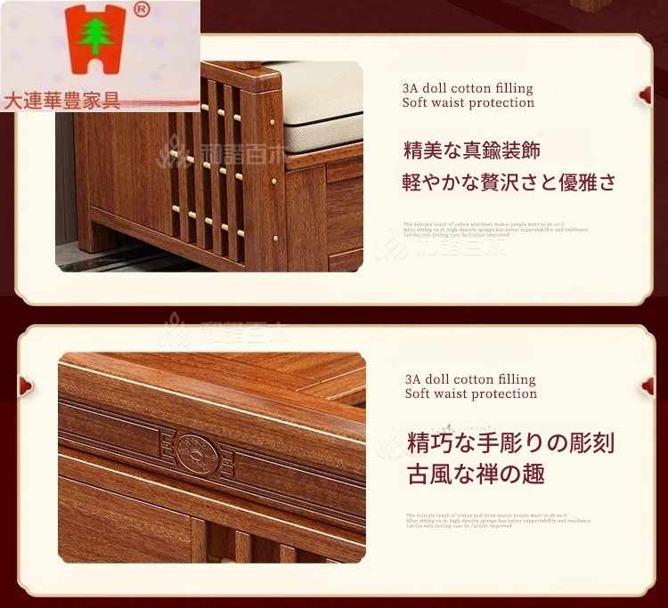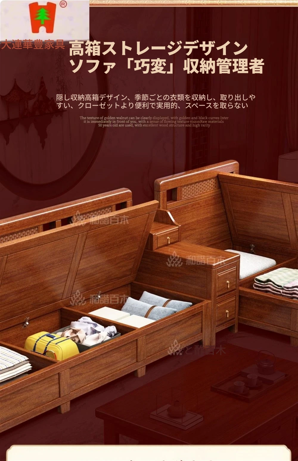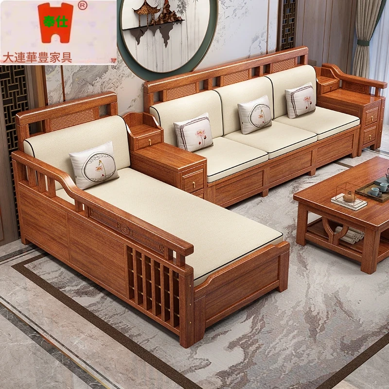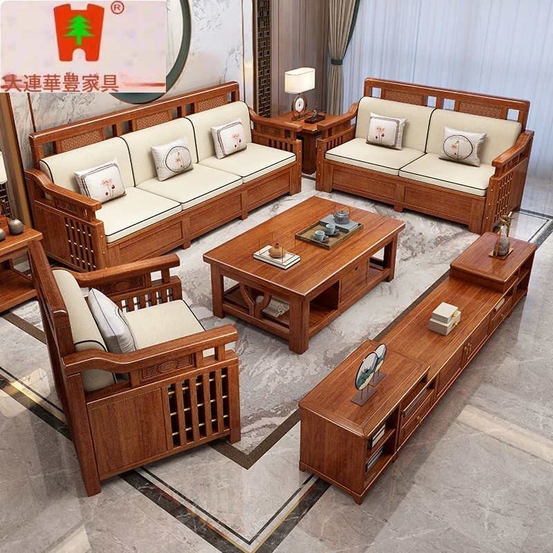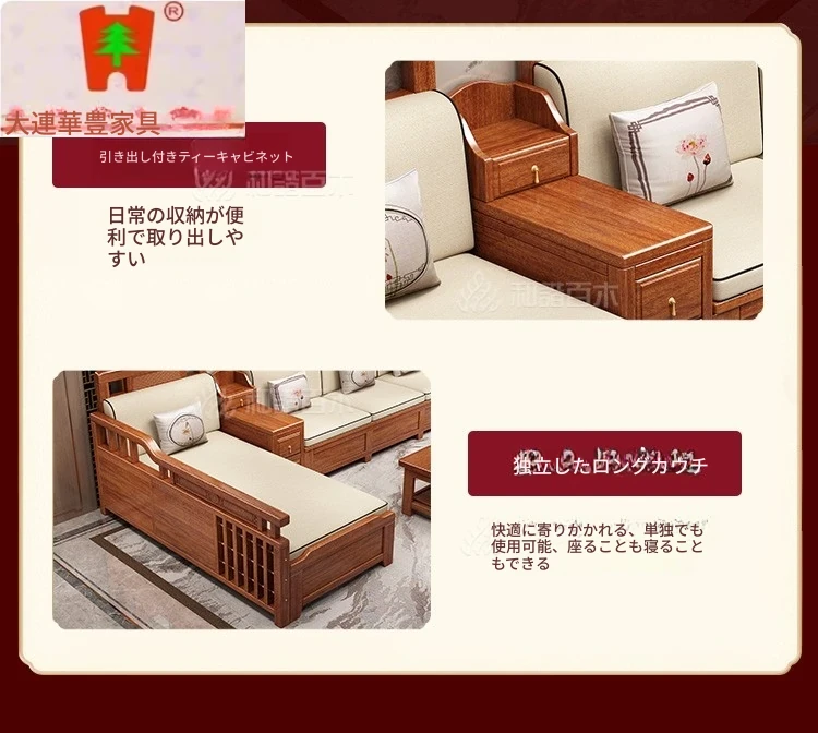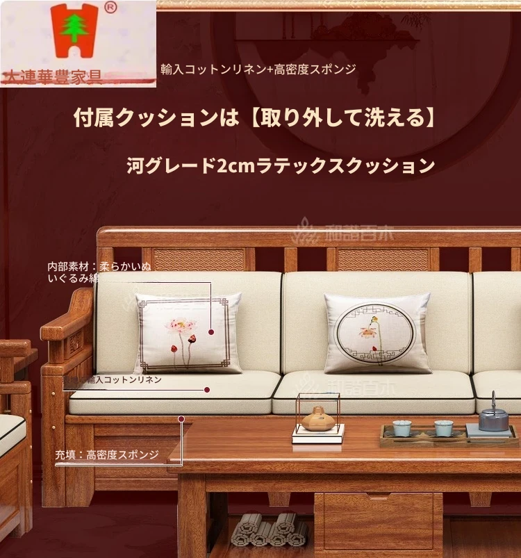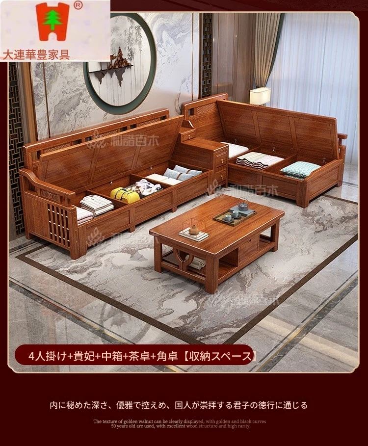 大連華豊公式フラッグシップ店のウォールナット無垢材ソファセット - モダンなリビングに最適!小型住宅にもフィットするシンプルでスタイリッシュな木製ソファ。快適さとデザインの両立を実現!