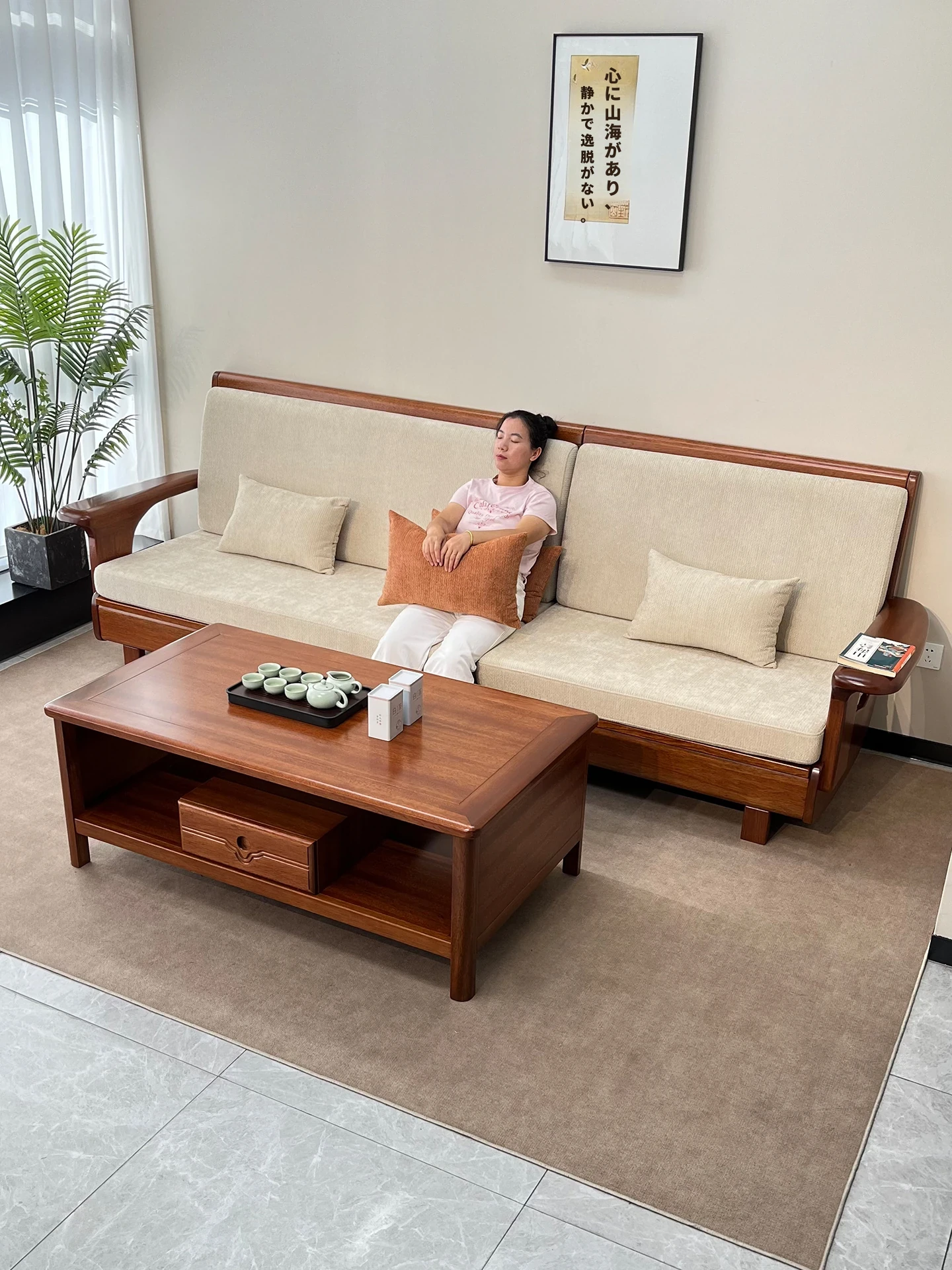 全実木の金花梨木製ソファセット - 小型リビングに最適!冬も夏も使える貴妃スタイル、シンプルで洗練された中華風家具。あなたの空間に温かみとエレガンスを加えます!