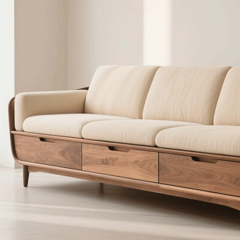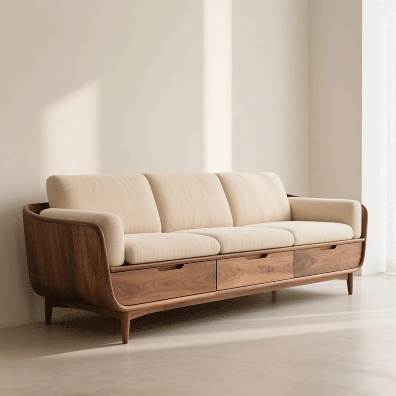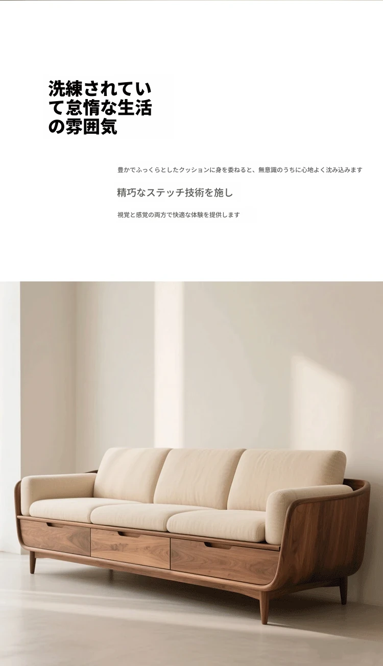 ラグジュアリー感溢れるブラックウォールナットとホワイトアッシュの新中式禅スタイルソファ。高級本革使用、オフィスやホテル、民宿に最適な実用的で洗練された家具です。
