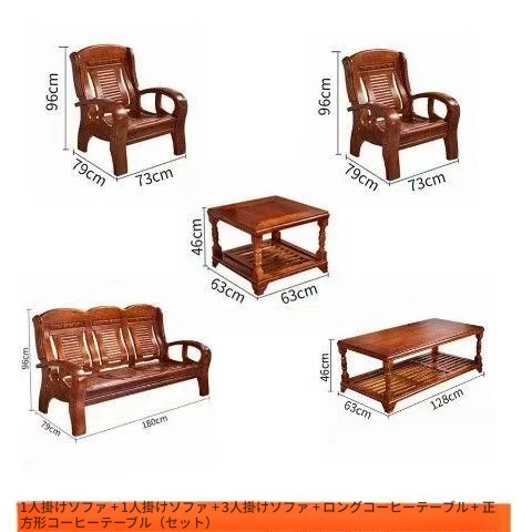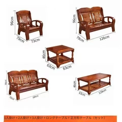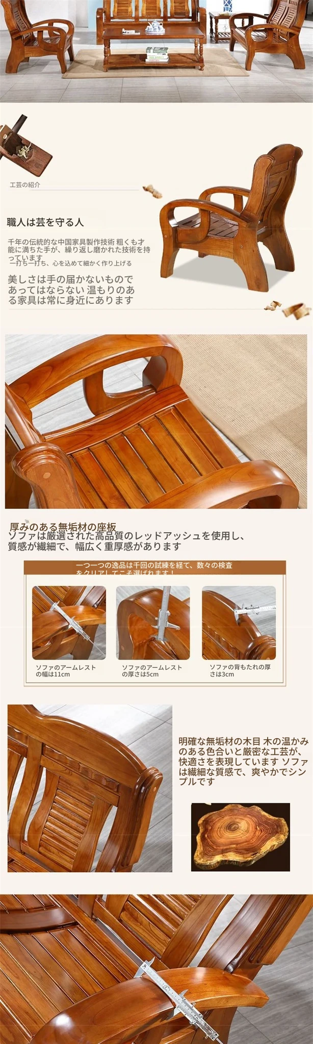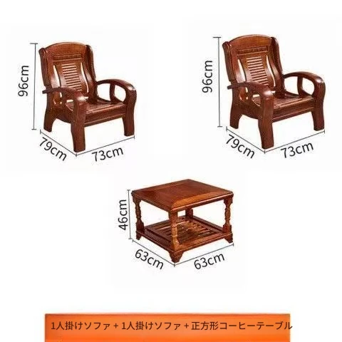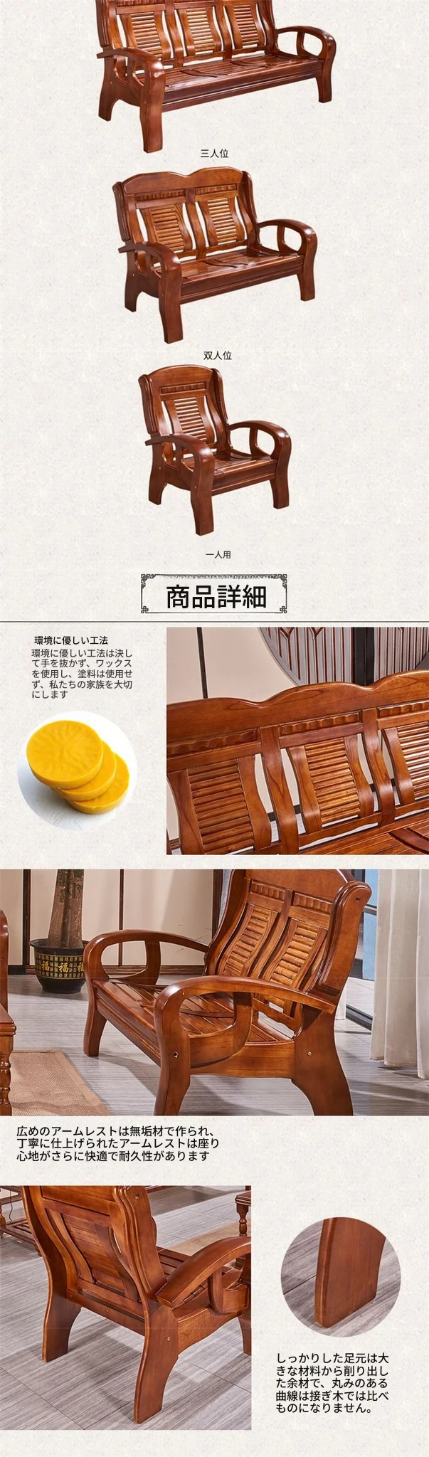 中華風シンプルな全木製ソファセット - 小型リビングに最適!一人用・三人用の組み合わせも可能な長椅子型オフィスチェア。おしゃれで快適な空間を演出します!