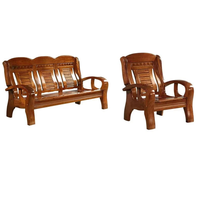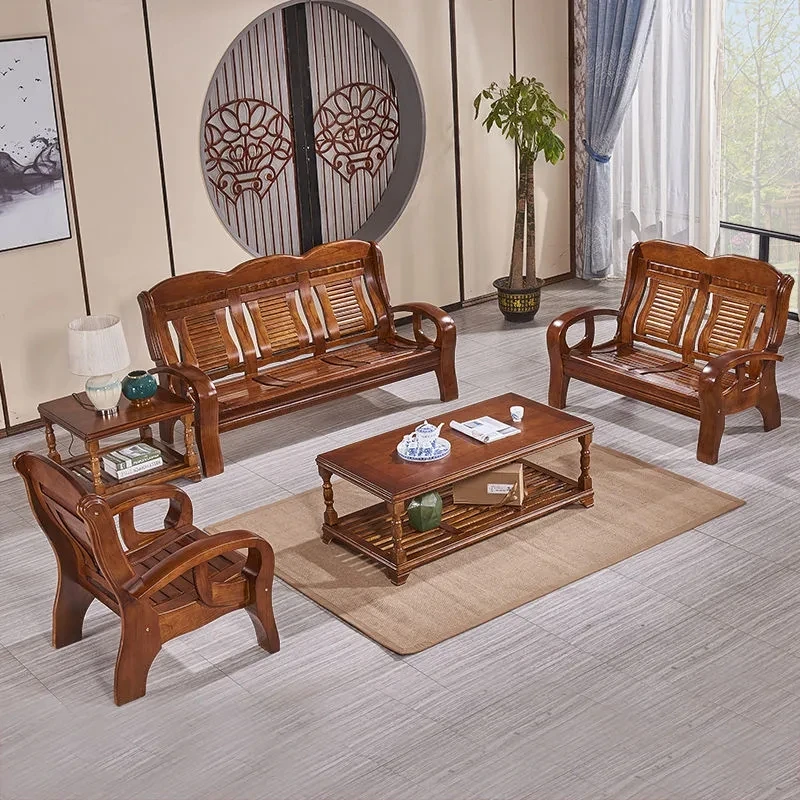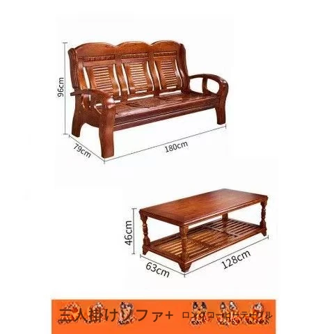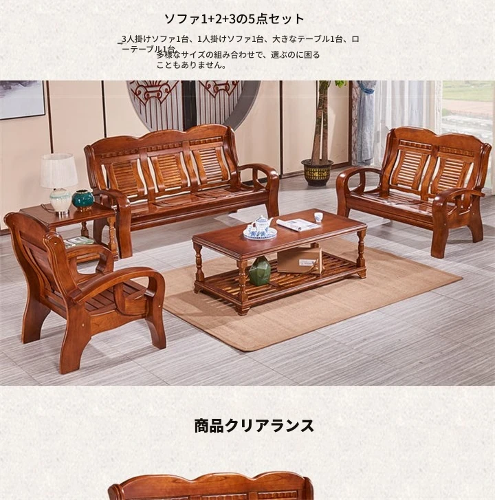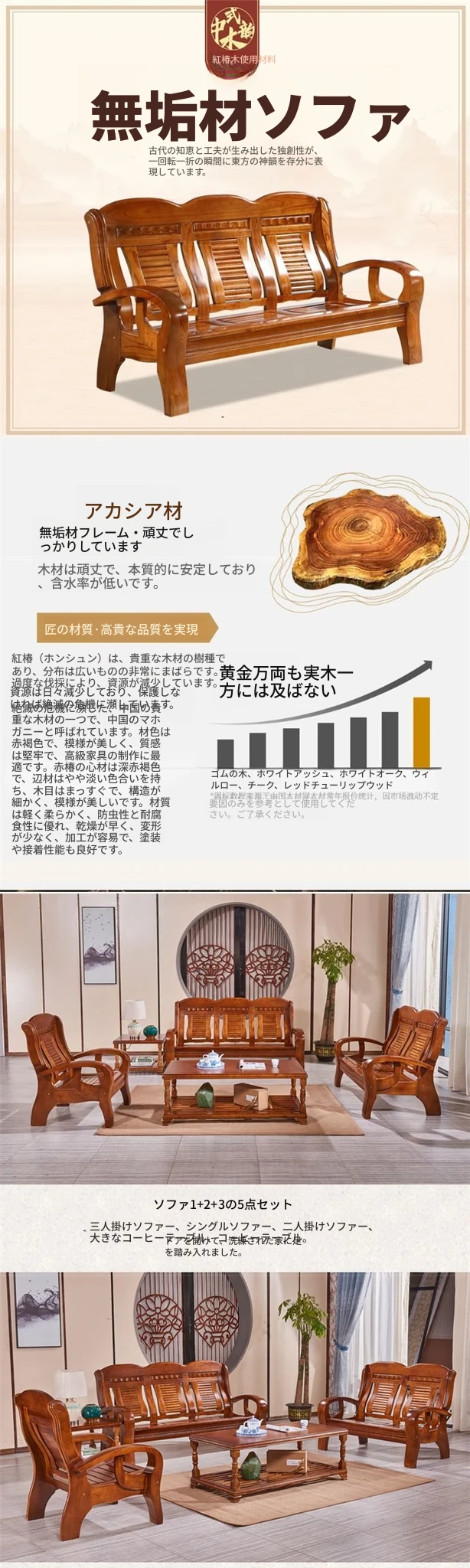 中華風シンプルな全木製ソファセット - 小型リビングに最適!一人用・三人用の組み合わせも可能な長椅子型オフィスチェア。おしゃれで快適な空間を演出します!