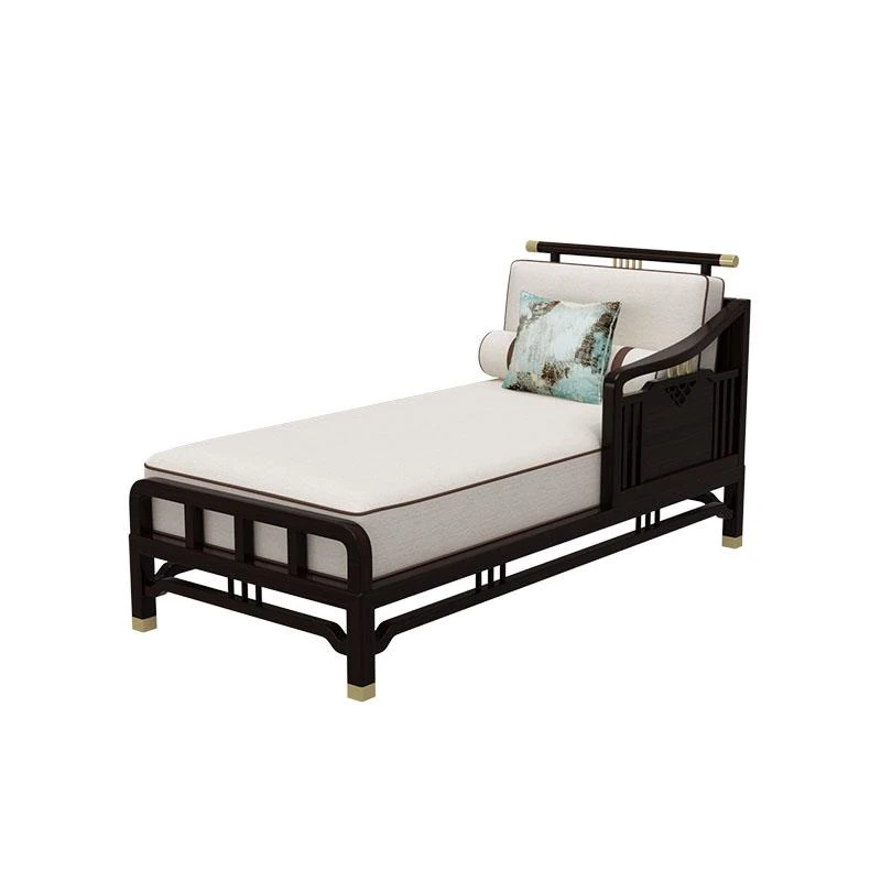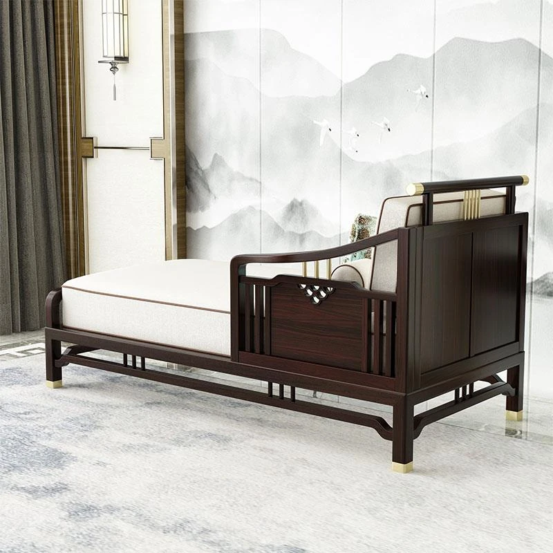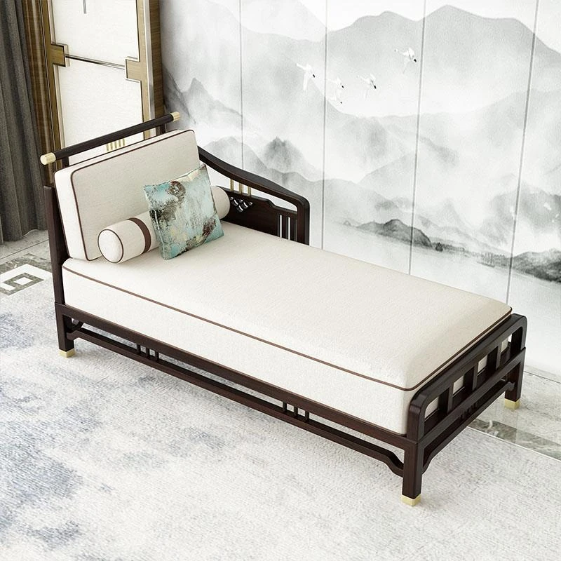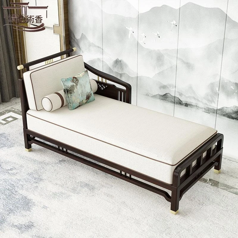 新中式高級実木製貴妃椅子 - 禅の美学を感じるリラックスソファ!ウーキン材使用の洗練されたデザイン、角部屋にもぴったりな布製サロン椅子。心地よいひとときをお届けします!
