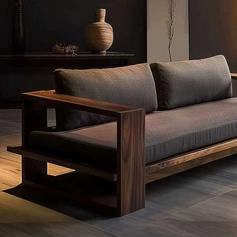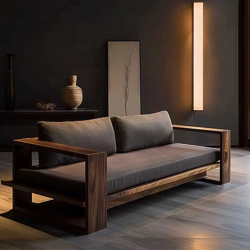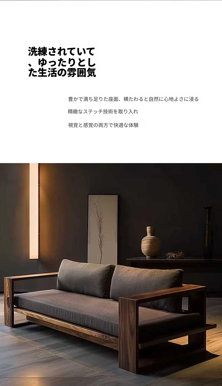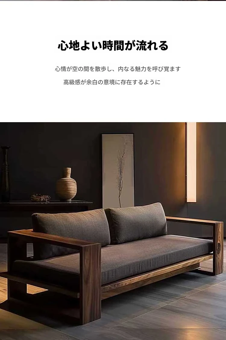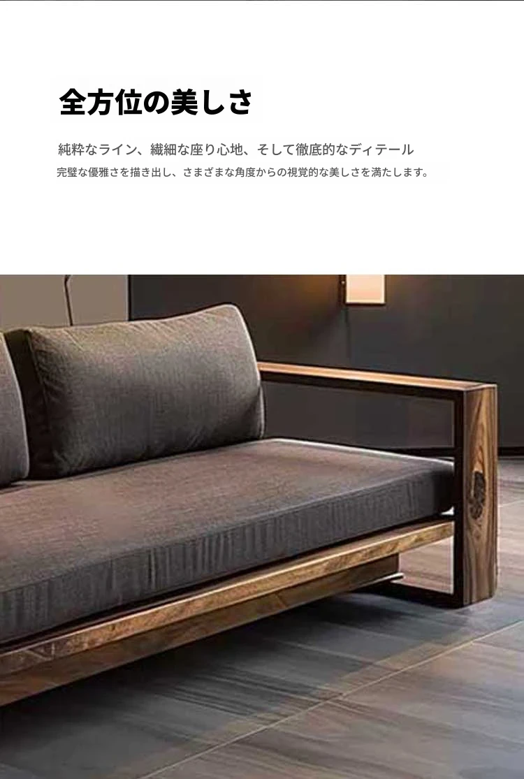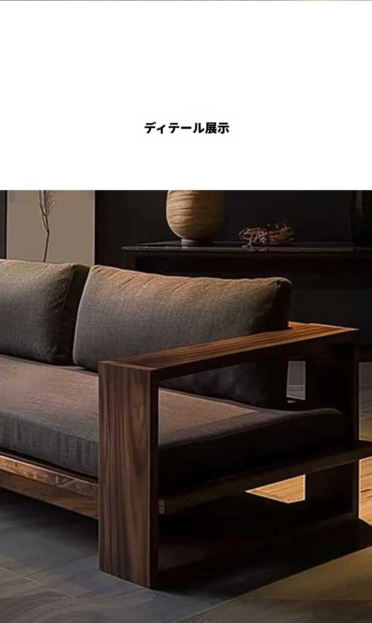 新中式スタイルの高級ブラックウォールナットとホワイトアッシュのストレートソファ - 本革製、禅の雰囲気を演出する民宿・ホテル・会所に最適な家具です。