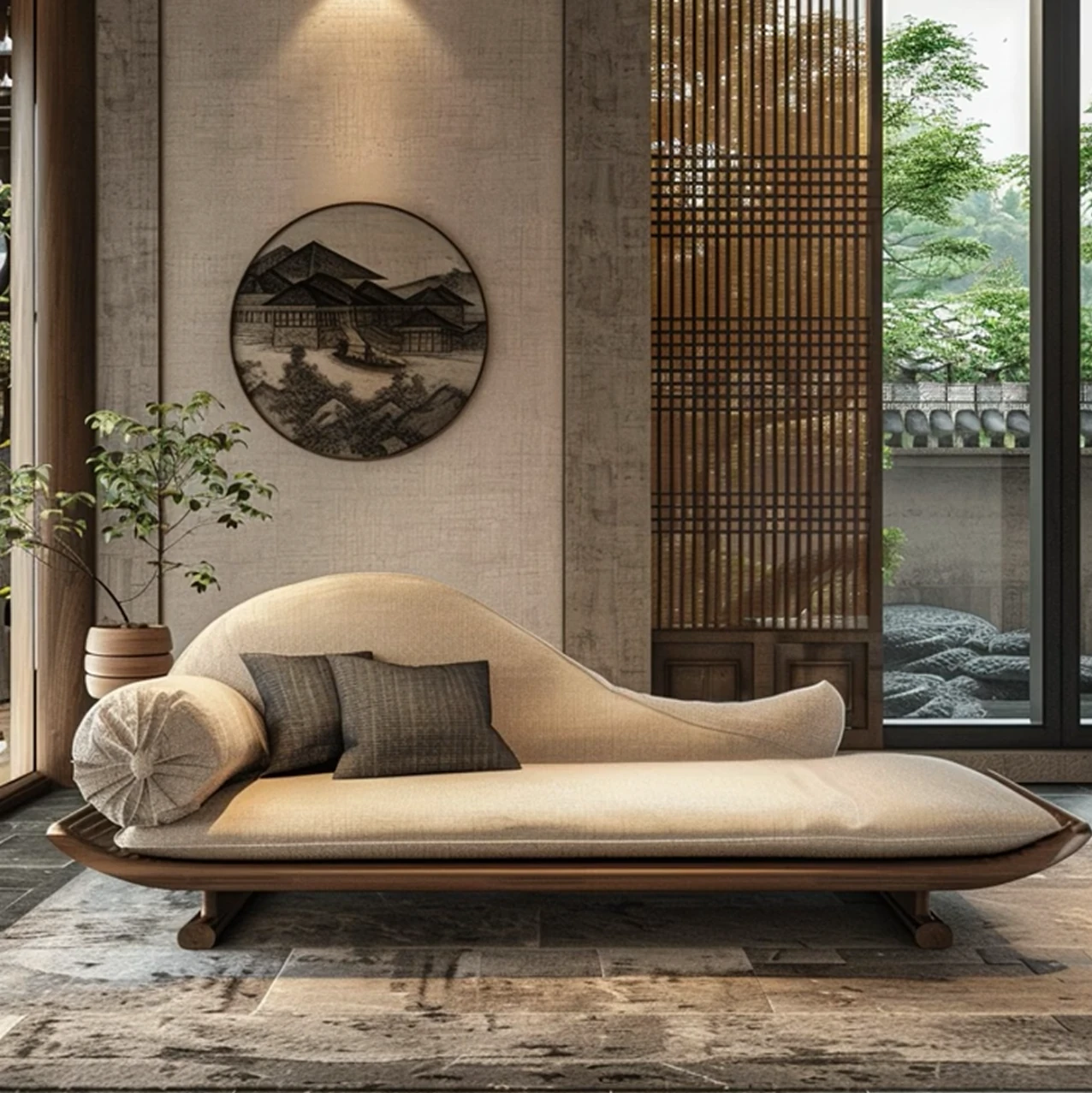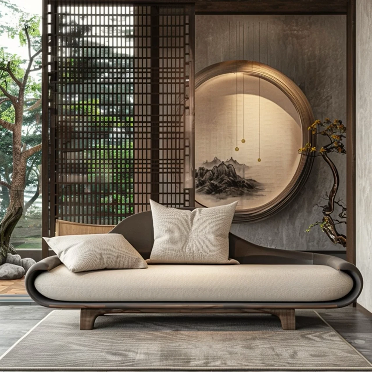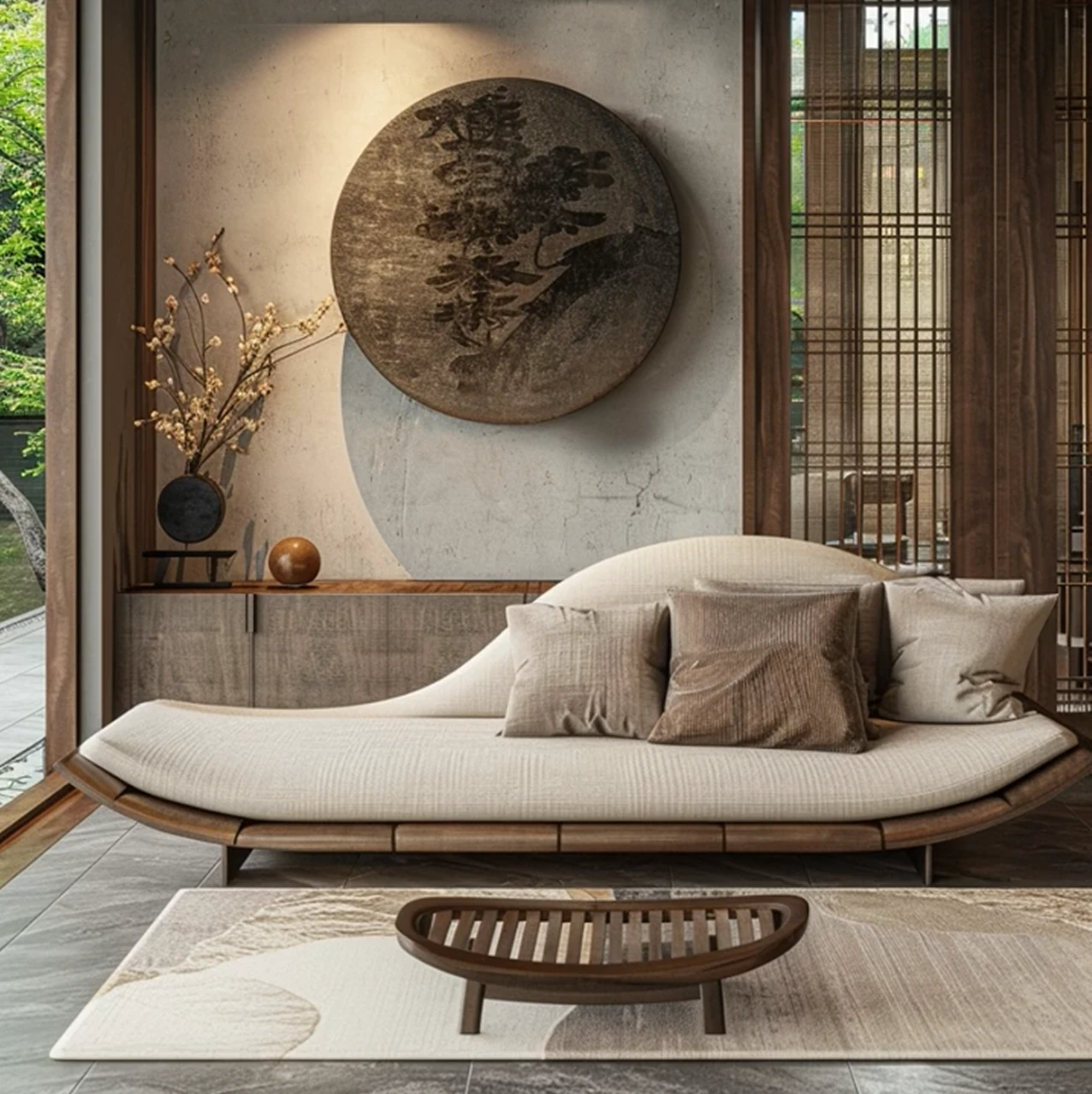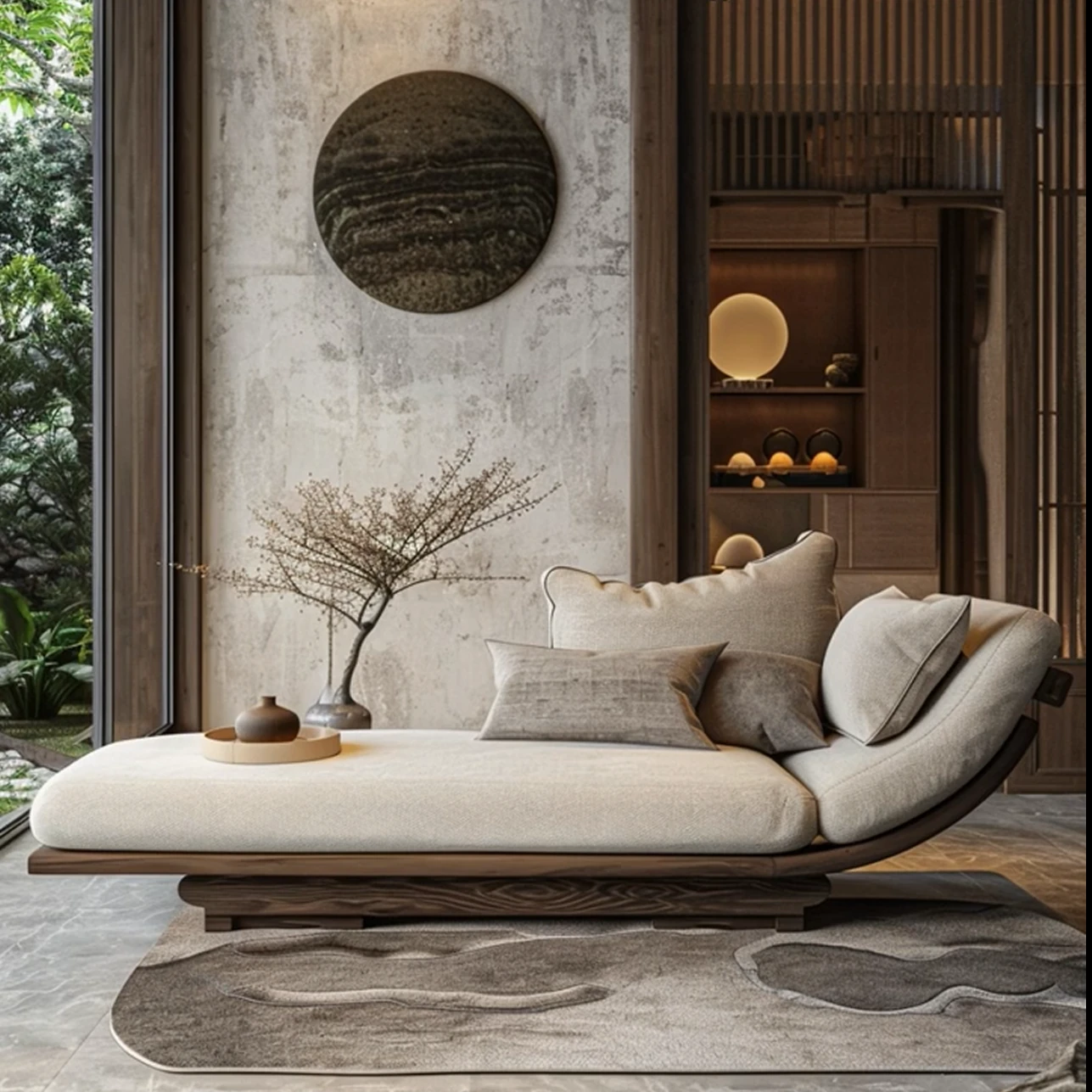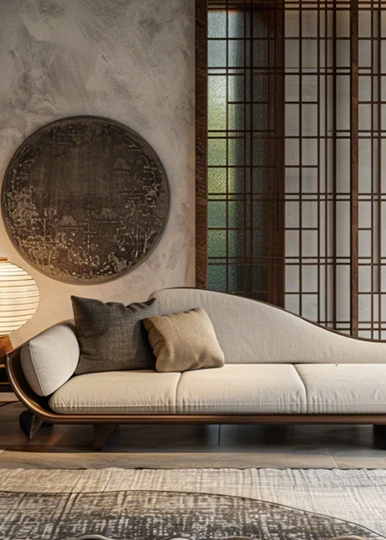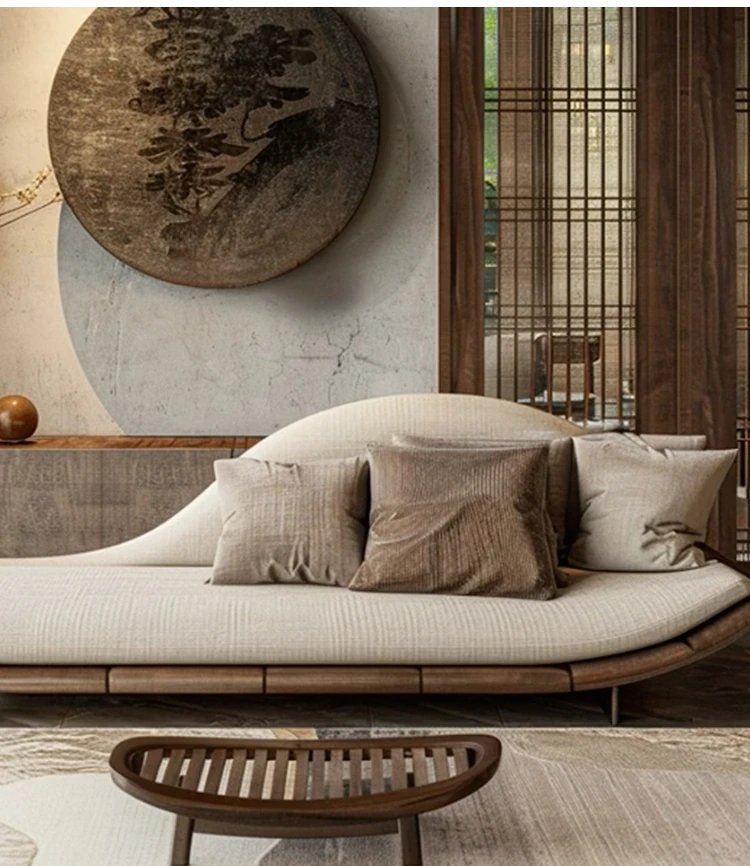新中式デザインのイタリアンウォールナット製ソファ・カウチ、侘び寂びの風合いを持つローハンベッド。現代的でシンプルな民宿やホテルに最適なアイテム。心地よいひとときを演出します。