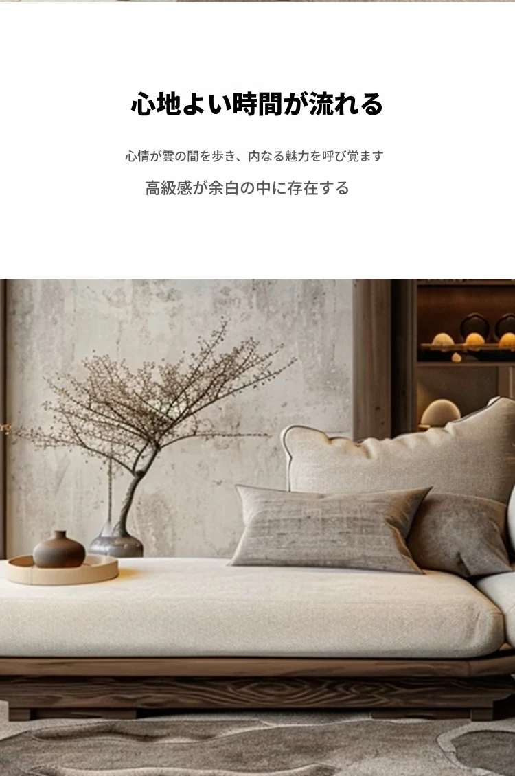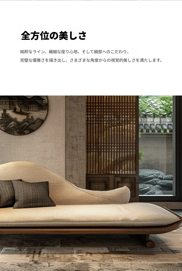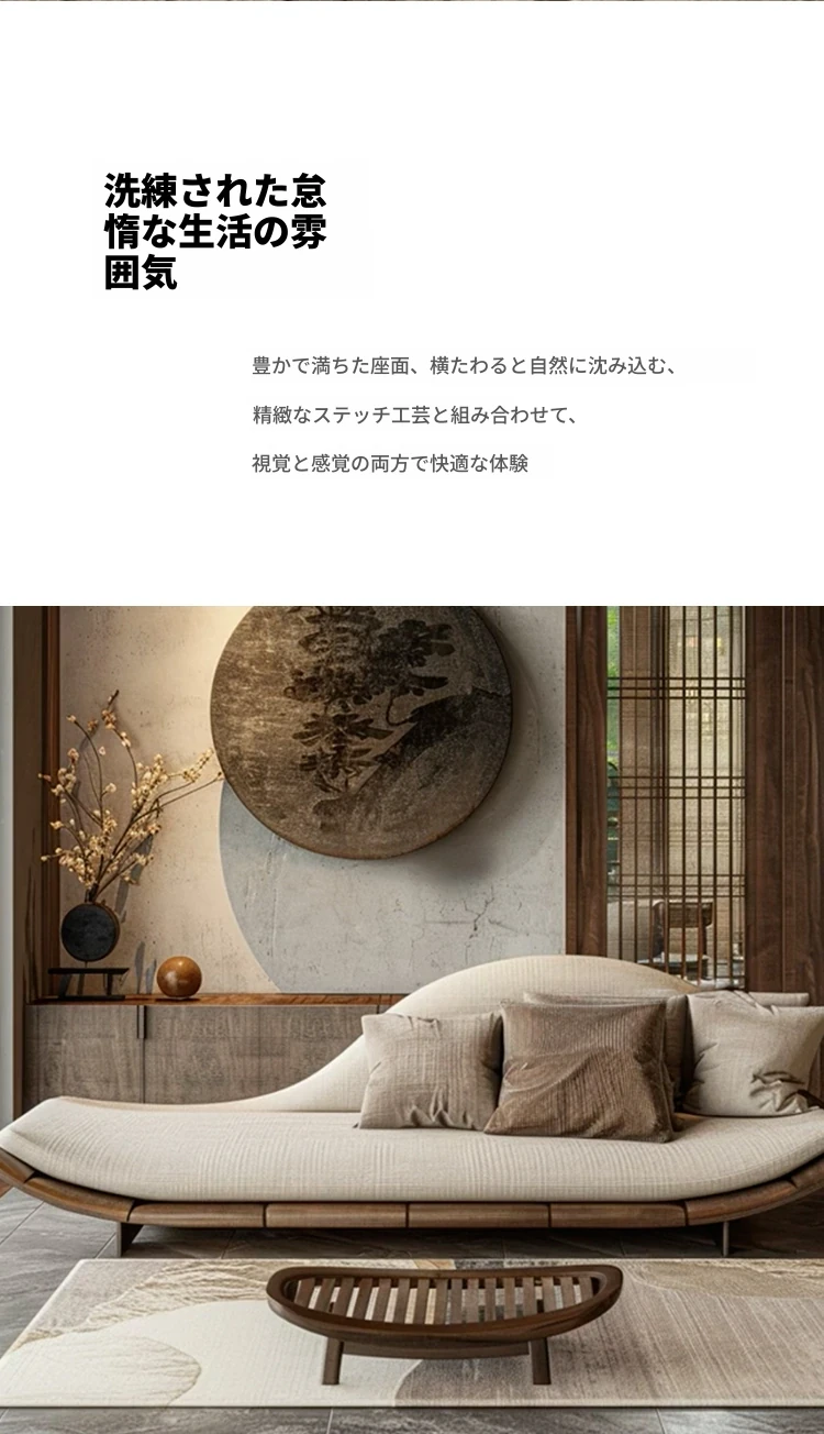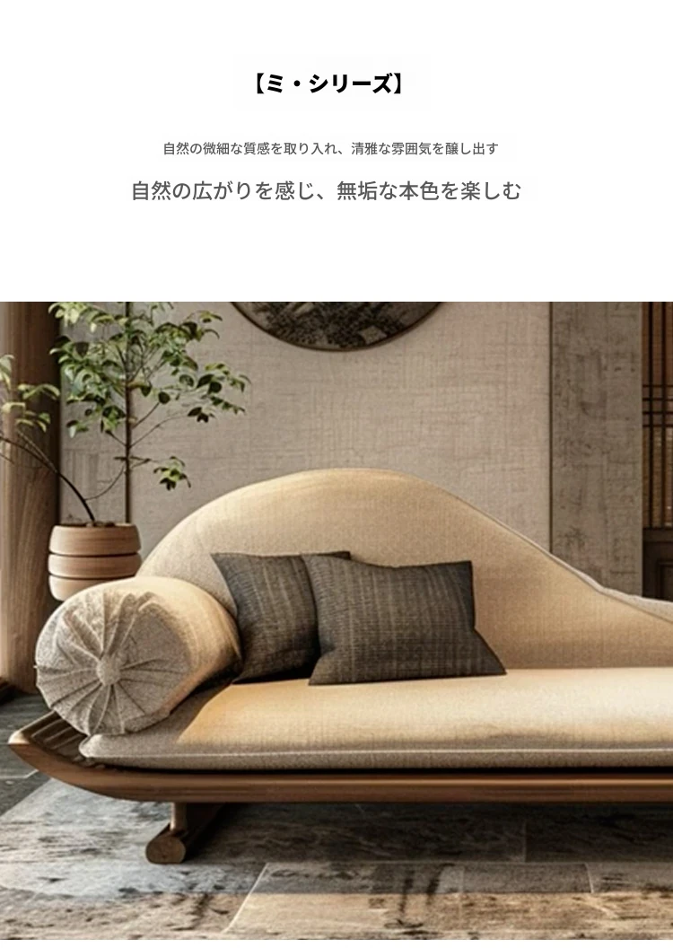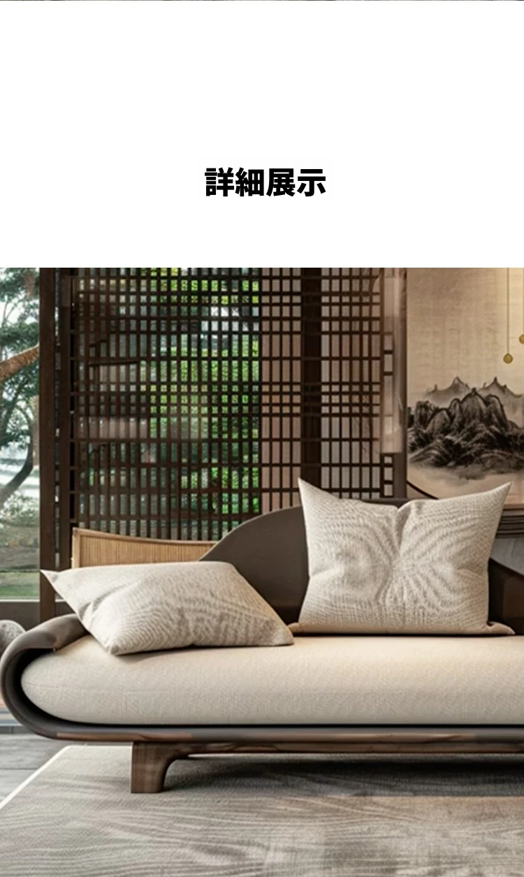 新中式ウッド調のウッディーソファー - ヴィラのリビングに最適!モダンでシンプル、冬夏使える大サイズの禅スタイルソファー。快適なひとときをお届けします。