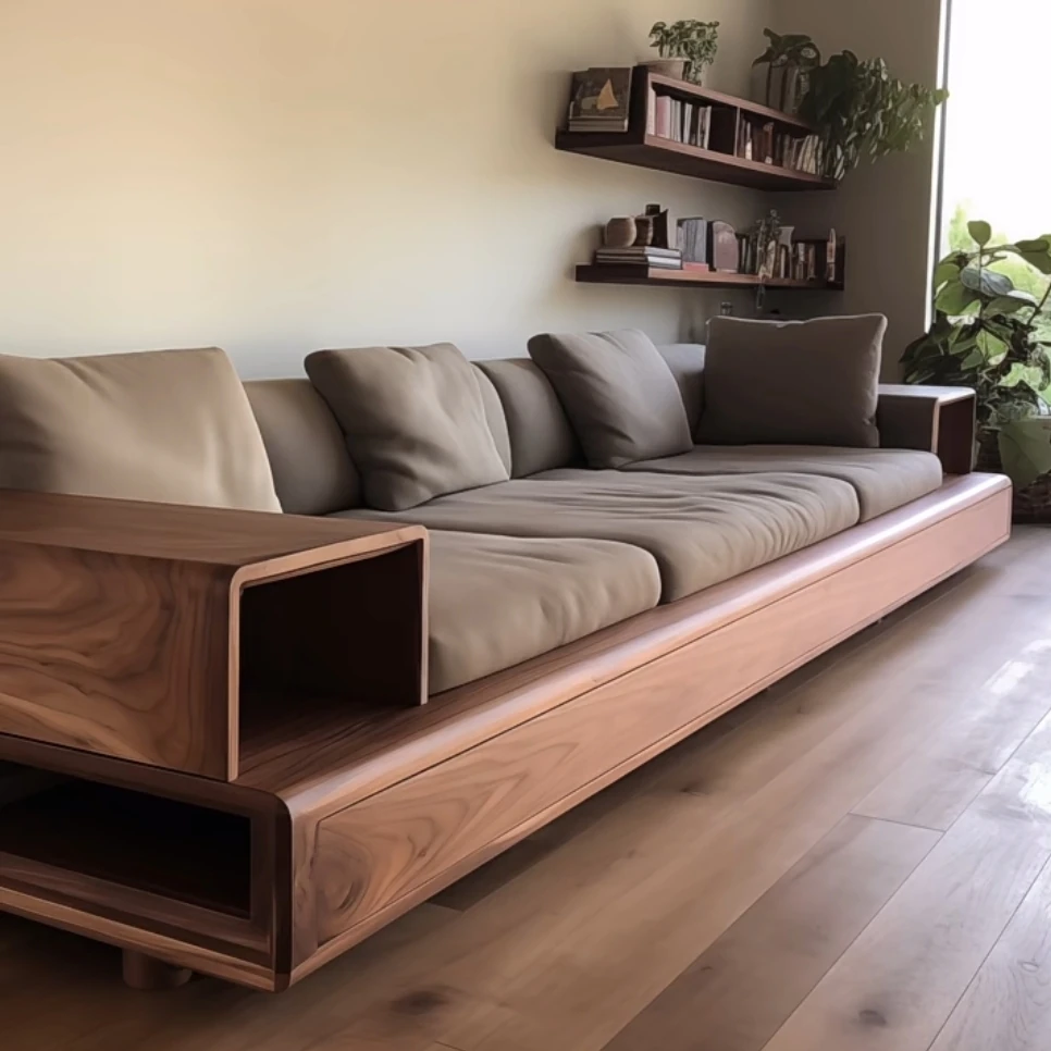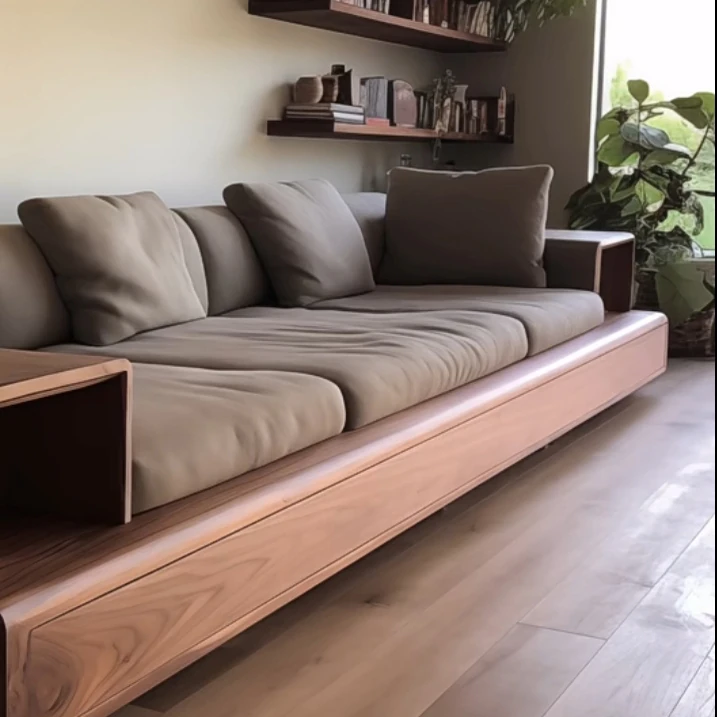 新中式デザインの北米産ブラックウォールナット無垢材ソファ - 高級感あふれるライトラグジュアリー、3〜4人用、大型リビングに最適な直線美ソファ!