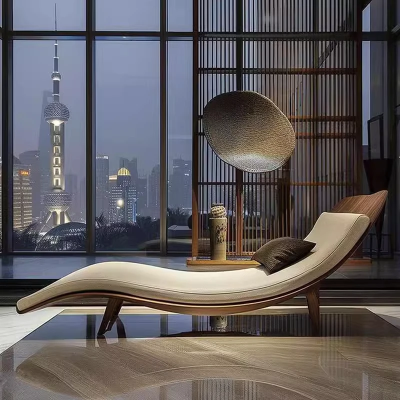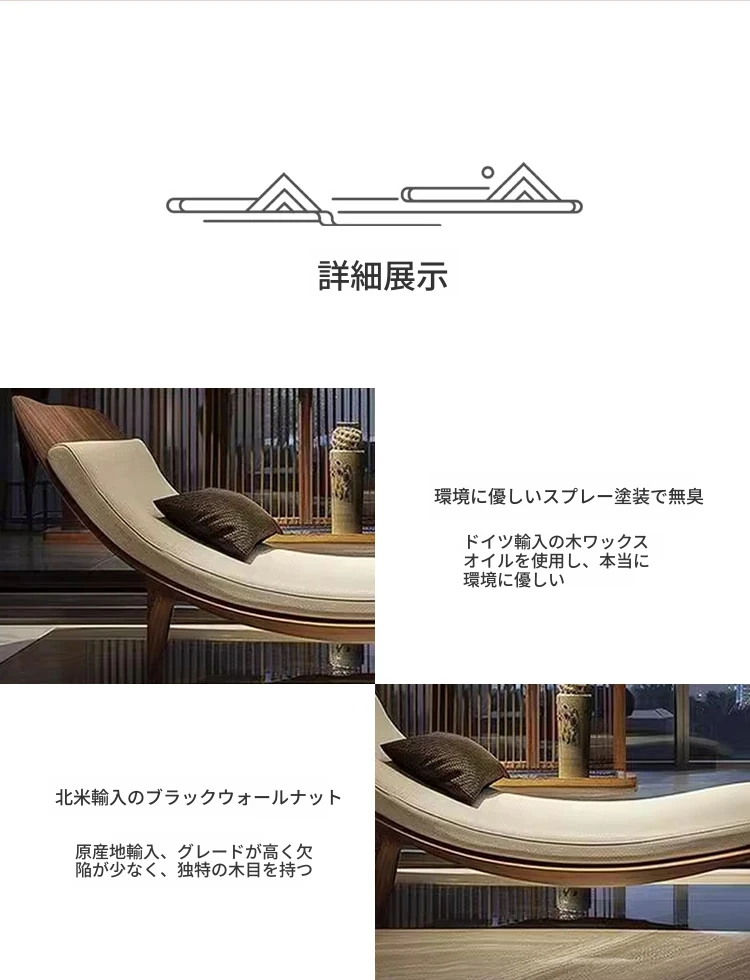 新中式スタイルのブラックウォールナットとホワイトアッシュの禅意あふれる無垢材製の貴妃椅子。リビングにぴったりな軽奢で高級感溢れるリラックス家具。民宿やホテルにも最適!