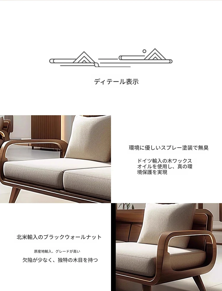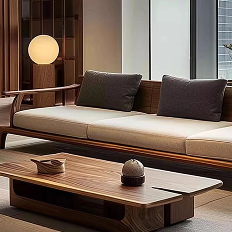 2025年新作!新中式胡桃木実木ソファ - モダンでラグジュアリーなシンプルデザイン、リビングにぴったりのストレートソファ。高品質な実木家具で、心地よいひとときをお届けします。
