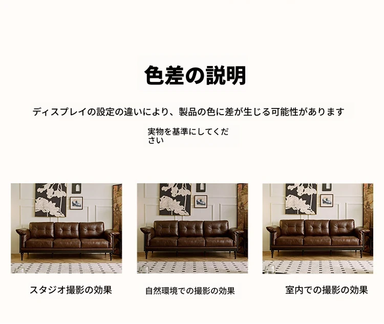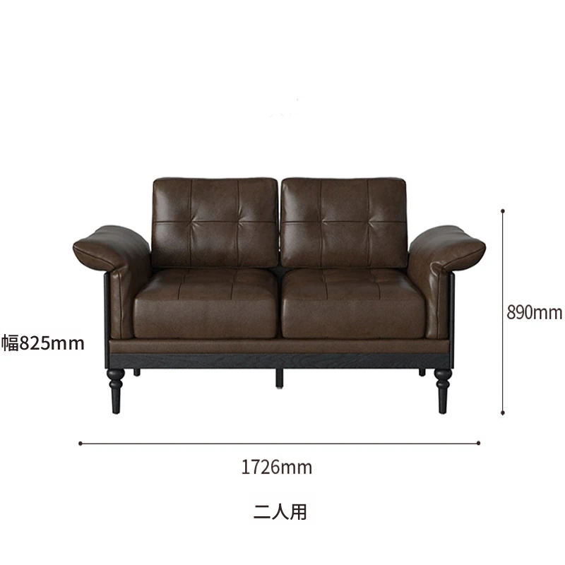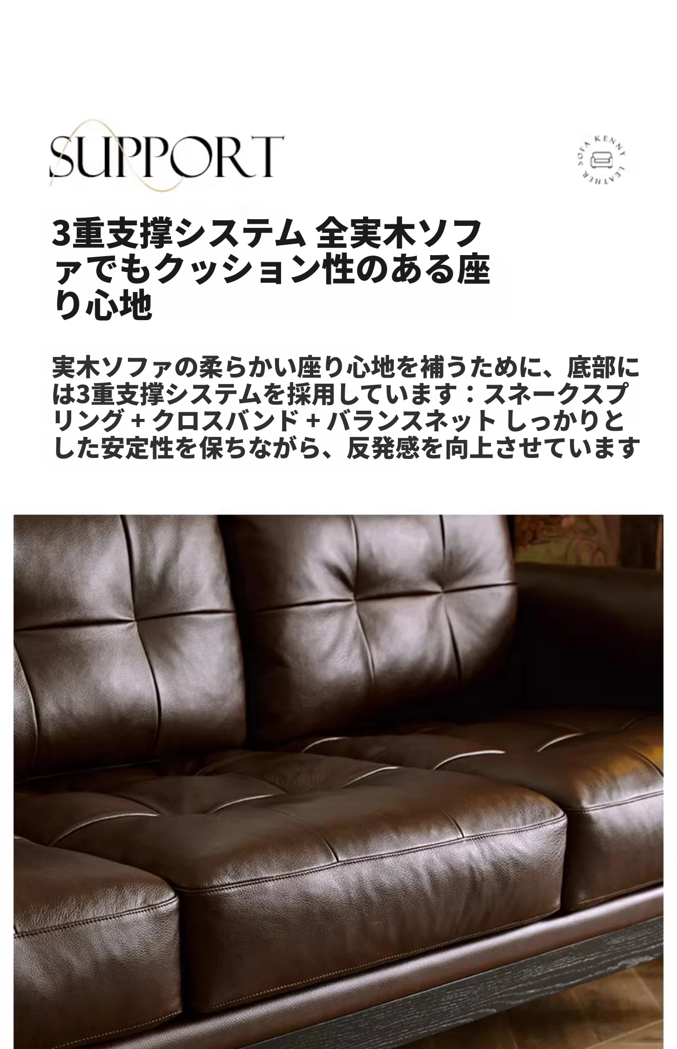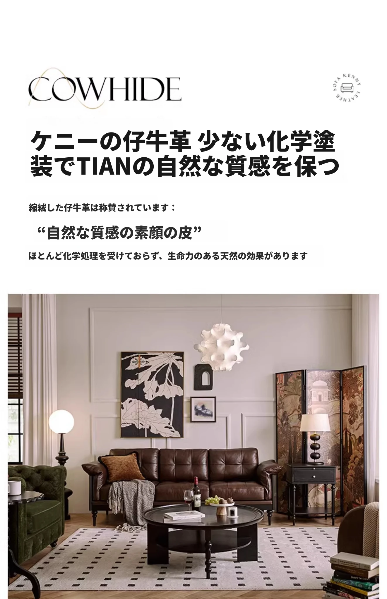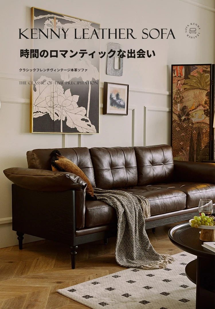 イタリアンミニマリズムの本革ソファ - 高級感溢れるレトロデザインで、大小様々なリビングに最適!モダンな空間を引き立てる上質な牛革使用。あなたの客間をスタイリッシュに演出します!