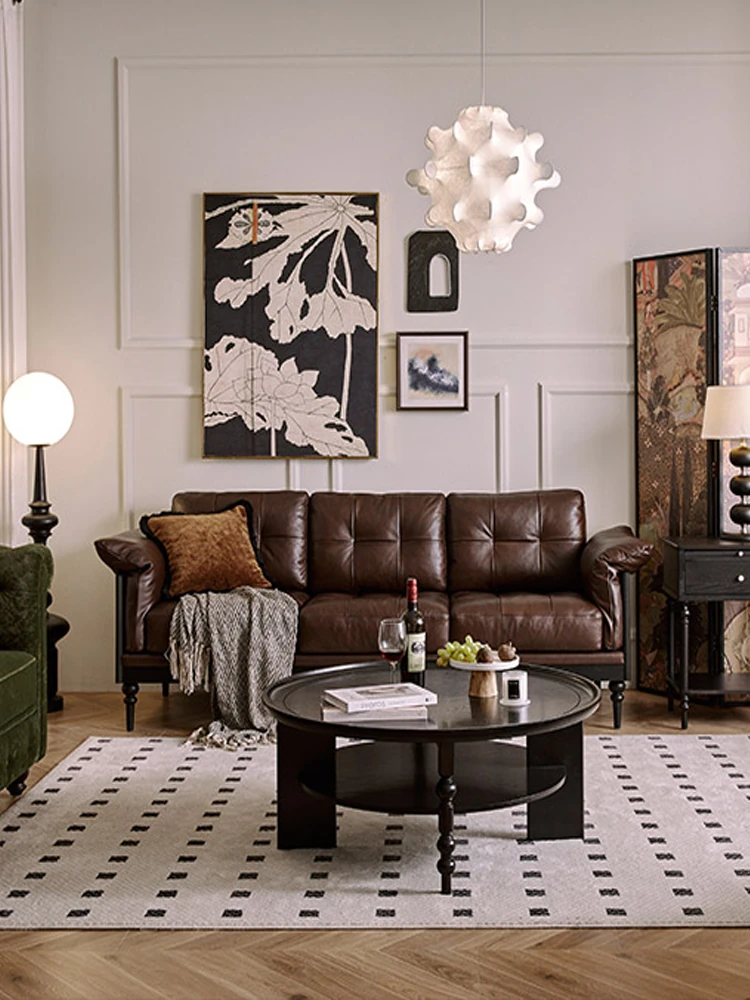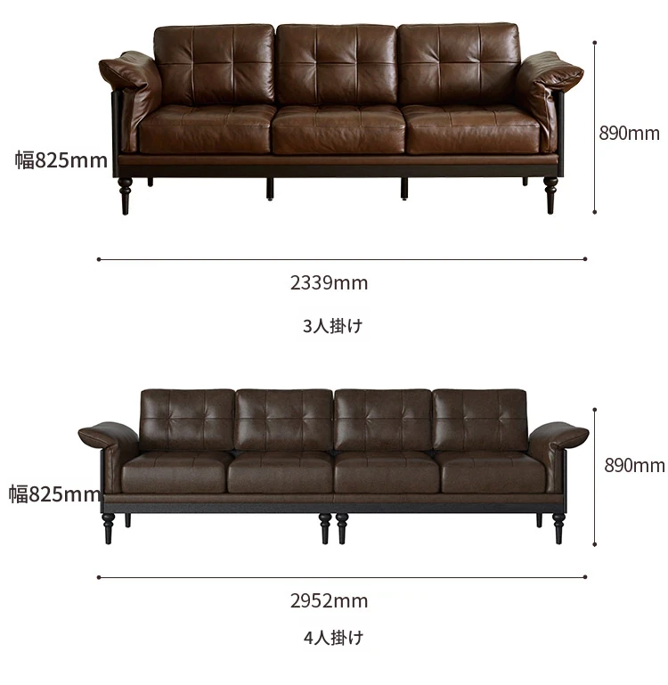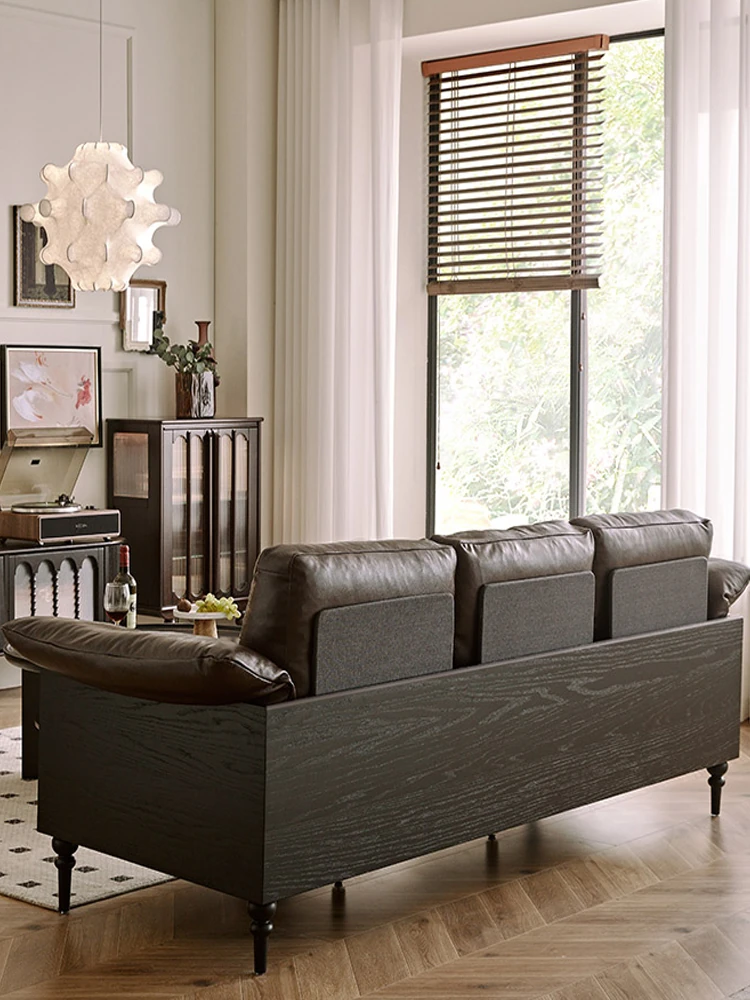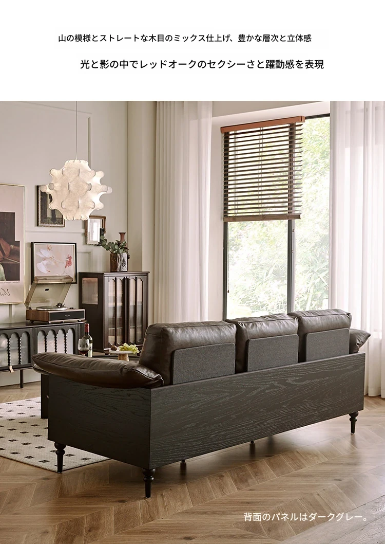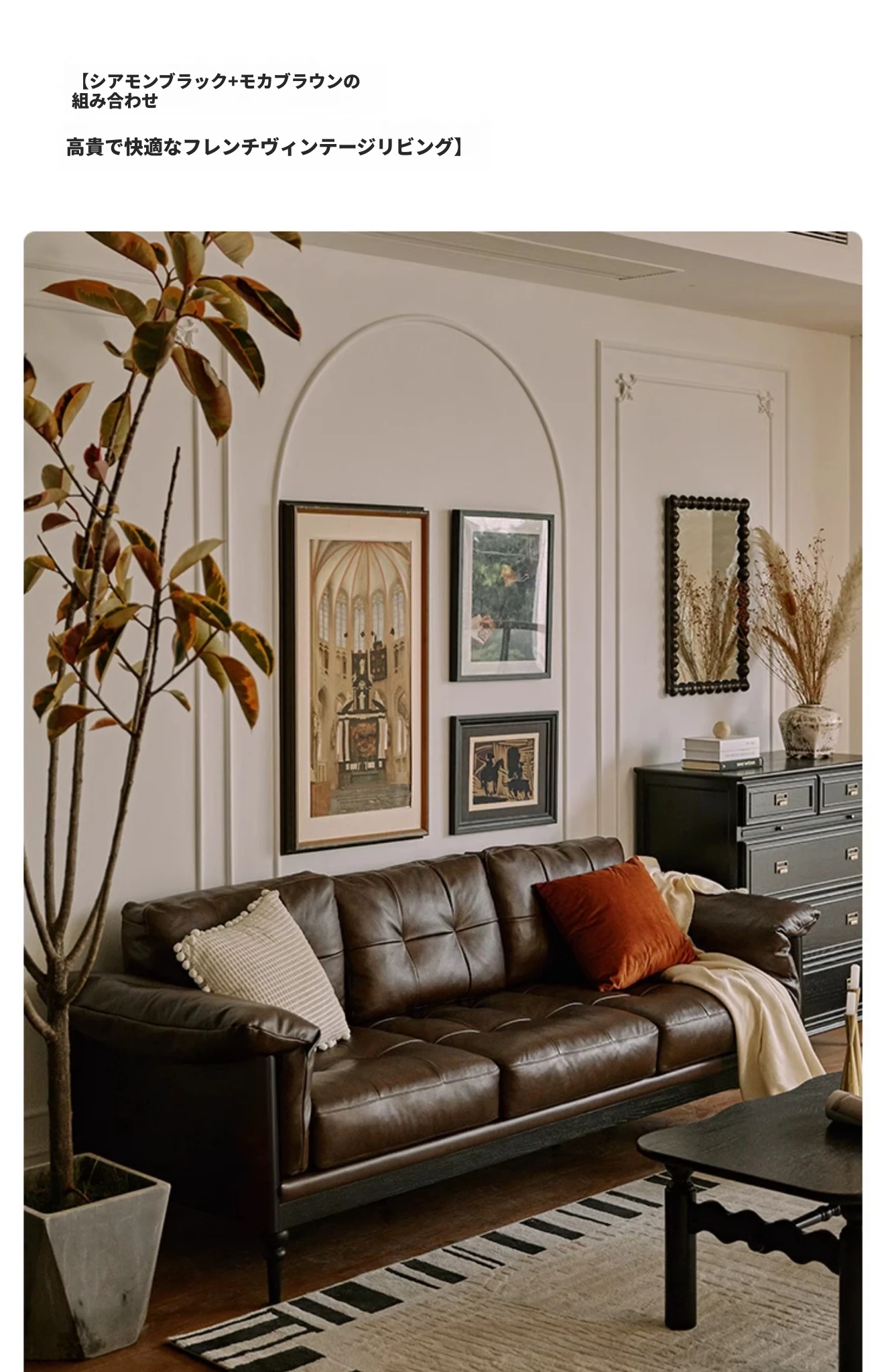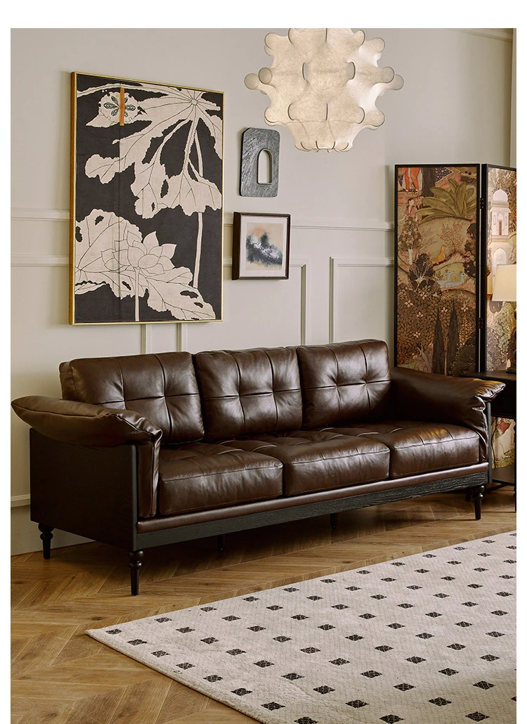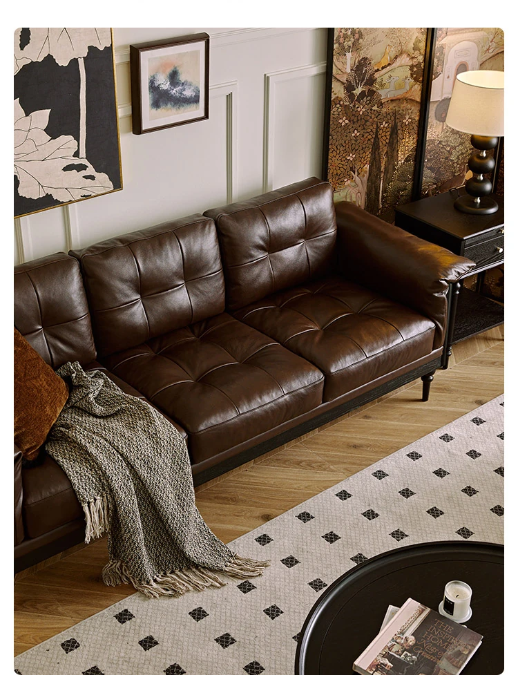 2025年新作!北米産ブラックウォールナットのヴィンテージ風ストレートソファ。高級感あふれる本革使用で、モダンな軽奢スタイルを実現。中小型のリビングにぴったりなデザイン!