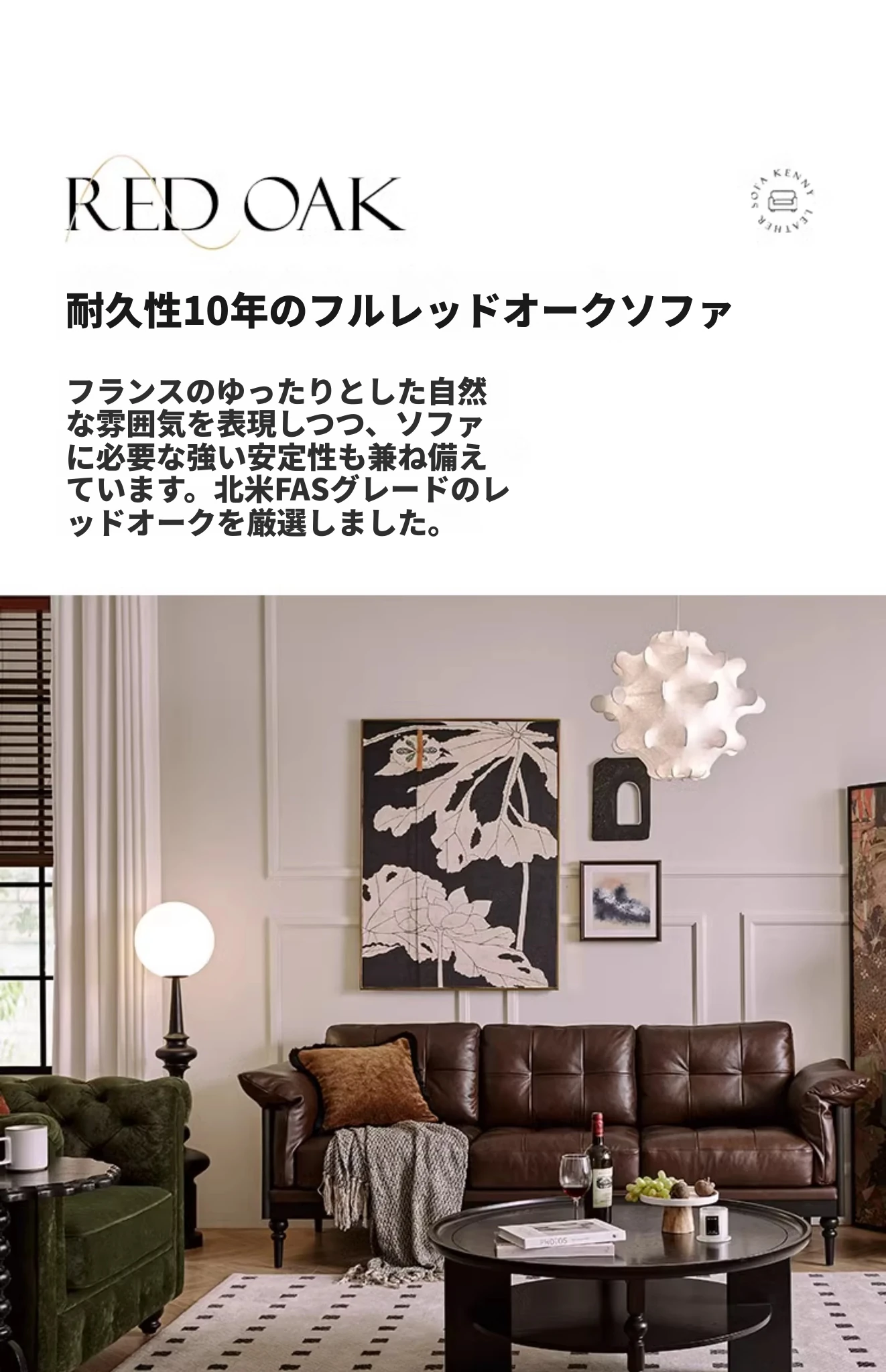 フレンチアンティーク本革ソファー - アメリカンビンテージスタイル、2025年新作、リビングにぴったりな3人掛け、上質なトップグレインレザー使用!豪華な木製フレームで、優雅さと快適さを兼ね備えた一品。