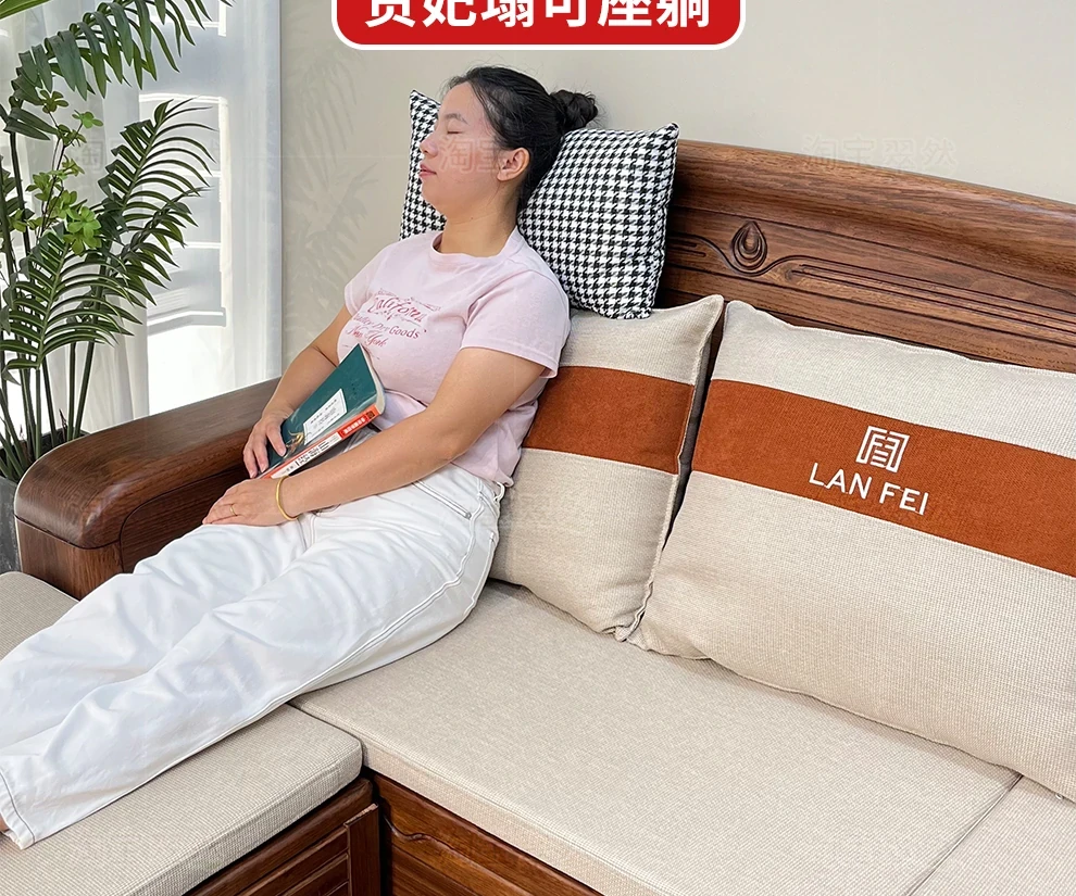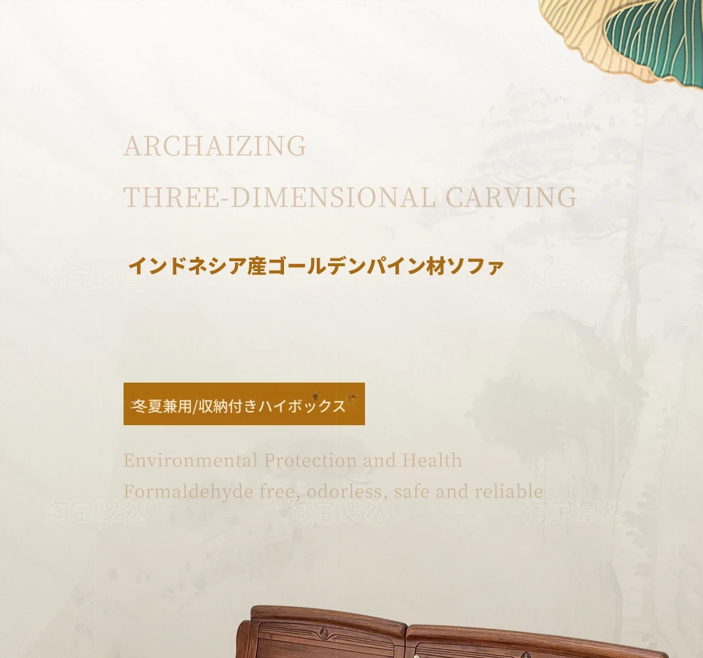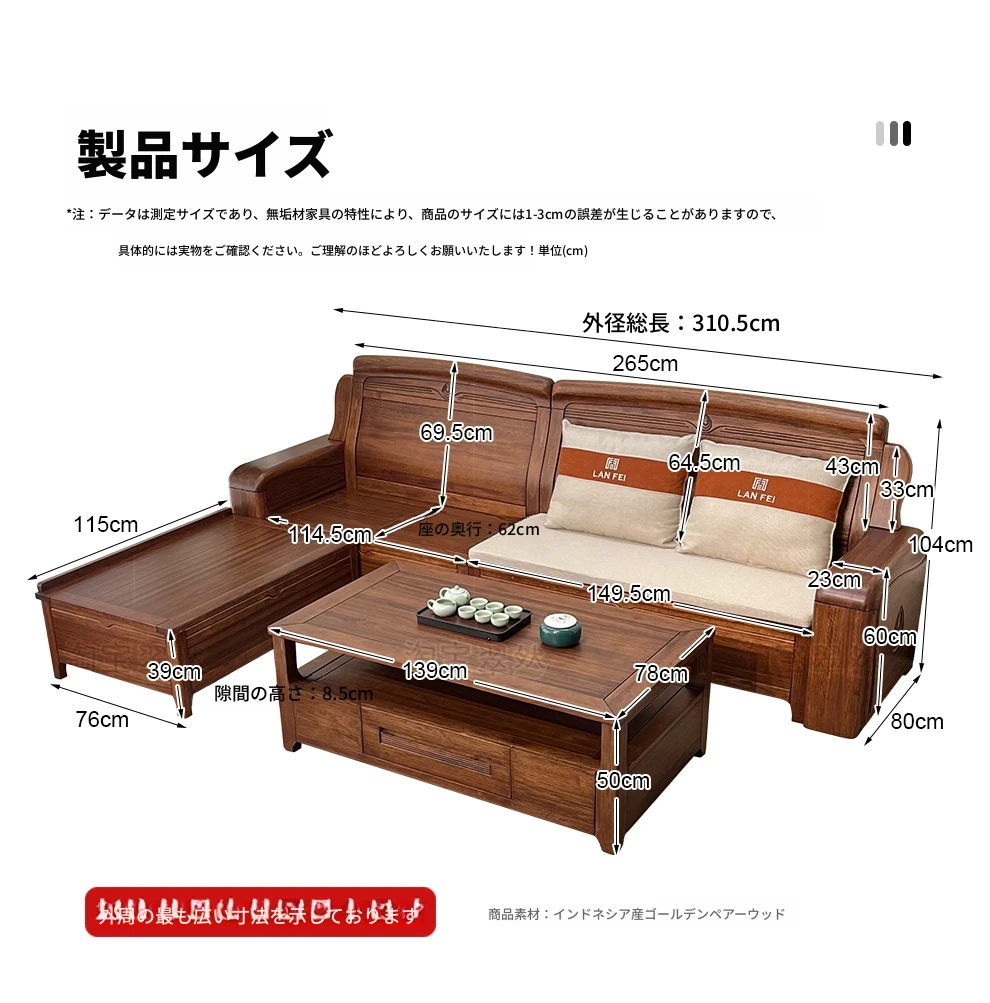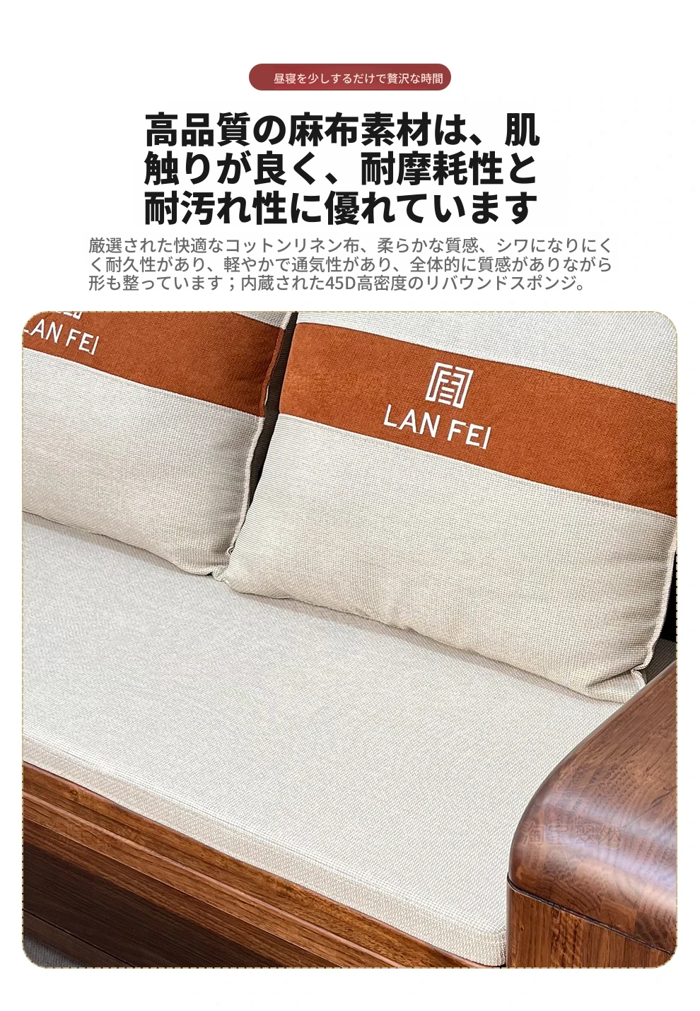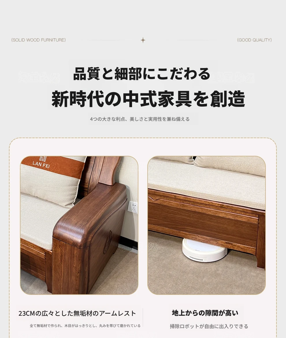 冬夏兼用の貴妃椅子付き、収納力抜群の五人掛けゴールドナシの無垢材ソファセット!小型リビングにもぴったりな中華風家具で、心地良い空間を演出します。