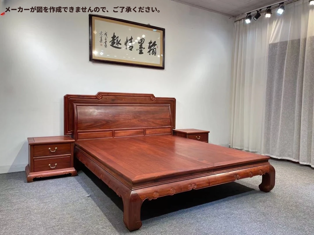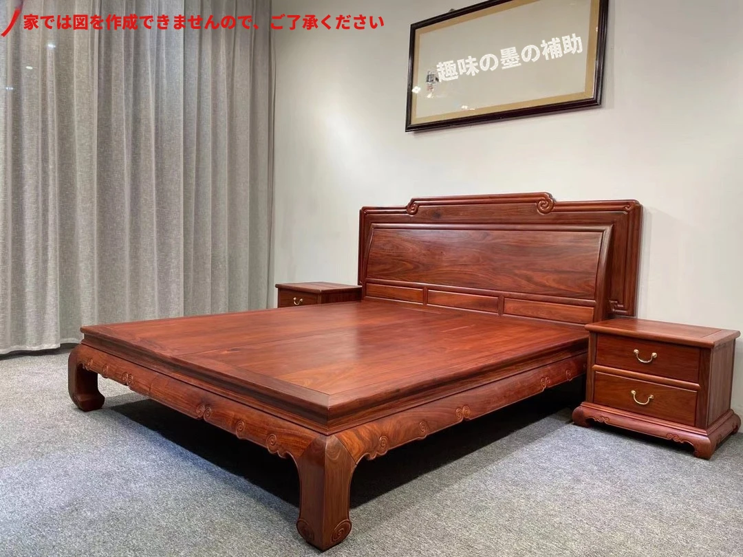 エレガントな新作全木製家具 ベッド 明式曲背デザイン 二段ベッド シンプルでスタイリッシュな寝室に最適 ザンビア産の血檀材使用 高級感溢れるお部屋作りに最適!