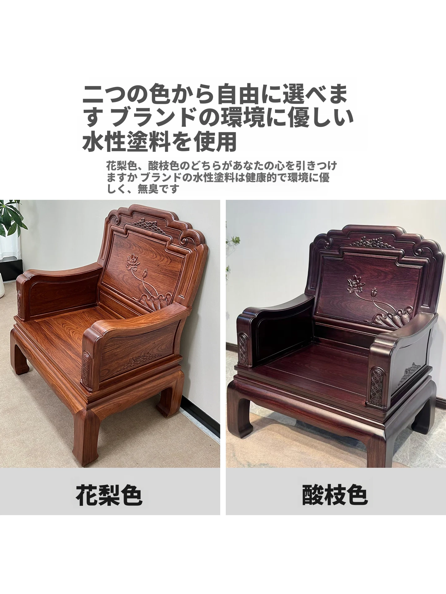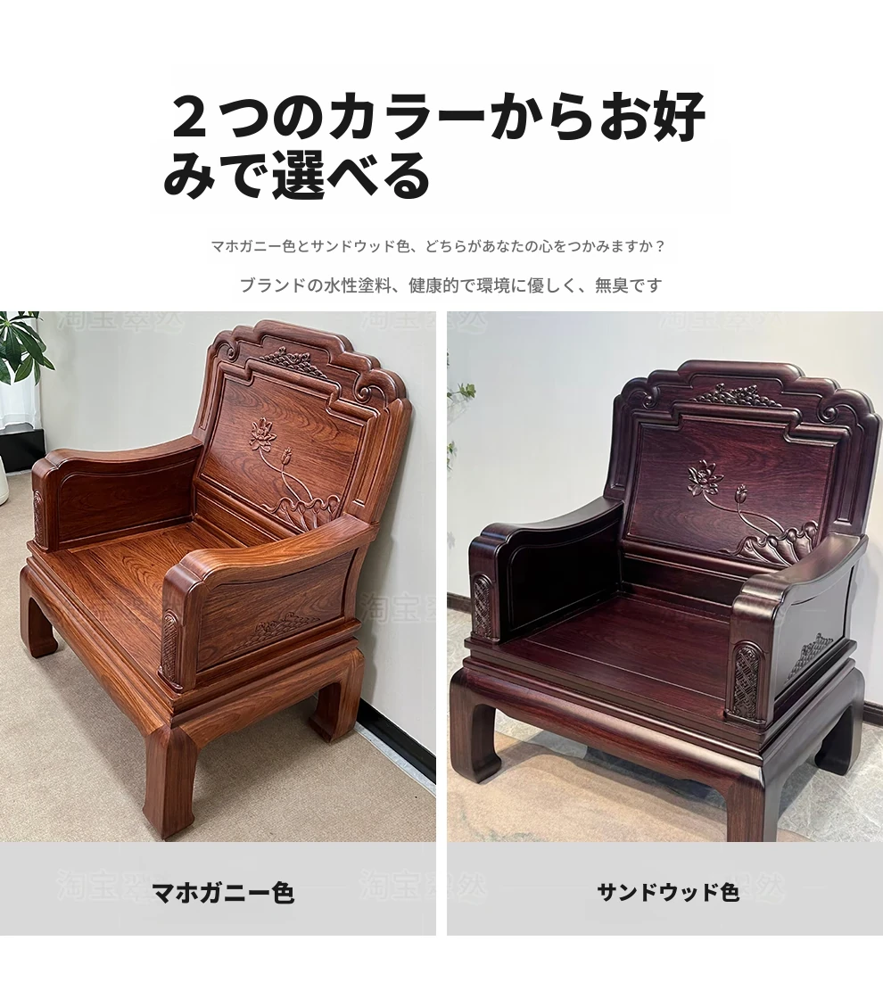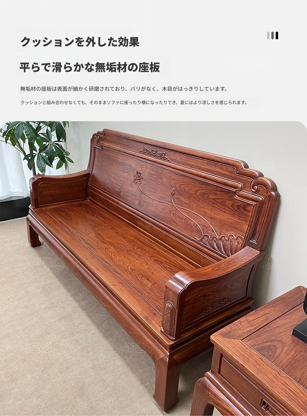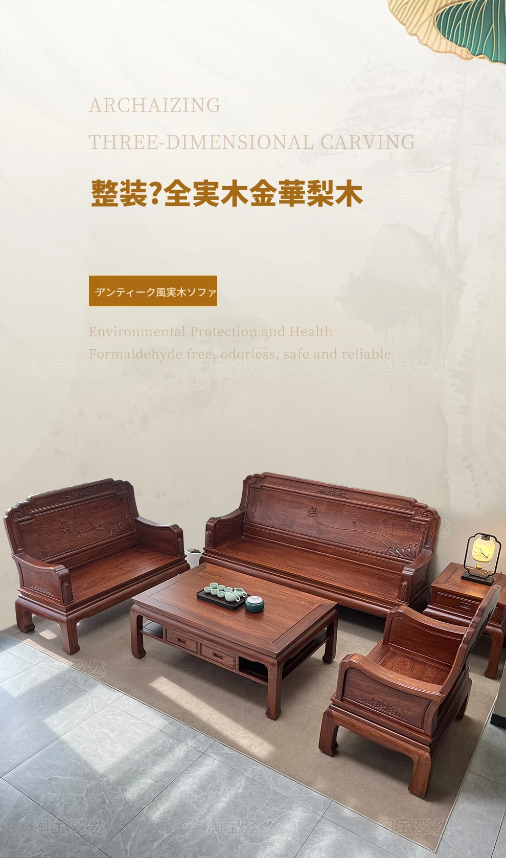 高級金華梨全実木製組み立て式ソファセット|新中式デザインの古典的な木彫り装飾が魅力のリビング家具で、優雅な空間を演出します。