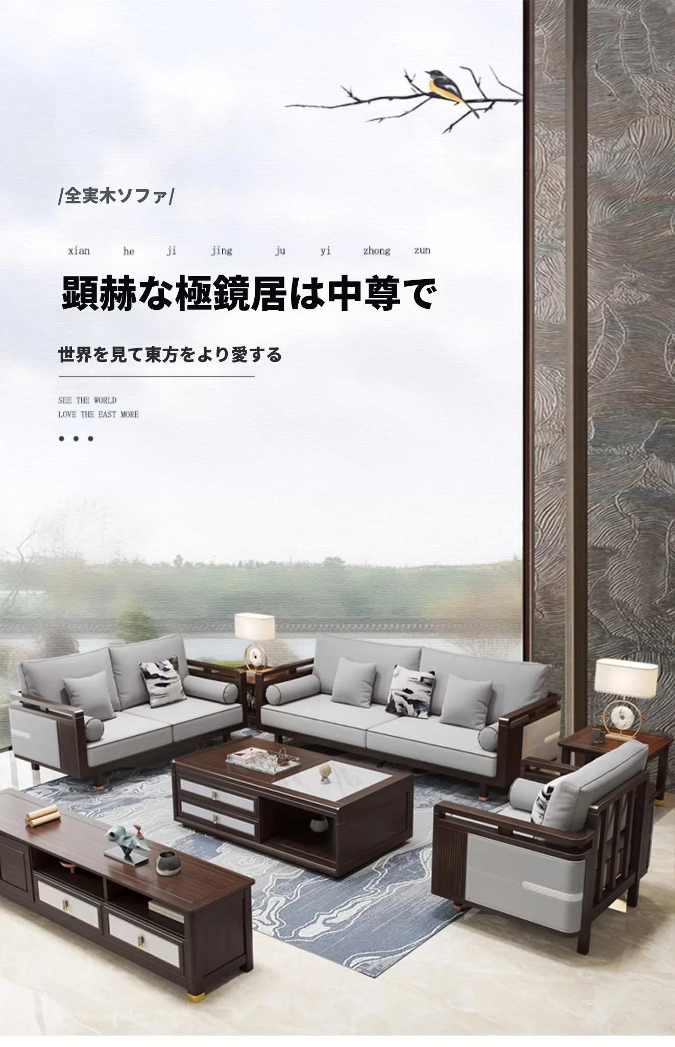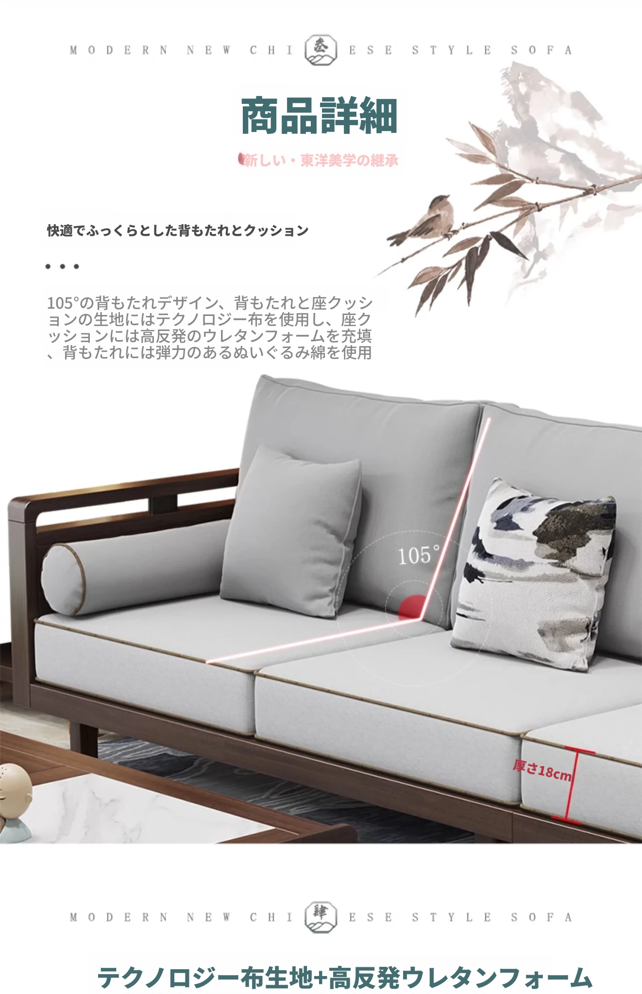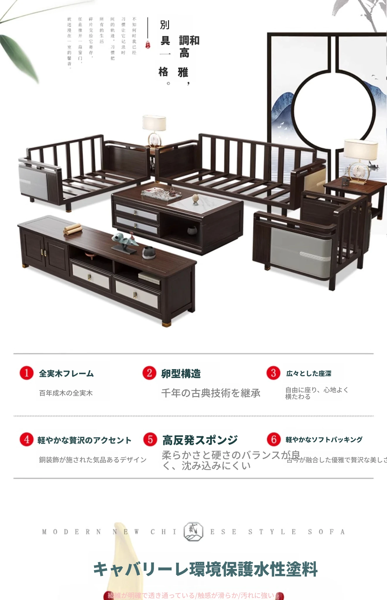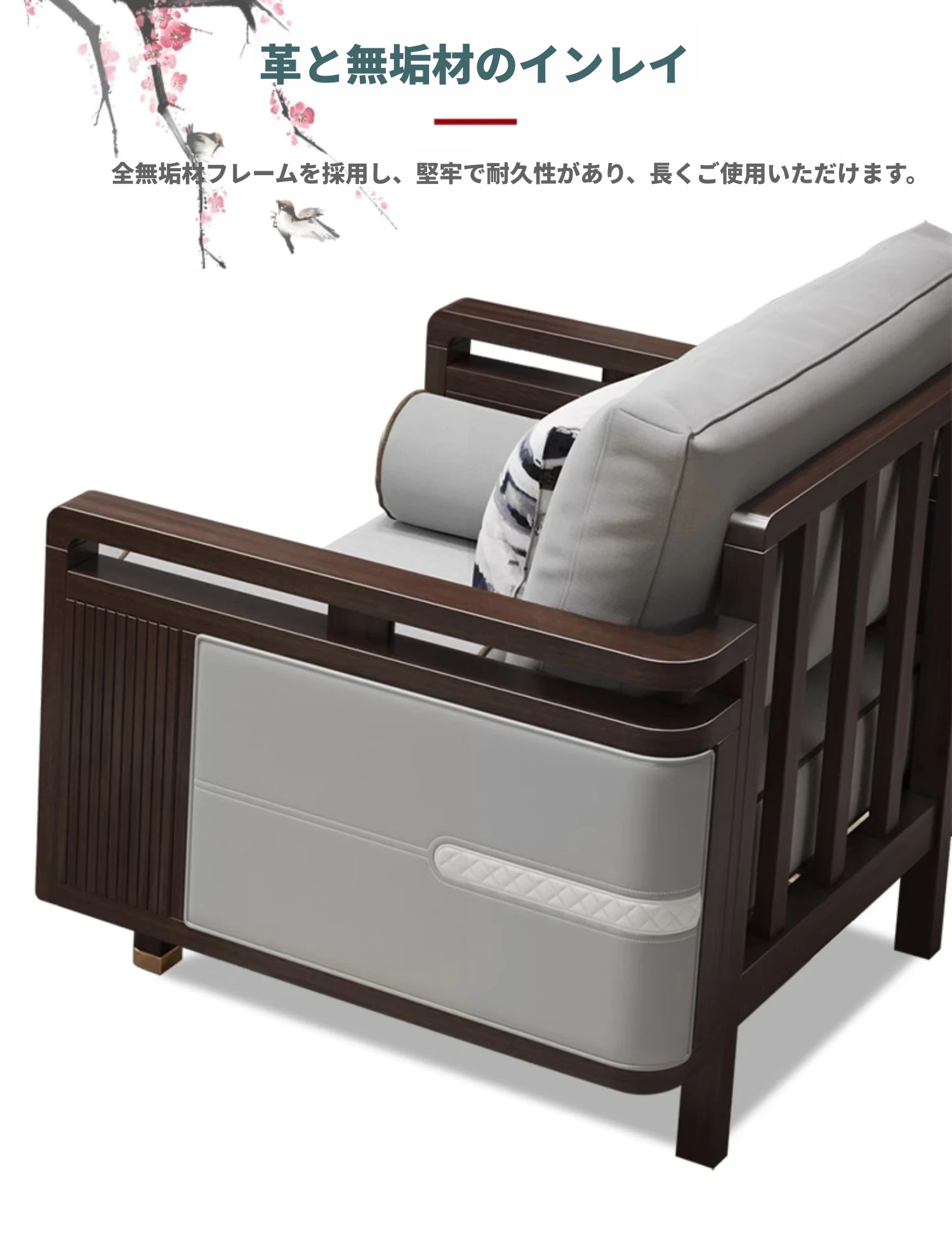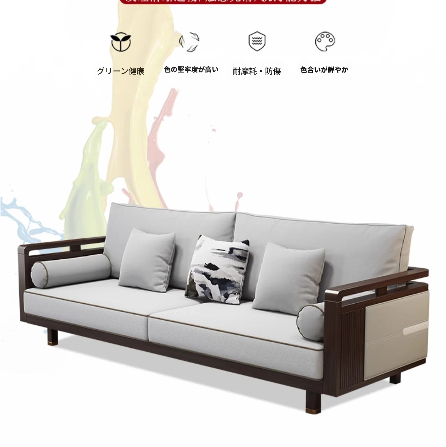 桦展多邦 新中式スタイルの無垢材ソファ モダンでシンプルな中国風の禅の意識を感じる軽奢華なリビング用123ソファ