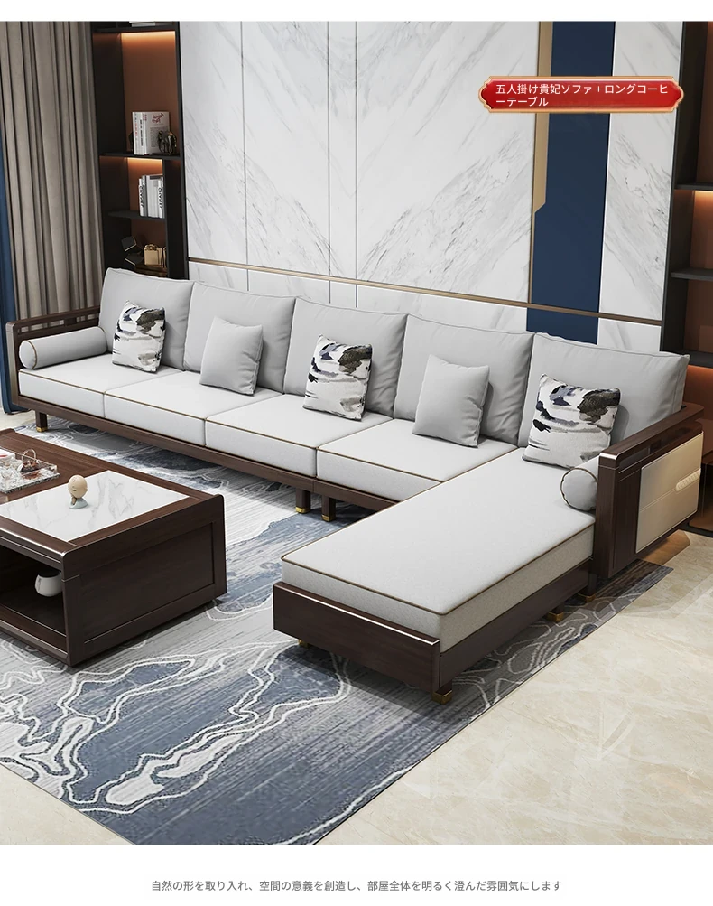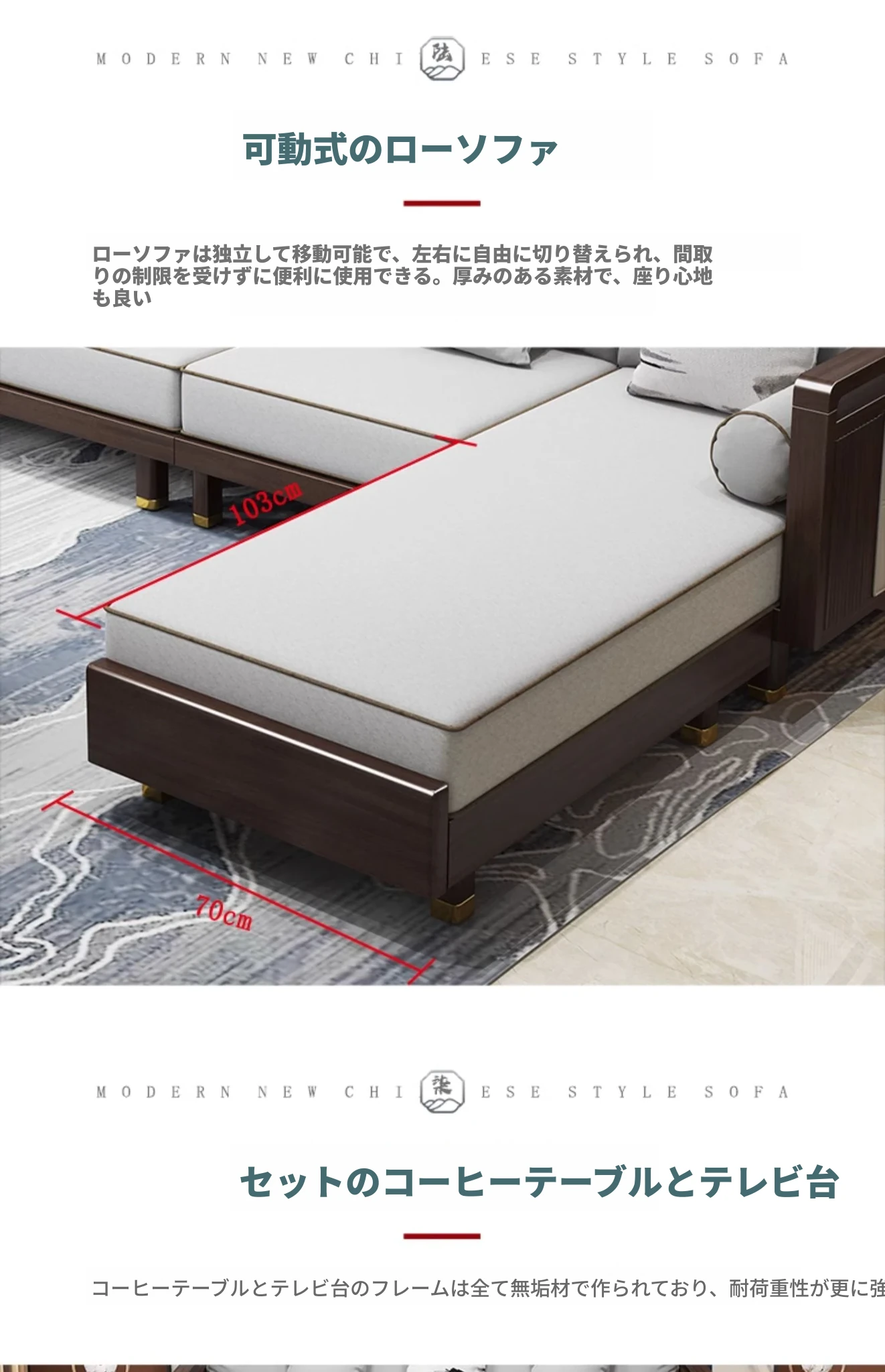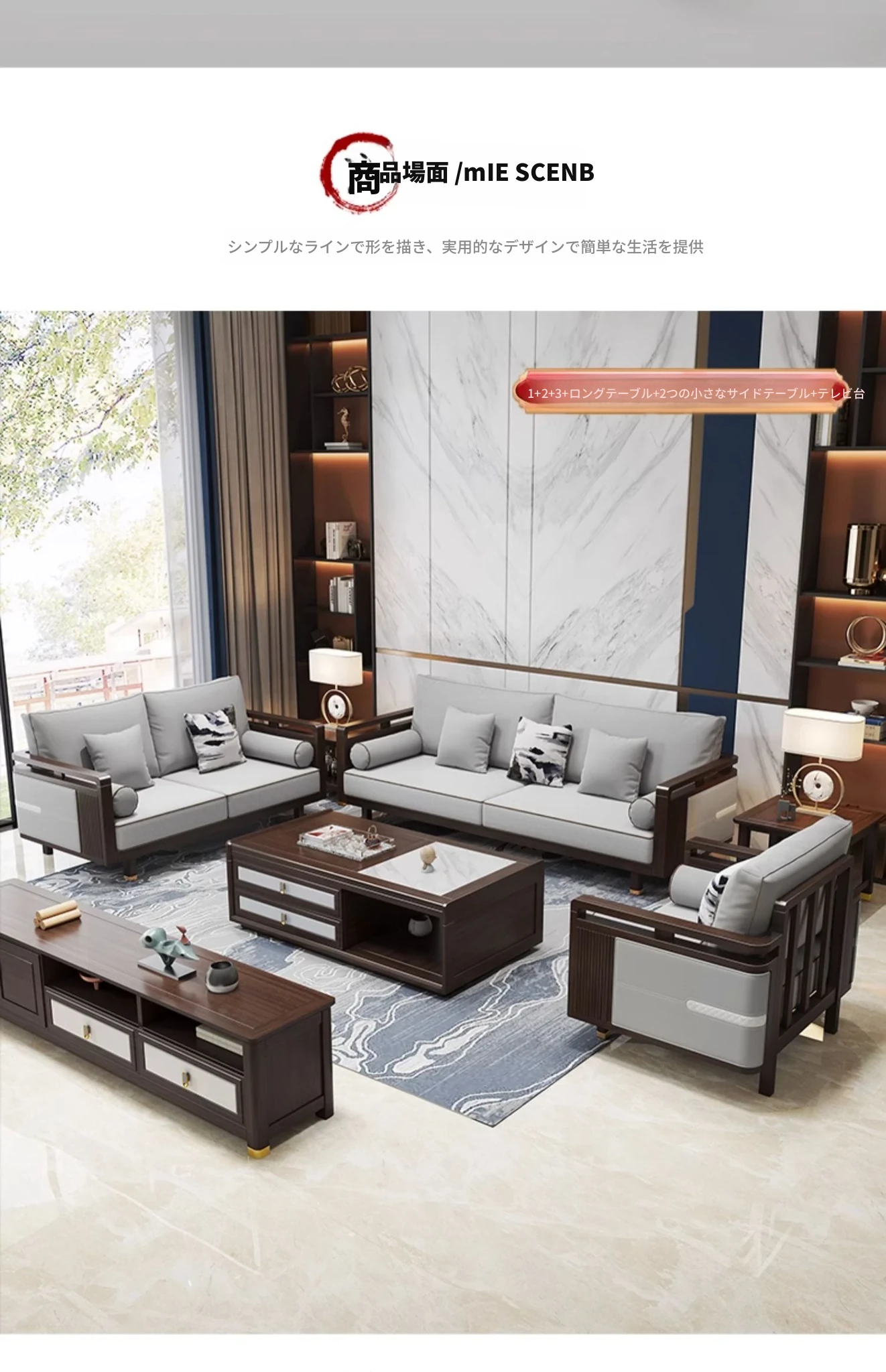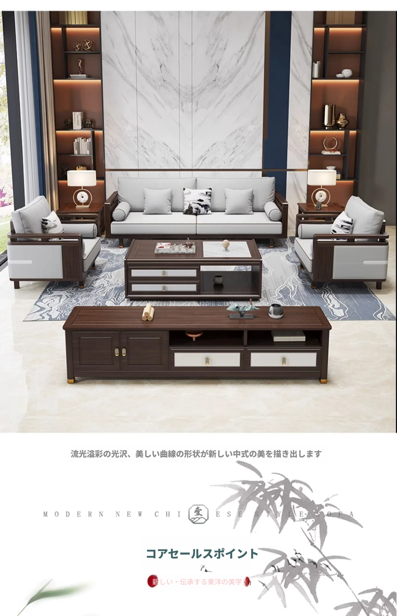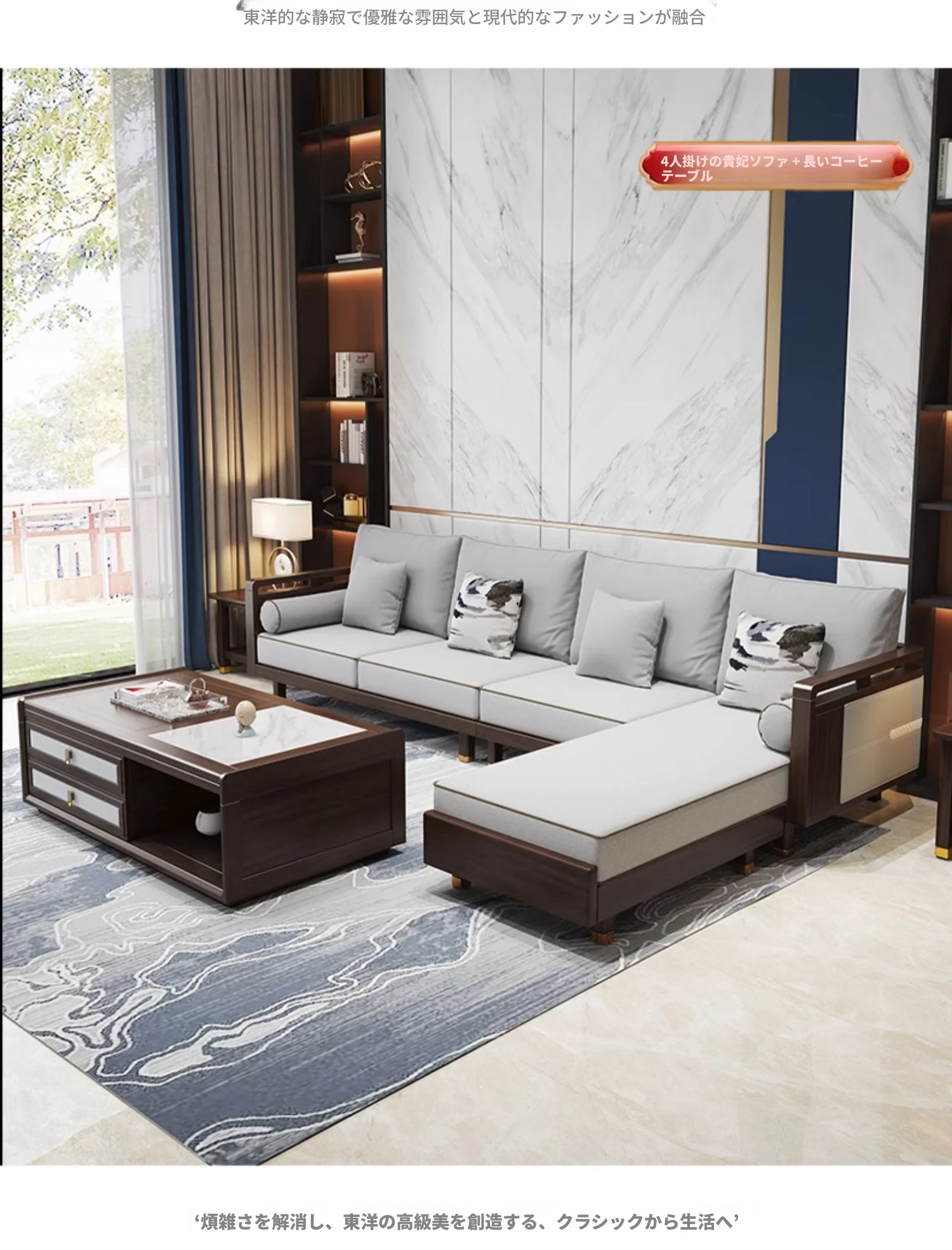 桦展多邦 新中式スタイルの無垢材ソファ モダンでシンプルな中国風の禅の意識を感じる軽奢華なリビング用123ソファ