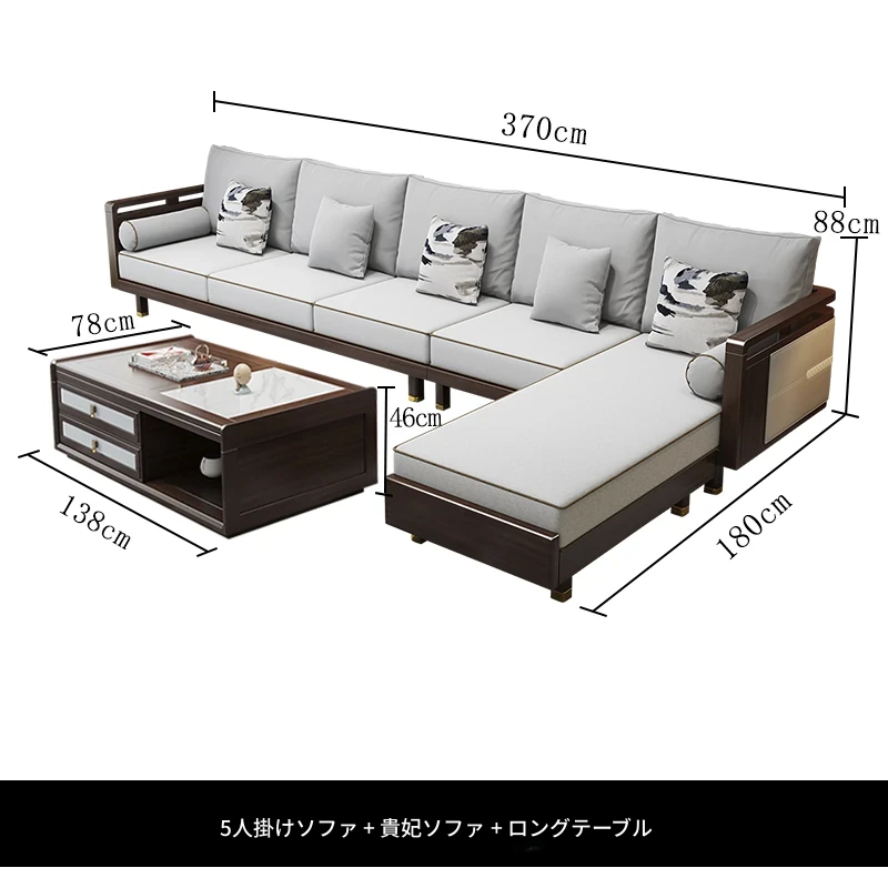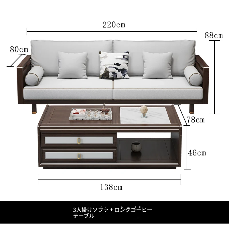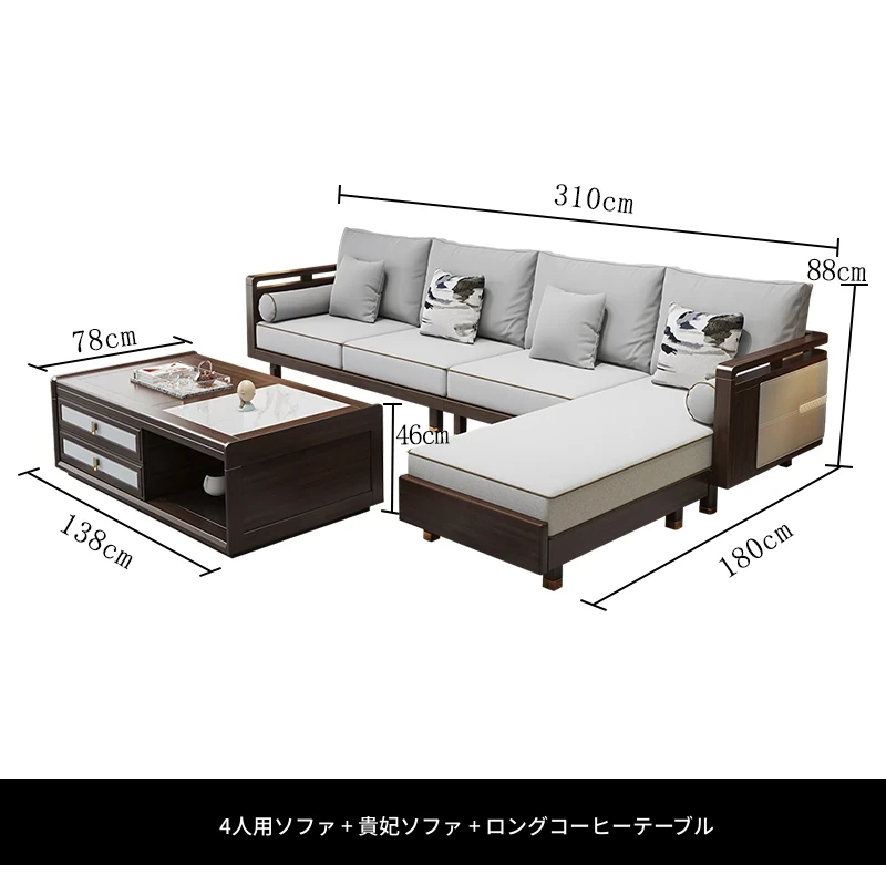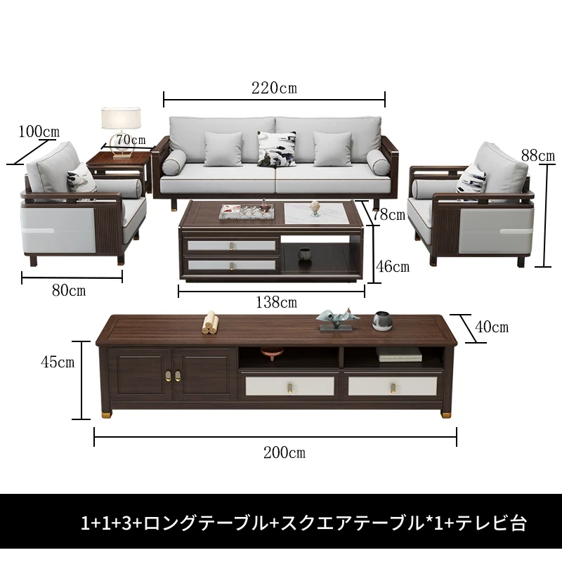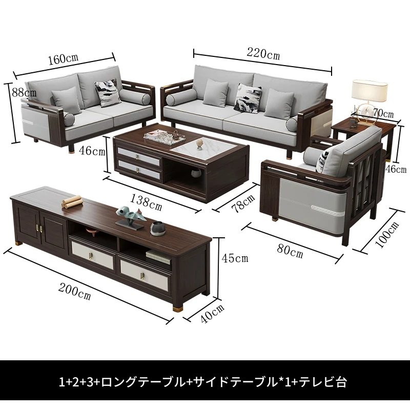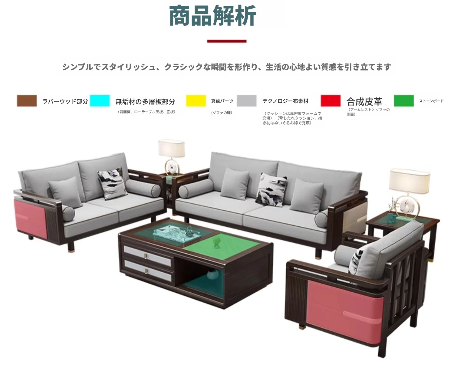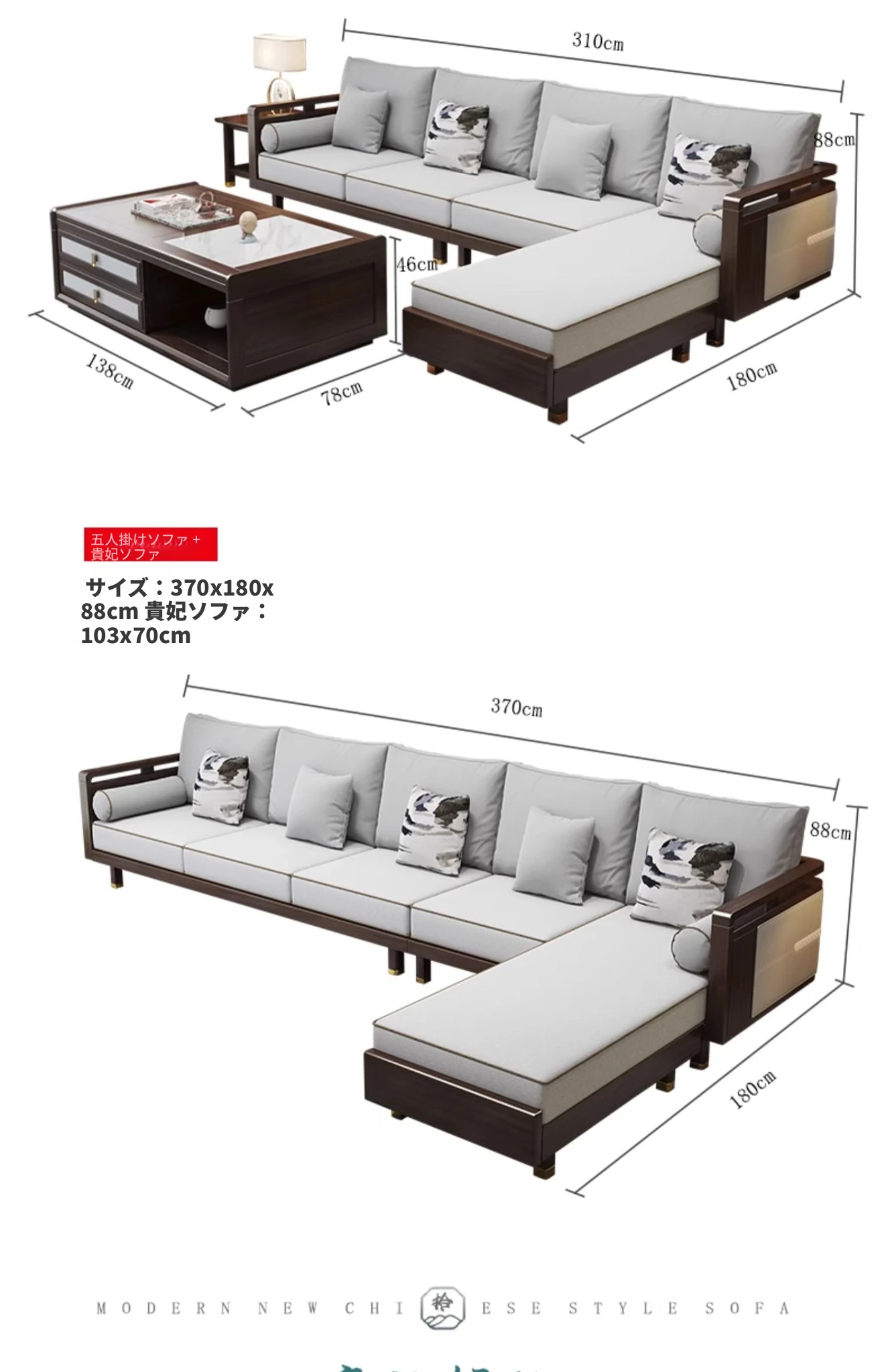 桦展多邦 新中式スタイルの無垢材ソファ モダンでシンプルな中国風の禅の意識を感じる軽奢華なリビング用123ソファ