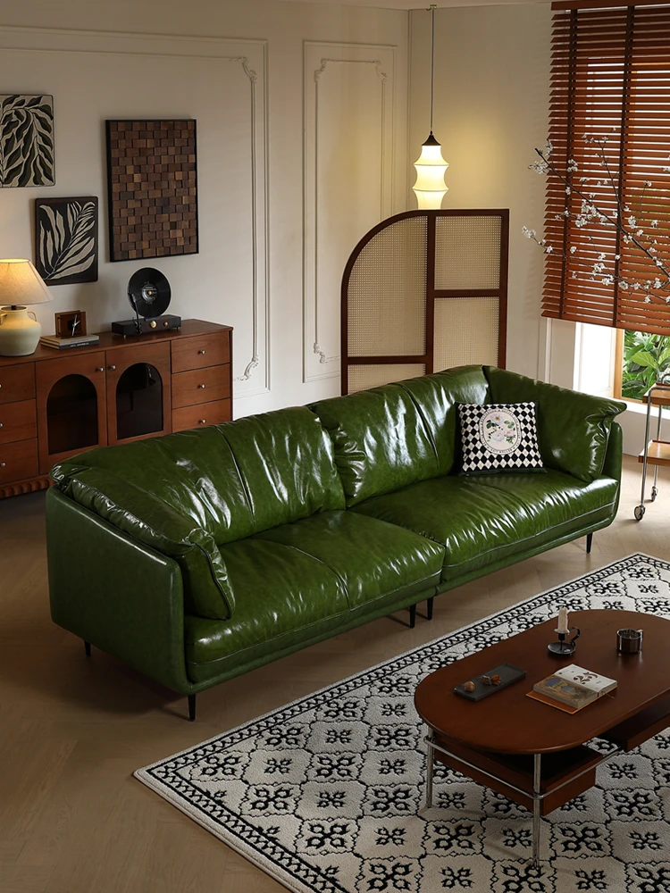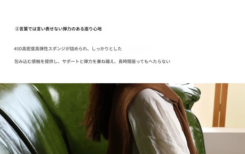 HUG抱きしめるアメリカンレトロ本革ソファー 中古 モスグリーン オイルワックスレザー 小さなリビングに最適 三〜四人掛けの魅力的なデザイン!