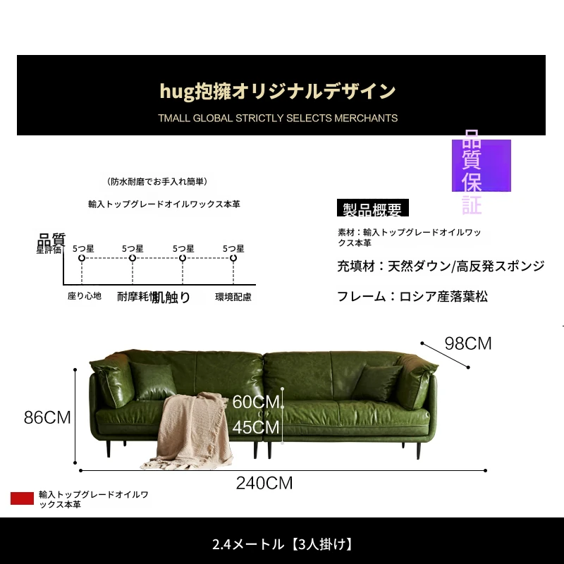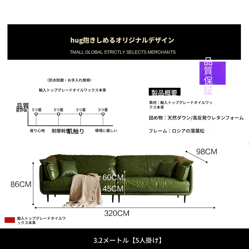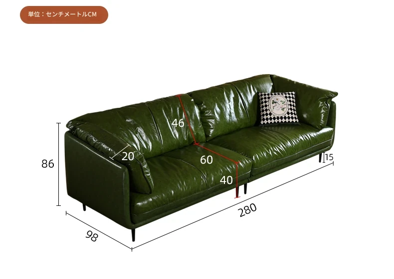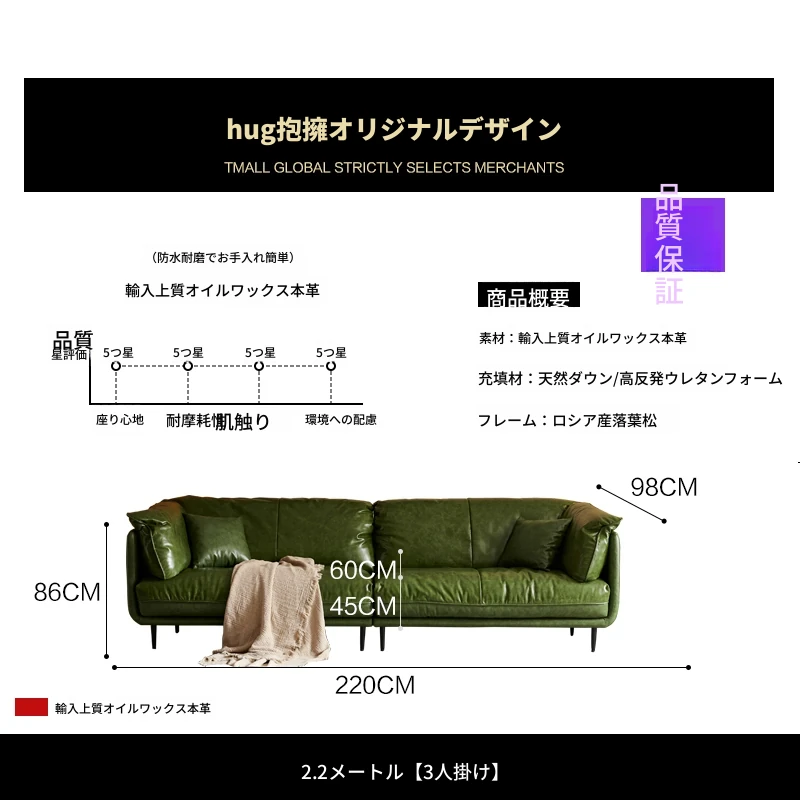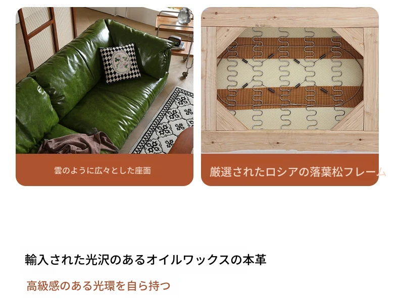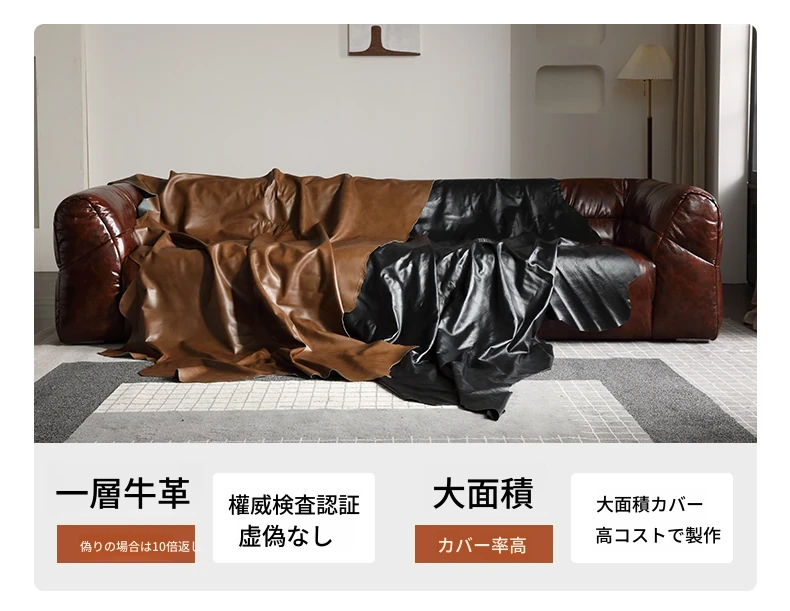 2.2メートル小型3人用【輸入油蜡一層本革】