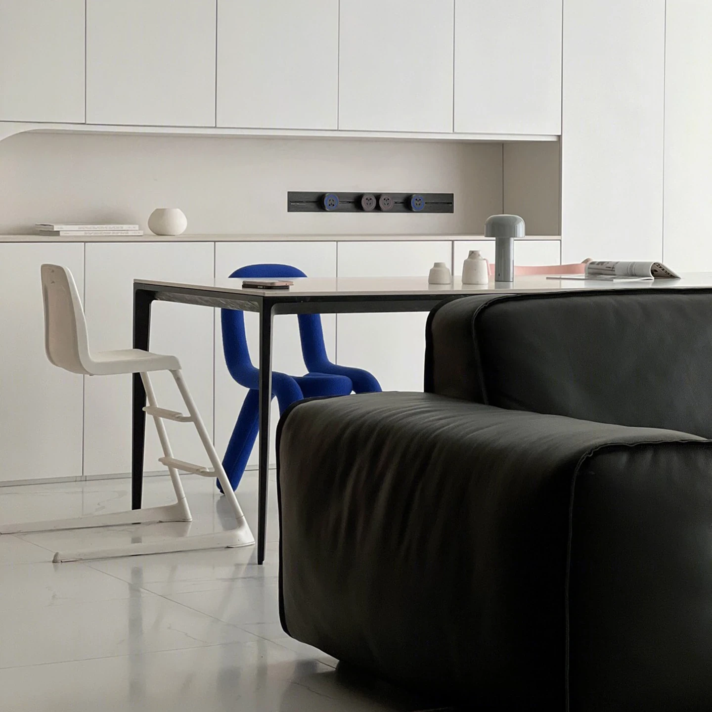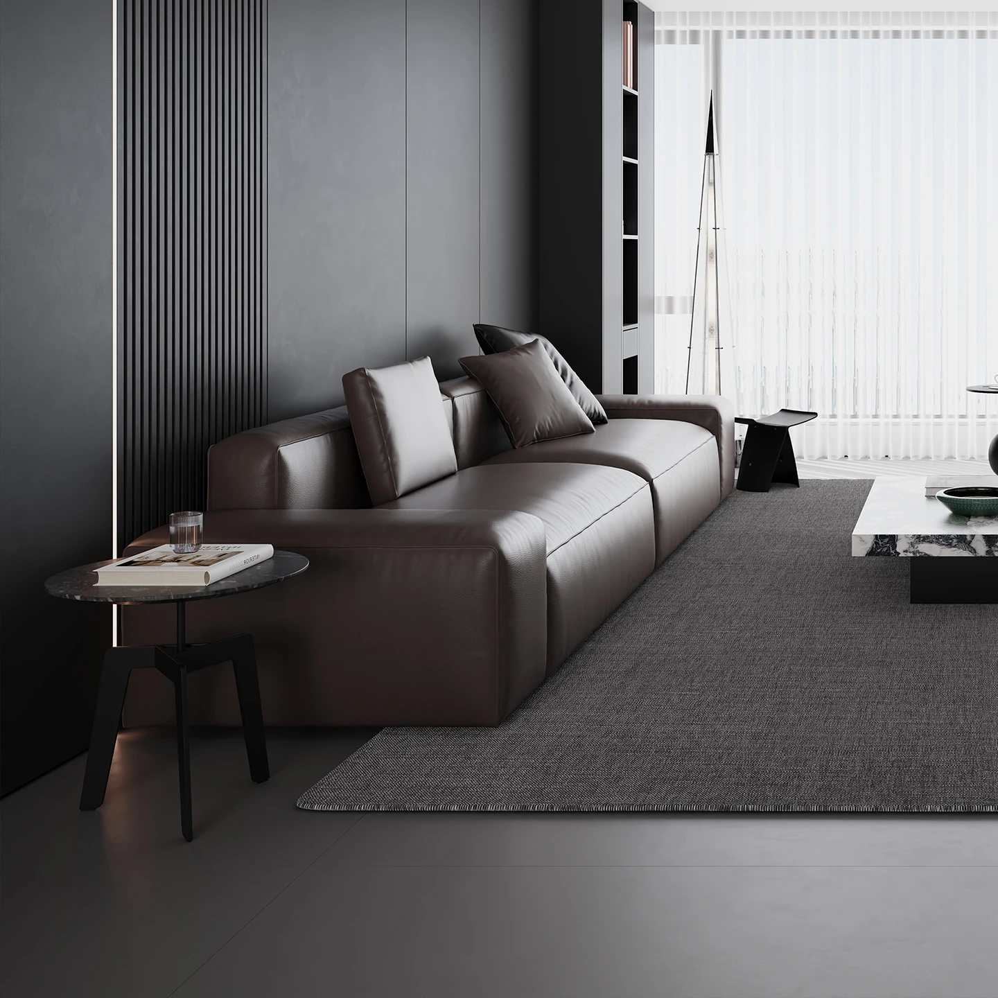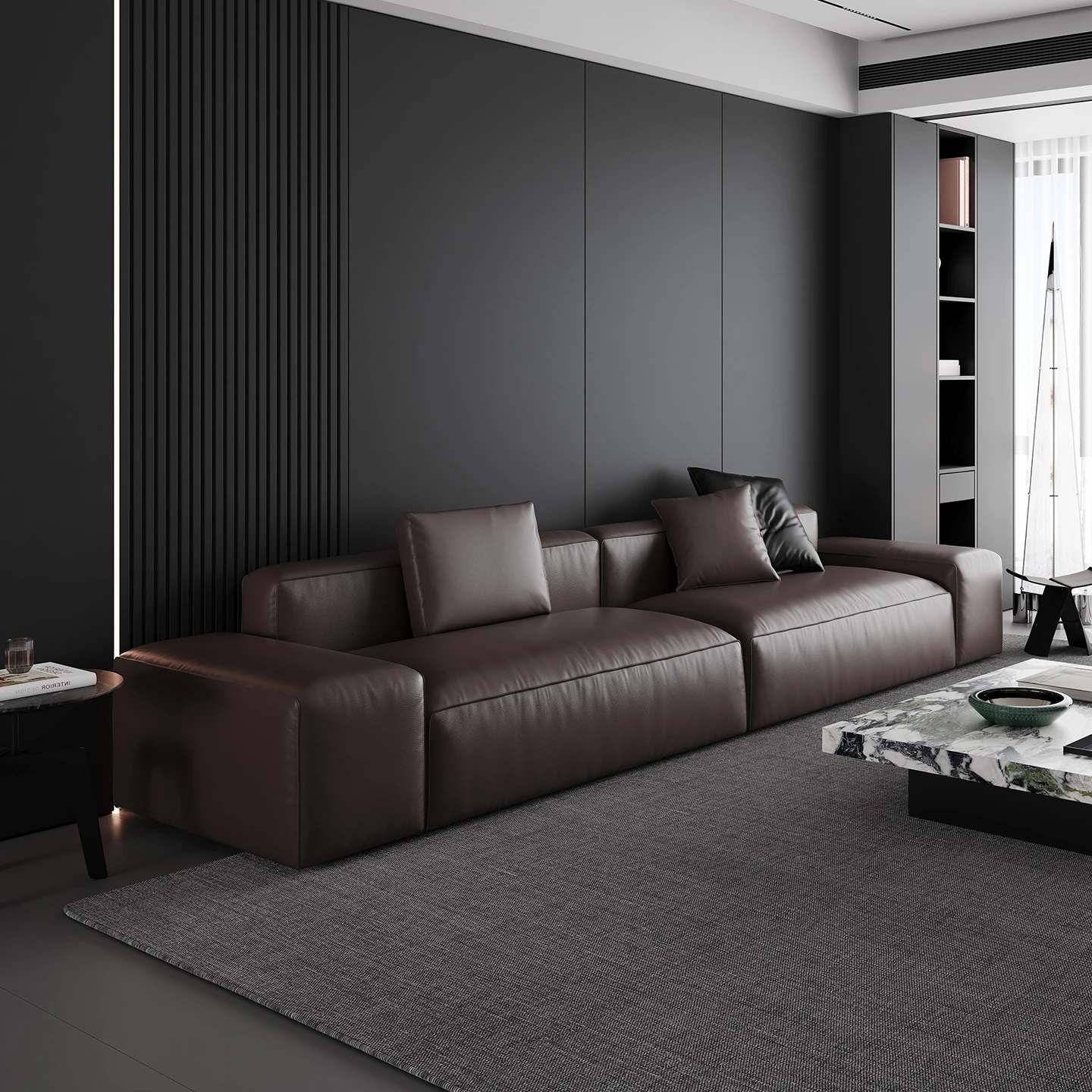 イタリアンミニマリズムの極厚ブラック牛革ソファ - 小型スペースに最適なシンプルでスタイリッシュな3人掛け・4人掛けソファ。高級本革の質感で、快適さとエレガンスを兼ね備えた一品です。
