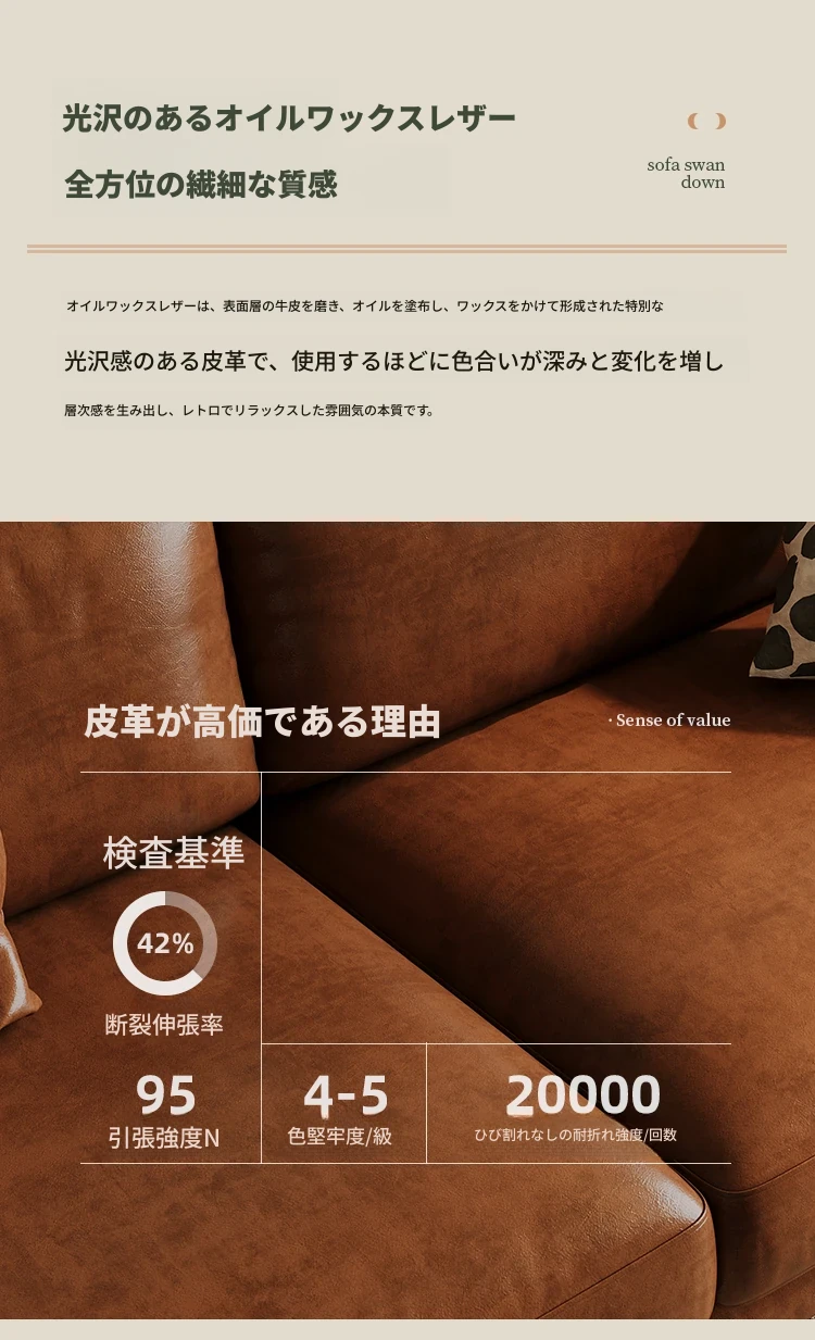 2.6メートル4人掛け(ヘッドレスト1個付き)【オイルワックス超合成皮】
