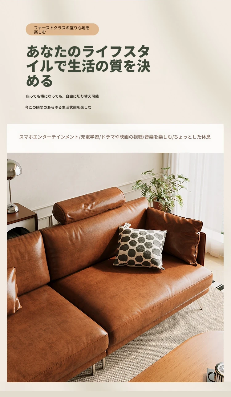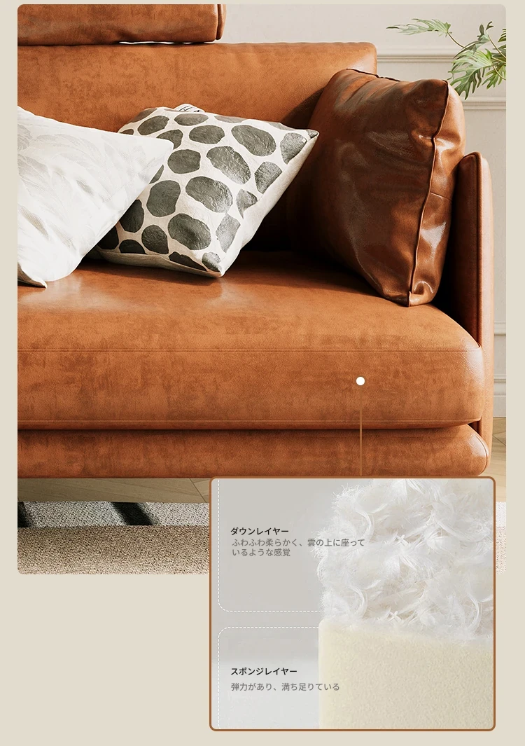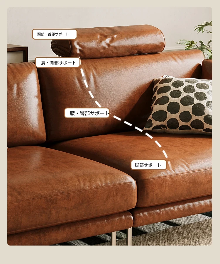 2.8メートル大4人掛け(ヘッドレスト1個付き)【オイルワックス超合成皮】
